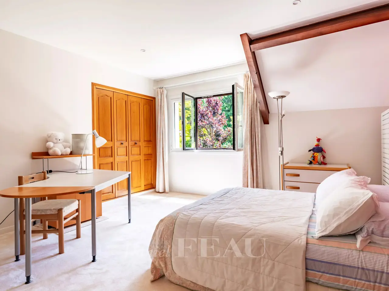 In the heart of a pretty, leafy community surrounded by the Marly forest, this spacious family home in perfect condition stands on a 935 m² wooded lot. A large entrance hall leads to an office, an eat-in kitchen, an adjoining dining room, a living room with a fireplace opening onto the garden and its south-facing terrace; a bedroom with a shower room and a guest toilet. Upstairs, there is a laundry room, two bedrooms, a shower room, a master suite with a balcony overlooking the garden, and an additional bedroom or office with a balcony. The full basement includes a games room, wine cellar, and storage, and a two-car garage. The attic space is convertible, and has been completely renovated and painted. Energy Performance Certificate (EPC) C. Saint-Nom-la-Bretèche train station is 10 minutes away for the L line or the RER A line from Saint-Germain-en-Laye. Bus line 15 is in front of the house. A micro-crèche is 50 meters away, and primary and preschools are a few minutes' walk away. Five minutes walk from the village center (market, bakery, pharmacy, mini-market, etc.)