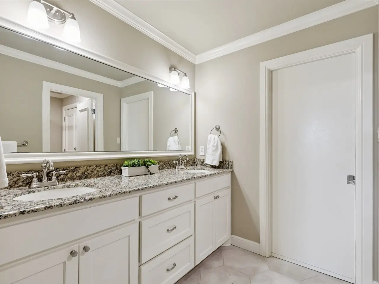 Beautifully designed with remarkable attention to detail, this Castle Hills home offers over 5,300 square feet of living space on a landscaped 0.325-acre lot. The flexible floor plan includes five bedrooms plus a private office, elegant dining areas, a spacious game room, and a fully equipped media room. The gourmet kitchen is the centerpiece of the home with built-in refrigerator, commercial-grade range, double ovens, expansive island, and walk-in pantry. It flows seamlessly into the family room with stone fireplace and views of the backyard. The primary suite on the main level is a private retreat featuring dual vanities, soaking tub, separate shower, and a generous walk-in closets with secondary washer and dryer connections. Highlights include hardwood and stone floors, wainscoting, decorative lighting, granite counters, multiple staircases, and a 3-car garage with alley access. Smart wiring, built-ins, and abundant storage add to the homes functionality. Outdoor living is exceptional with a sparkling pool, outdoor shower, covered patio, built-in grill, and full outdoor living centerperfect for entertaining or relaxing. The landscaped yard offers privacy and plenty of space to enjoy year-round. Located in the desirable Castle Hills community, residents enjoy access to walking trails, lakes, parks, golf, tennis, and a vibrant town center with shops and dining. Zoned to Lewisville ISD schools, this property combines luxury, comfort, and convenience in one of North Texas premier neighborhoods.