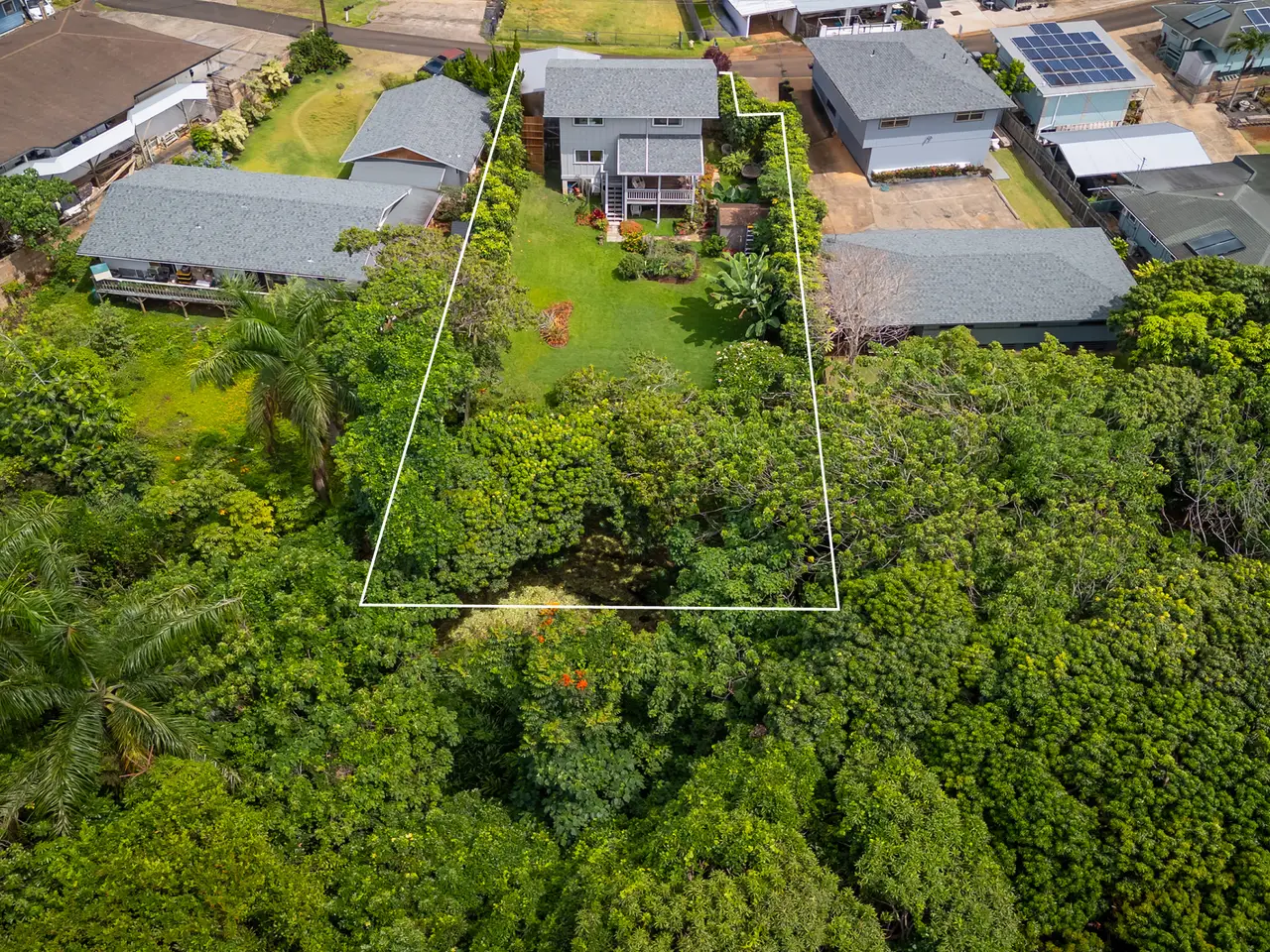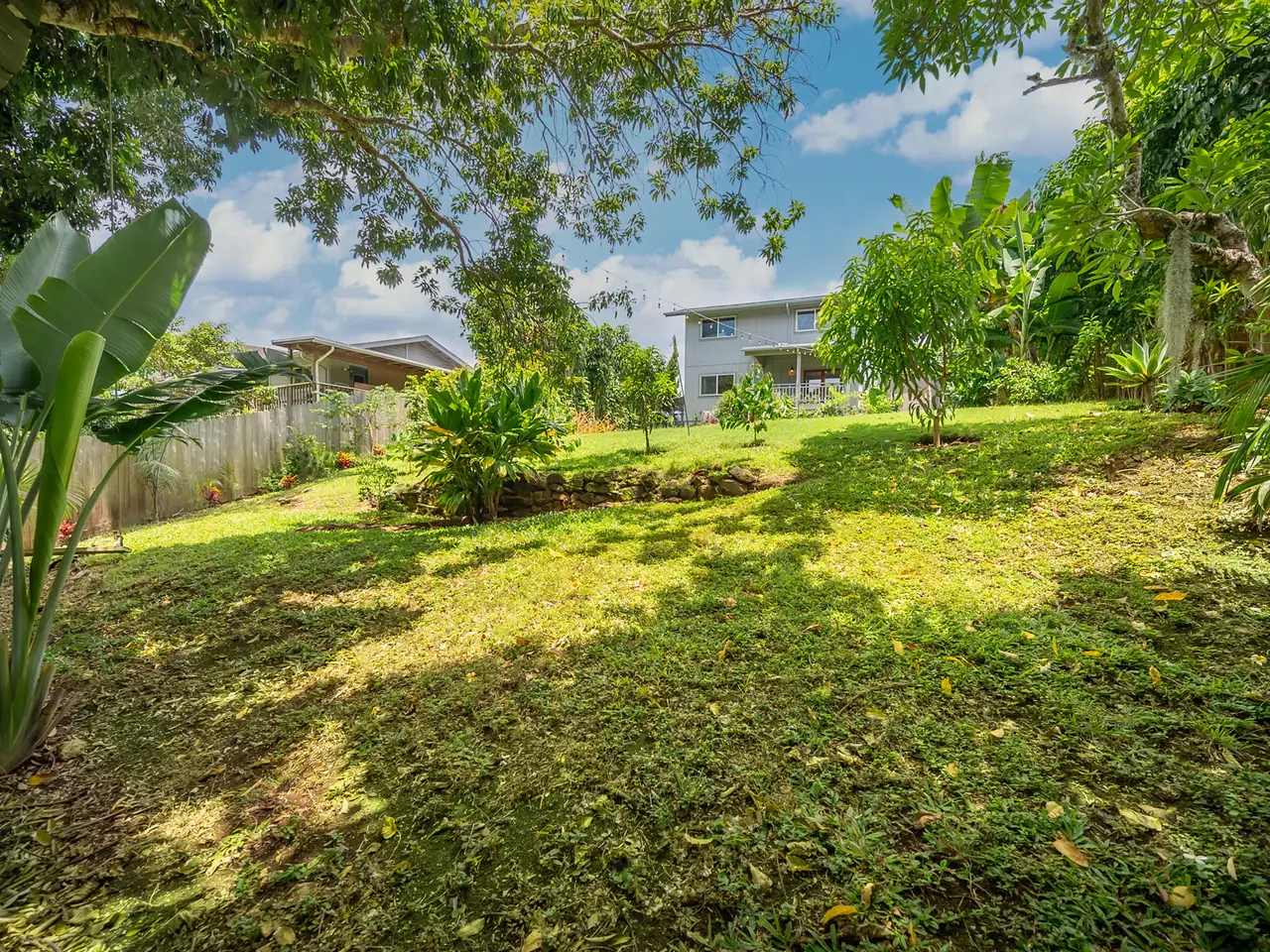 Charming two-story home in the heart of Lihue. A true surprise awaits you as you head down a quaint road and arrive at this beautiful and well cared for 3-bedroom, 2-bathroom home built in 2016. The home sits on a 10,788 sqft lot that borders the Nawiliwili Stream, and offers the potential to build an Additional Dwelling Unit. An ADU certificate and plans for a 2-bedroom home are included with the sale. The home features: *Open concept living room, dining room, and kitchen *Granite countertops *Stainless steel appliances *8.6ft ceilings downstairs and 10.7ft ceiling upstairs *Hardwood floors in all living spaces *Indoor laundry *On-demand hot water heater *5-bedroom septic system *3 split system air conditioning units for year-round comfort, installed in 2021 *Exterior painting-caulked and hand rolled, in 2021 *New roof installed in 2022 *10 ft wide gate leading to the back yard, a portion upgraded in 2025 *Large propane tank installed in 2021 *New front door installed in 2021 *Gutters installed in 2021 *New fencing installed in 2021, 2024, and 2025 *Storage shed as well as storage under the home *Beautifully landscaped backyard leading to the Nawiliwili Stream which borders the property *Mature and producing Lychee, Sugar Loaf Pineapple, Dwarf Apple Banana, Surinam Cherry, Dry Land Taro, Hawaiian Chili Pepper, Basil, Green Onion, Tomatoes, Ginger *Malama Avocado tree, Hayden and Raposa Mango trees, 3 coffee trees, Starfruit, Key Lime, Lane Orange are thriving but not yet producing *The home is a block from historic Rice street, and within close proximity to restaurants, the bowling alley, the Kauai Museum, County and State buildings, banks, a school, as well as the Lights on Rice Street parade during the holiday season. Centrally located on the island, the airport and Costco are just minutes away.