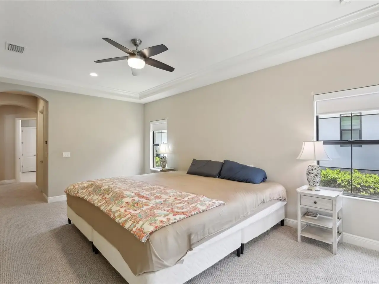 Welcome to 14715 FishHawk Preserve Drive—a beautifully upgraded WestBay “Carrera” executive home in the exclusive gated enclave of The Preserve at FishHawk Ranch. This spacious one-story residence offers over 3,600 sq ft of functional luxury on a private, elevated lot. You’ll be immediately impressed by the tile roof, stacked stone accents, pavered driveway, and side-entry garage. Inside, the home boasts soaring ceilings, wide baseboards, crown molding, and neutral tones, creating an elegant and welcoming atmosphere. A dedicated office with French doors and a formal dining room with tray ceiling greet you at the entrance—perfect for both productivity and entertaining. At the heart of the home, the open kitchen and great room are built for connection and comfort. The kitchen features espresso-finish maple cabinets, Zodiaq quartz countertops, a large island, built-in oven, walk-in pantry, and stainless steel appliances. The great room showcases a stacked stone electric fireplace and a 4-panel slider leading to the lanai and pool. The primary suite is a serene retreat, complete with tray ceiling, custom window treatments, French door access to the lanai, and two walk-in closets. The en-suite bath offers dual vanities, a soaking tub, and a walk-in shower. All bedrooms feature brand-new plush carpet. A large bonus room at the rear of the home is perfect for a media room or future bar—with wet bar pre-plumbing already in place. Step outside to your private resort-style lanai, featuring a saltwater pool and spa with bubbling fountains, pavered decking, and an outdoor kitchen with grill, sink, and fridge—perfect for hosting family and friends. Residents of The Preserve enjoy world-class amenities, including clubhouses, resort pools, tennis courts, fitness centers, playgrounds, and 25+ miles of trails. Zoned for A-rated schools and minutes from shopping, dining, Tampa, MacDill AFB, and Florida’s beautiful beaches—this home truly has it all.