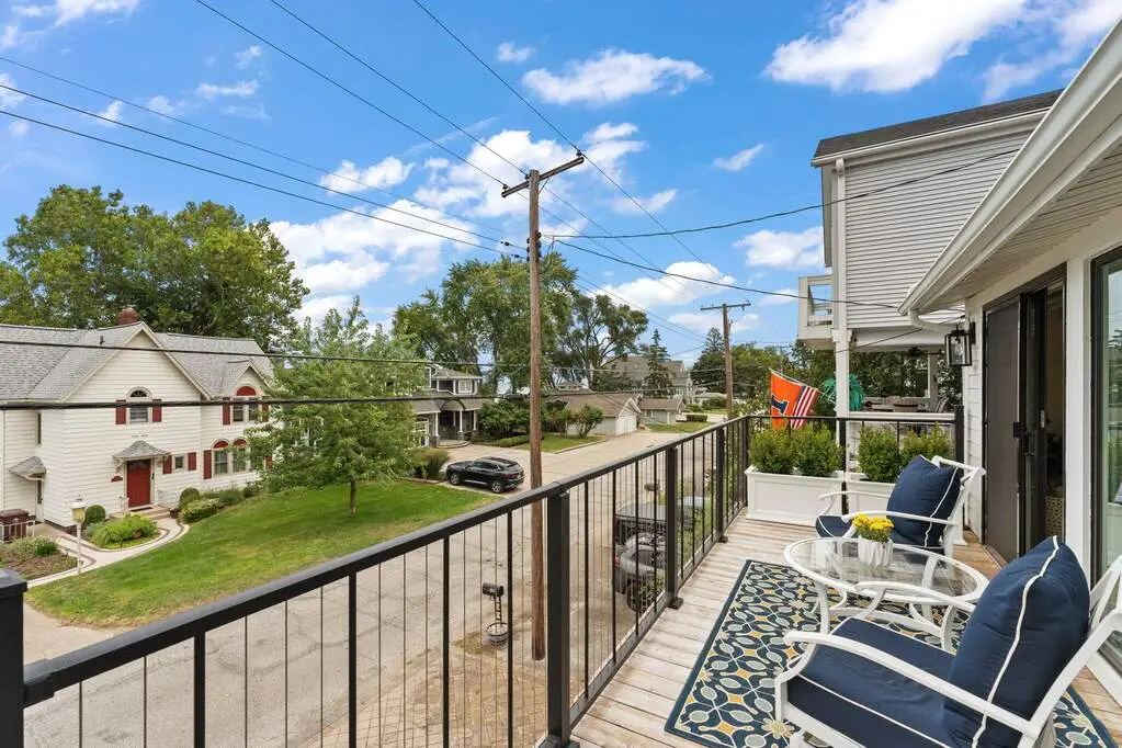Welcome to lakeside living at Stop 20 on Lake Shore Drive, where every day feels like a weekend getaway! Perched on the hillside with sweeping views of Lake Michigan, this cottage-style retreat is designed for both comfort and charm.Inside, you'll find shiplap-accented walls in the home office, an open-concept layout connecting the Living, Dining, and Kitchen spaces, and LG stainless steel appliance package with a Breakfast Bar perfect for morning coffee before heading off to the beach. The Living Area steals the show with its brick fireplace w/ electric insert, beautiful wood mantel, and double sliding glass doors that lead you directly out to a newly renovated wraparound deck - your front-row seat to breathtaking sunsets and the refreshing lake breeze overlooking Lake Shore Drive.This home offers a main-level full bath and 4 cozy Bedrooms upstairs, and an additional 3/4 bath with a Washer/Dryer. Outside, a new front retaining wall provides rare off-street parking for up to four cars, while the tiered backyard patio creates multiple spaces for entertaining, relaxing, or giving pets their own play area. With a 40x150 lot and a rare hillside backyard, this home combines lakeside charm with everyday functionality. Whether it's sipping wine on the deck, entertaining under the stars, or simply enjoying life along Lake Michigan's shoreline - this is the beach cottage you've been waiting and dreaming of!