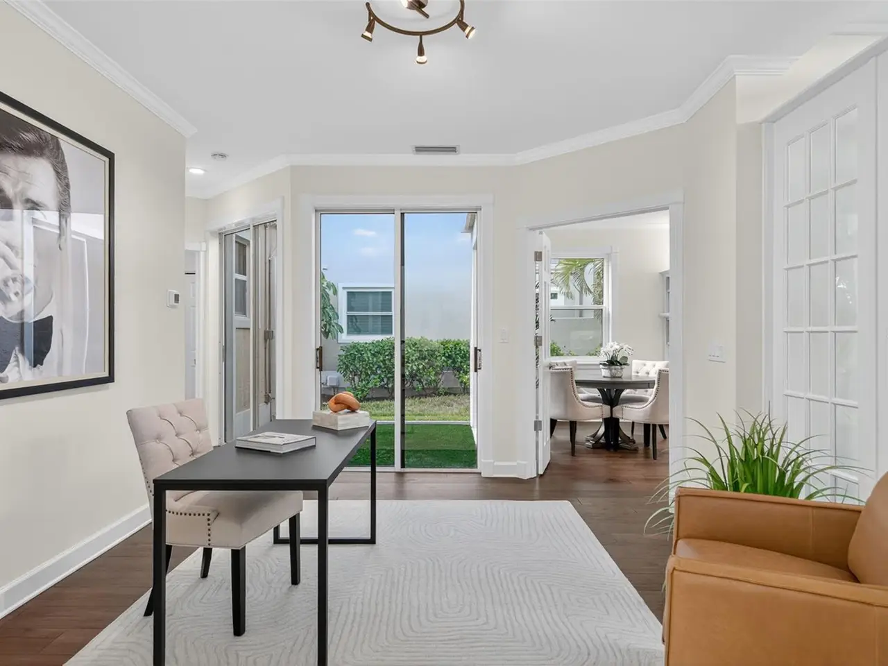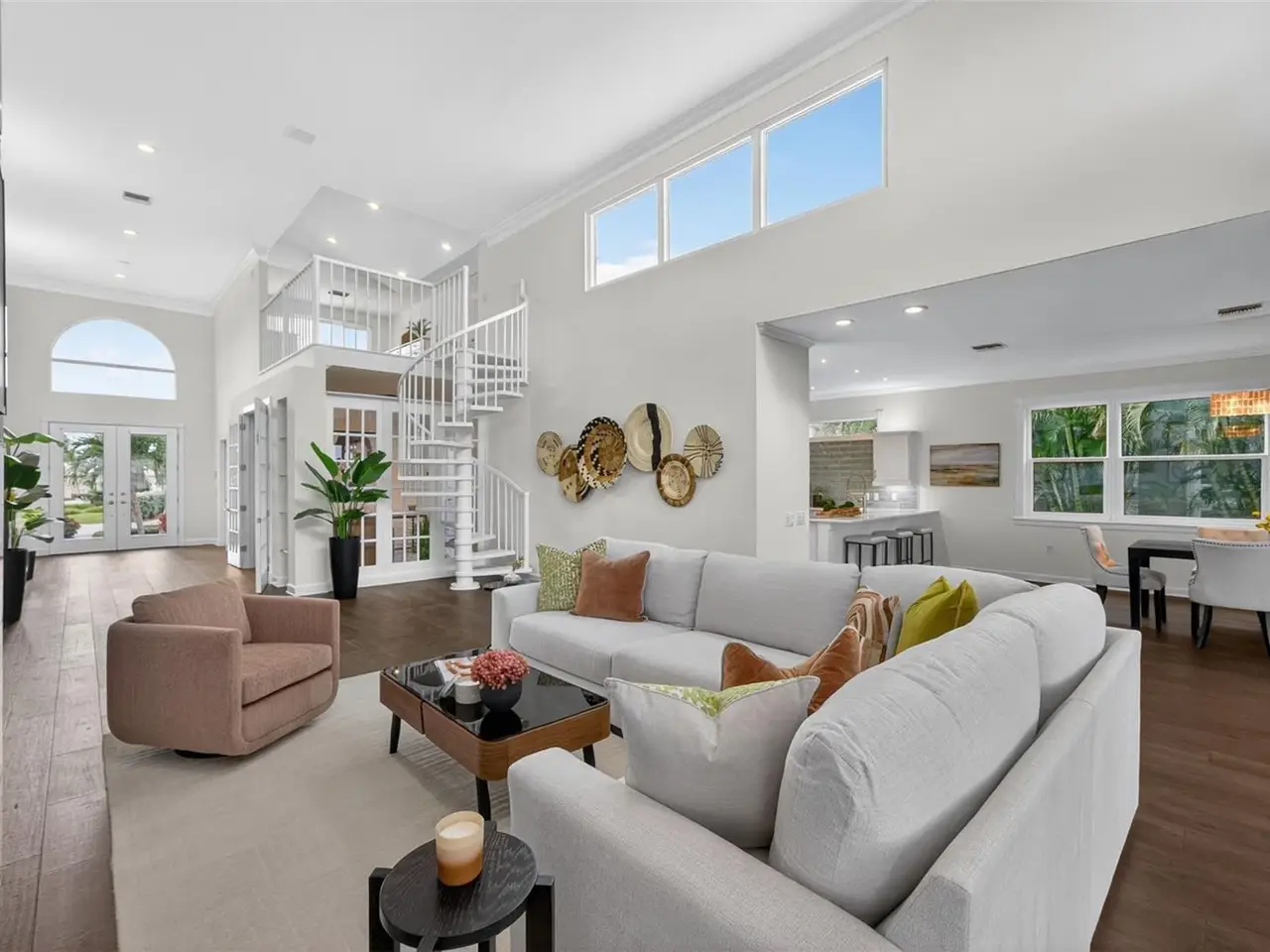 A Rare Longboat Key Bayfront Opportunity. Discover an exceptional opportunity to live behind the gates of the Longboat Key Club in the highly coveted Corey's Landing neighborhood - one of the island's premier bayfront addresses. Rarely available, this detached single-family home offers direct Sarasota Bay views, a private boat dock and lift, pool, three bedrooms plus a study, a loft, and three-and-a-half baths. Set within an intimate, established community of just 61 single-family homes and villas, this residence welcomes you through double doors into a showplace of light, style, and space. Soaring transom windows, walls of sliding glass, and rich wood floors enhance the open great-room design - an ideal setting for entertaining around the beautiful fireplace. The updated kitchen connects seamlessly to the dining and living areas, featuring sleek white cabinetry, a striking tile backsplash, solid-surface countertops, stainless steel appliances, and a generous breakfast bar perfect for casual gatherings. The first-floor master suite is a private retreat with walls of glass, a cozy sitting area, custom built-ins, dual closets, and a luxurious remodeled bath with dual vanities, a large walk-in shower, and separate water closet. Also on the main level are two private guest suites, a study/den, and even a convenient outdoor dog space. Upstairs, a versatile loft offers space for a gym, library, or extra guest accommodations. Step outside to the expansive screened lanai - an inviting oasis for relaxing or entertaining by the pool while enjoying mesmerizing bay views and the glittering lights of downtown Sarasota. Two car attached garage provides plenty of storage space. Corey's Landing residents enjoy access to a community pool, spa, Har-Tru tennis courts, and the private Bay Isles Beach Club. Ideally located near shopping, dining, and the world-renowned St. Armands Circle, this home represents the ultimate Longboat Key lifestyle - elegant, relaxed, and effortlessly connected to both land and sea.