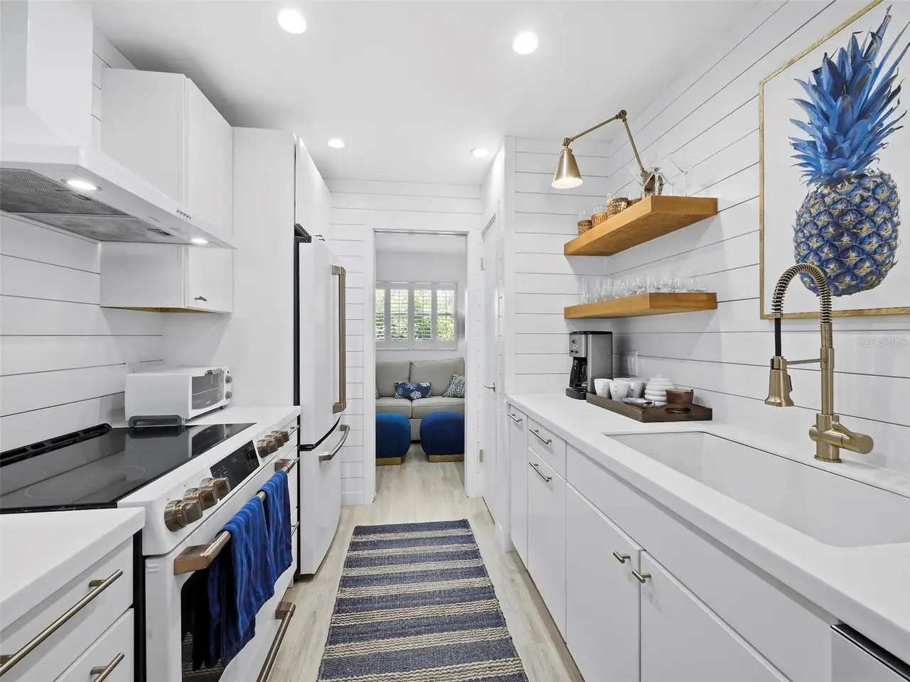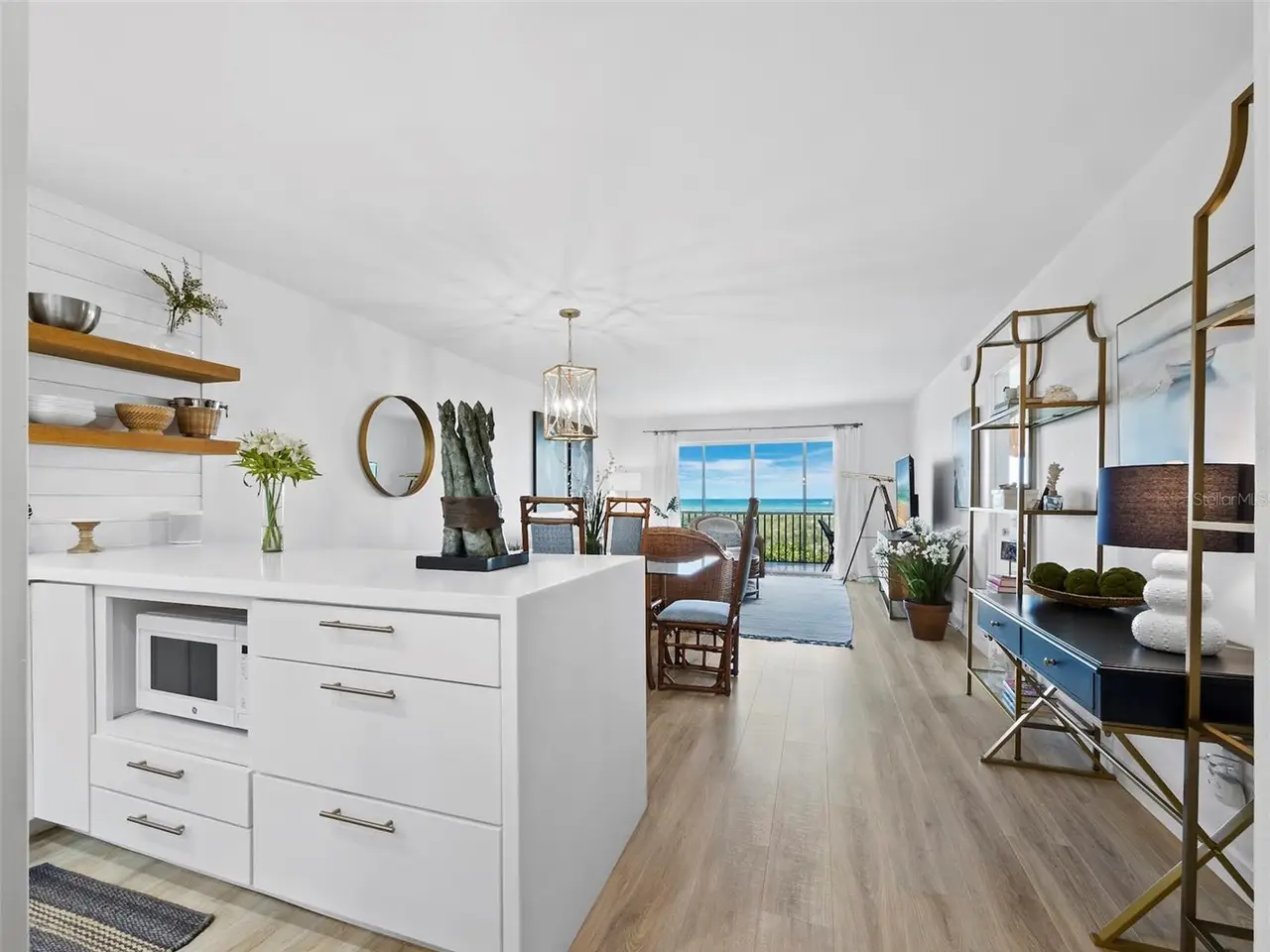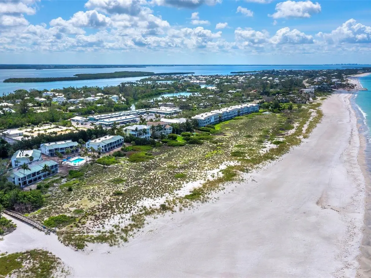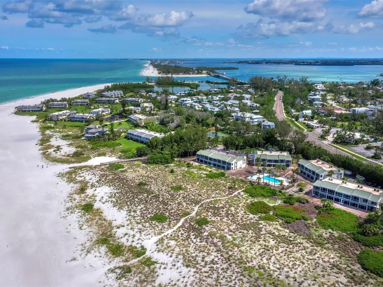 Experience elevated coastal living in this beautifully renovated, second-floor beachfront condominium, offering sweeping Gulf views and the tranquility that comes with a higher vantage point. Nestled within the intimate, gated community of Sea Pines on the serene north end of Longboat Key, this end-unit residence effortlessly blends updated sophistication with the soothing rhythm of the sea. This light and airy floor plan features two bedrooms, two full baths, and a flexible den that easily converts to a third sleeping area for guests. Designed with a relaxed, coastal aesthetic, the interior showcases neutral flooring and paint tones, stylish plumbing fixtures, updated lighting, plantation shutters, and solid surface countertops throughout. The kitchen is a true showpiece, offering Gulf views, modern cabinetry, sleek open shelving, shiplap accent walls, a statement tile backsplash, premium GE Cafe appliances, and a large pantry perfect for any home chef. The primary suite is a peaceful retreat with views of the Gulf and community pool, a generous walk-in closet, and a spa-style en-suite featuring a spacious walk-in shower. Step outside from either the living area or the primary suite onto a 26-foot screened lanai ideal for morning coffee, al fresco dining, or simply unwinding to the sound of waves and the sight of spectacular sunsets. The guest suite offers its own en-suite bath and large walk-in closet, providing comfort and privacy for visitors. A full-size, side-by-side washer and dryer add everyday convenience. Sea Pines is a boutique complex of just 28 residences, offering a relaxed and secure lifestyle with gated entry. Amenities include a heated pool with lounging and dining areas, a private beach access path, tropical landscaping, outdoor grilling stations, and a pet-friendly atmosphere with strong rental potential. Don't miss this rare opportunity.
