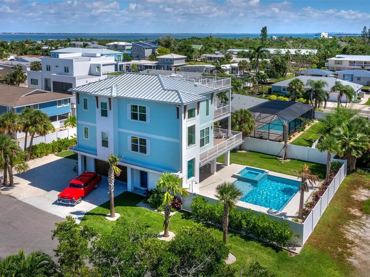 What’s better than a newly constructed home (2024) on fabulous Longboat Key? With carefully selected designer finishes, High Impact Sliding Doors and Windows throughout, four bedrooms and four and a half baths, covered balconies on every floor, including an amazing rooftop deck with gorgeous views: this is the epitome of luxury living meets laid back coastal charm! Everything has already been done for you to create the perfect island retreat. The elevated second floor living area features a gorgeous chef's kitchen with a large island that is open to the dining area and great room, all done up in coastal hues. Walls of sliding doors offer abundant light and open to a nice sized outdoor covered deck that overlooks the pool and offers the perfect balance for indoor, outdoor entertaining. One of the 4 bedrooms with an ensuite bath and an additional half bath are on this floor. The third floor living area features 3 more of the bedrooms, and all have their own ensuite bath. A covered porch is here for yet another outdoor moment and is the perfect spot to sit and enjoy the Florida breezes at the end of the day. A winding staircase on this deck leads to the showstopper rooftop balcony with stunning views to Sarasota Bay and partial views to the Gulf of Mexico. From here you can see just how close you are to the gorgeous stretch of beach, with your deeded beach access, just a short walk down the street. Uniquely positioned mid-key on the island, you are surrounded by multiple restaurants, shopping, and a true opportunity for an extraordinary way of life. Whether you are looking for your forever home, a vacation spot to call your own or an investment rental property, this may well be the one for you.