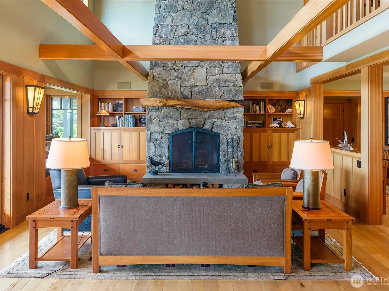 LOPEZ ISLAND LUXURY A rare blend of privacy, distinction & breathtaking views. This custom NW Craftsman sits on 27 waterfront ac overlooking MacKaye Harbor to Vancouver Is & OLympic Mtns. Designed for southern vistas, the 3BD/3BA home features madrona floors, banks of windows & clear fir cabinetry & finishes. Great Room centers on a stone fireplace with built-ins & view daybed. A chef's kitchen offers slate counters, double ovens, Wolf cooktop & breakfast nook. Two ensuite primary bedrooms with walk-in closets, one with covered deck. French doors open to sunny stone patio & eagle-eye views. Detached garage with studio above. Seasonal creek winds thru mature woods & pasture. Large shop/garage, fenced garden, fruit trees, chicken house & more.