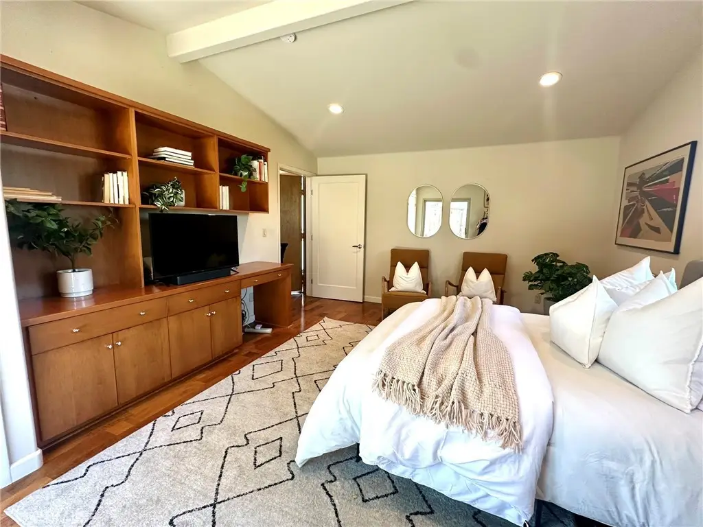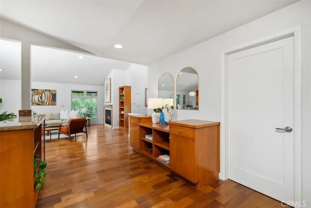 2377 Silver Ridge Avenue, a stunning retreat perched up high in Silver Lake, offers breathtaking views of the Hollywood Sign, Griffith Observatory, and the surrounding hills, providing modern living in one of L.A's most vibrant neighborhoods. This home combines luxury, functionality, and style with thoughtful design elements throughout. The home features a spacious driveway that accommodates 5 or more cars, a rarity in the area, along with a direct-access 2 car garage. Recessed lighting, hardwood flooring, and abundant windows flood the home with natural light. Designed to live like a single-level home, the primary bedroom, secondary bedroom, kitchen, living room, and laundry room are all conveniently located on the main level. The home was also designed to accommodate a future elevator if desired. The great room concept seamlessly connects the kitchen, family room, and dining area, with the dining space offering direct access to a tranquil patio, ideal for entertaining. The kitchen includes a step-in pantry, granite countertops, stainless steel appliances, a gas cooktop with a vent hood, and ample cabinetry. A counter seating area also serves as a convenient workspace. The primary bedroom offers captivating views of Silver Lake, the Hollywood Sign & Griffith Observatory, with a spacious walk-in closet featuring a custom built-in storage system. The ensuite bathroom includes a luxurious bayless walk-in shower, bench seating and multiple shower heads, plus a separate make-up vanity area. The secondary main-level bedroom is currently used as an office/den, with direct access to the patio. The secondary bathroom features a tub/shower combo. The outdoor patio area is peaceful and perfect for barbecues and outdoor gatherings. The lower level includes a third bedroom, ideal as a guest bedroom or private office, as well as a powder bath and a flex space currently used as a fitness area. The direct-access garage is also on this level, with the home designed for a potential future elevator installation. Located in the heart of Silver Lake, this home is just minutes from Whole Foods, Silver Lake Library, trendy cafes, shops, and green spaces around the Silver Lake Reservoir. Griffith Park, the Hollywood Hills, and Downtown L.A. are all easily accessible. Silver Lake is known for its modernist architecture, artistic vibe, and dynamic food scene. The neighborhood's blend of culture, nature, and nightlife makes it one of the most desirable areas to live in Los Angeles.