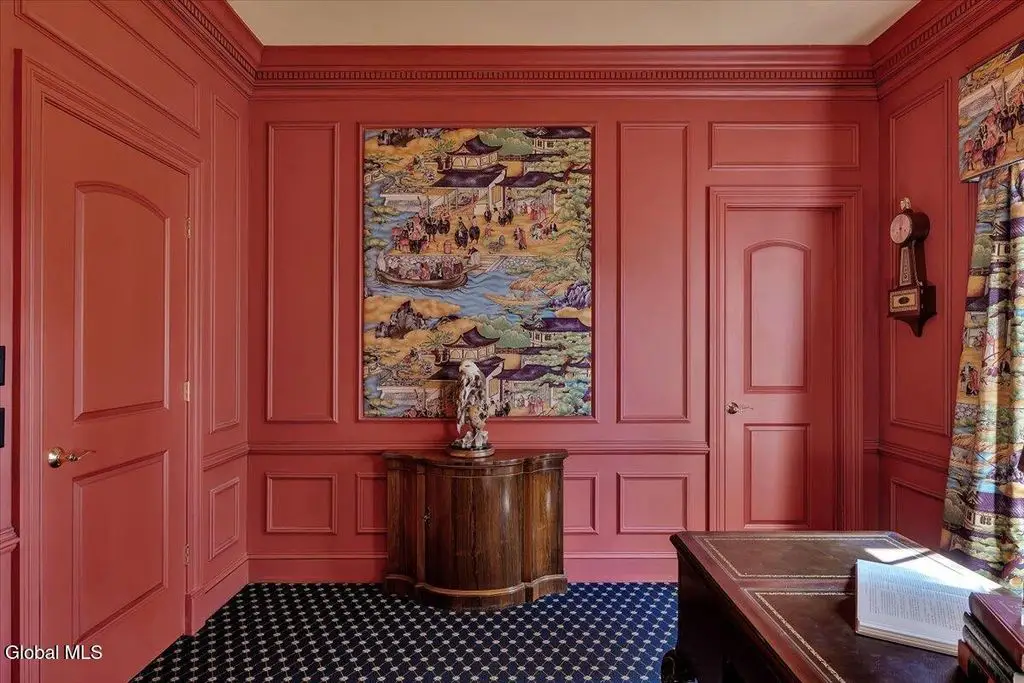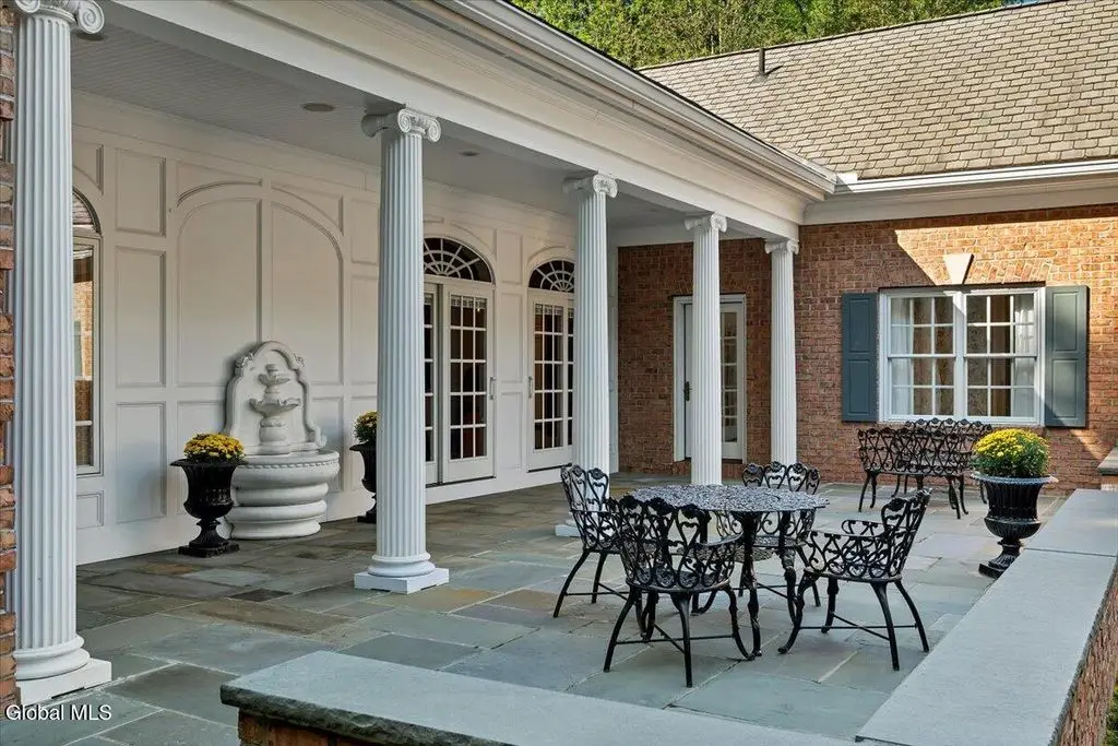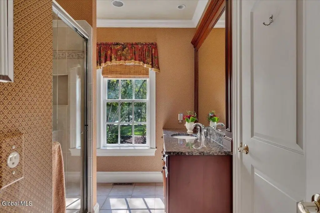 This architecturally stunning, one-level luxury residence combines timeless sophistication with the finest craftsmanship and finishes throughout. An extremely rare opportunity for the most discerning buyer. Constructed by Loudonville's premier builder with remarkable attention to detail. The home's appeal begins with a sweeping circular drive that leads to a dramatic front entrance. Bluestone steps ascend to a grand portico that welcomes you inside. Center foyer with a sparkling marble floor. Intricate moldings, and designer features throughout set an impressive tone. The formal living and dining rooms are designed with entertaining in mind. Zuber wallpaper. The gourmet kitchen is a chef's dreamC/B?B=anchored by a spacious island and equipped with Wolf, Dacor, Bosch, Summit, and Sub-Zero appliances. The adjoining great room captivates with a soaring cathedral ceiling, grand fireplace, custom built-ins, wet bar, and sliding doors that open to a private covered terrace. It's the heart of the home and perfect for gatherings large or small. Private hall with Venetian plaster walls leads to the bedroom and study wing. The owner's study or den provides an ideal space for work or relaxation. With an adjoining walk-in closet/dressing room and full bath, this flexible area could also serve as a 4th bedroom. Guest suite with an ensuite bath ensures comfort and privacy. Magnificent primary suite is a true retreat, featuring a sumptuous spa-inspired bath and an expansive dressing room. Separate guest room with ensuite bath offers perfect accommodations for an au pair. Convenient side entrance with ample storage and a laundry room. Lower-level game/recreation room with garden windows and new carpeting, plus unfinished space. Heated 3 car side-load garage. Zoned heating and cooling. Set on a beautifully landscaped private 1.7-acre lot with large stone terrace, this extraordinary home embodies the best of Loudonville luxury living.