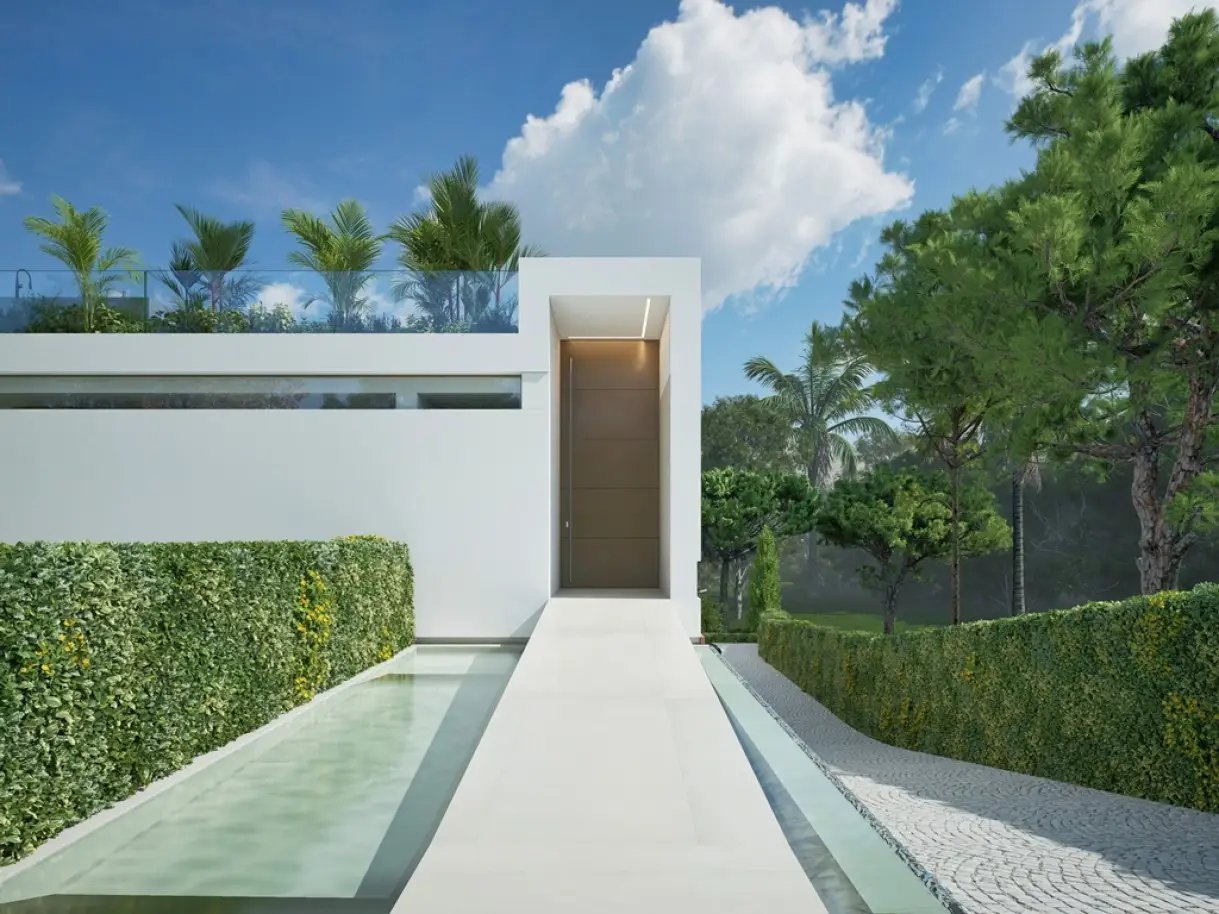 Luxury villa with five suites, in a highly sought-after exclusive residential area in the Algarve, in Vale do Lobo, Almancil, just a short distance from the beach. This modern villa, filled with natural light from its large windows, is intended to be the ideal refuge for its inhabitants. In a prime, exclusive location, it has been thought through to the smallest detail. Only high-quality materials have been used to make this a luxurious, comfortable home, full of privacy and suitable for welcoming family and friends. With a bold and elegant architecture, the villa allows for a harmonious fusion of contemporary design, privacy and connection with the surrounding nature. The villa has three floors, where the entrance is via a raised walkway in a water mirror, which leads to the majestic entrance and consequent living room, equipped with an ethanol fireplace, and the dining room and kitchen. A grand space, full of natural light, thanks to the total openness to the outside there is a harmony that creates a cozy and comfortable place, full of sophistication. The fully-equipped kitchen has a minimalist but functional design and is equipped with top-of-the-range appliances. This space flows naturally outside onto the fantastic pool terrace, with space for outdoor dining and leisure. On the lower floor are the five grand bedrooms, all with en-suite bathrooms and walk-in closets. The rooms, with their soft colors, are a haven of privacy, with extraordinary views of the lush garden. On this floor there is also an equipped gym, a multipurpose room that can be used as a games room or cinema room, a laundry room and a garage for one car. At the top of the villa there is an extraordinary rooftop, with glazed protection, leisure space and an infinity pool with panoramic views. Located in an exclusive area with golf courses, luxury accommodation, gourmet cuisine, health and wellness services, stunning beaches, 20 minutes from Faro International Airport, this villa is the safe investment for those looking for elegance, luxury, comfort and exclusivity for a permanent residence or vacation home. CHARACTERISTICS: Plot Area: 1 140 m2 | 12 271 sq ft Area: 538 m2 | 5 791 sq ft Bedrooms: 5 Bathrooms: 6 Garage: 1 Energy efficiency: A+ FEATURES: 5 suites Gym Garage Swimming pools Terraces Garden