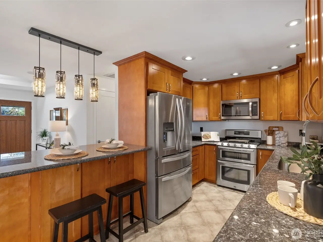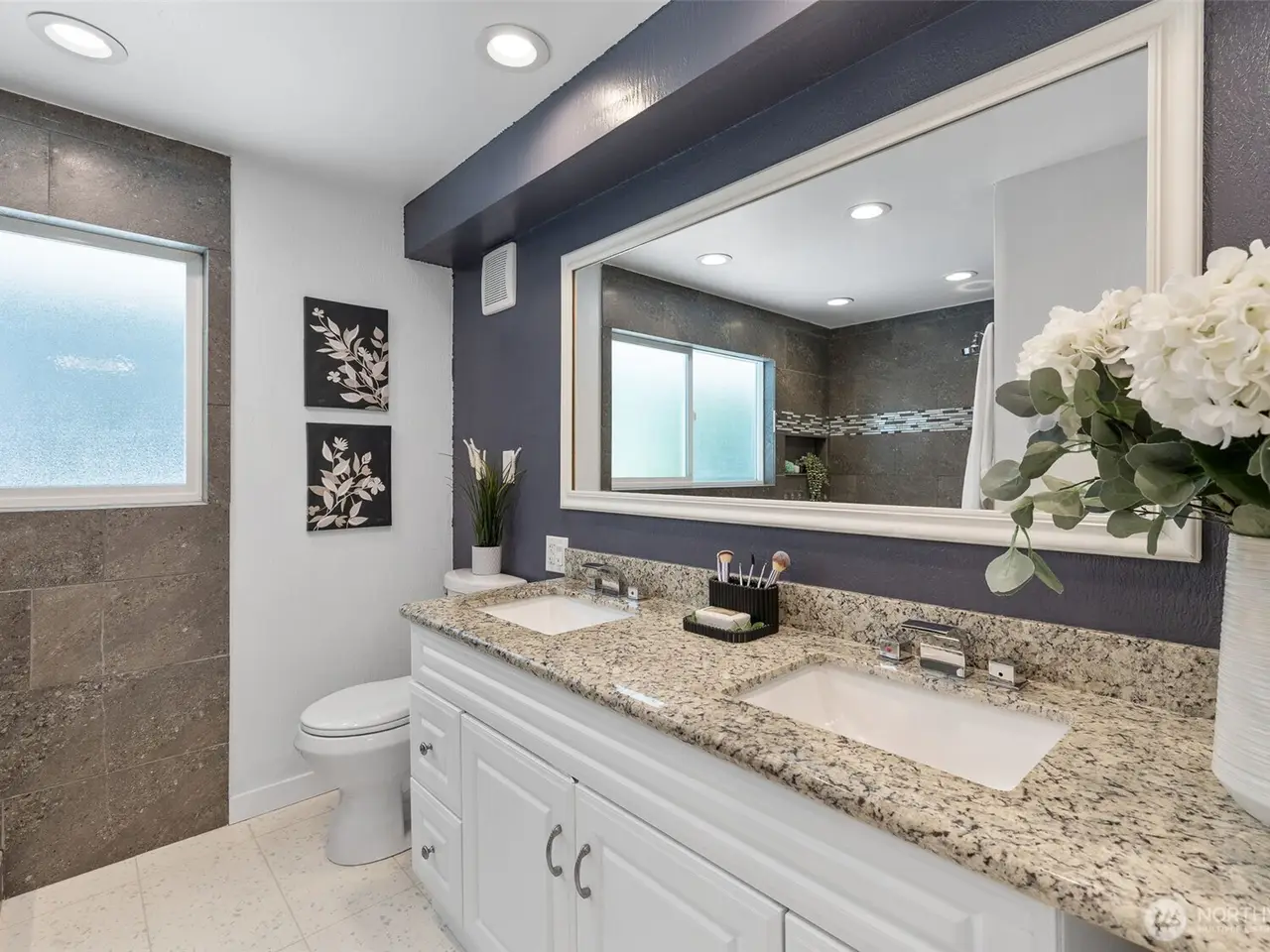 Tucked at the end of a quiet cul-de-sac, this beautifully renovated rambler offers rare flexibility & charm. With 3 bedrooms, 3 full baths, and a full second kitchen, it's perfect for multigenerational living or income potential--rent one side and live in the other! The main home features 2 beds, 2 baths, spacious primary suite has a jetted tub & walk-in closet. Nice updated kitchen. Studio suite is loaded with charm! Steam sauna and bidet in bathroom! New kitchen! Enjoy privacy in the fenced backyard with afternoon shade, an Italian plum tree, covered patio, and shed. Attached garage, heat pump w/AC, & extra space upstairs for an office or storage. Large driveway, over a 1/4 acre lot, potential for a detached ADU. Easy access to I-5 & 405!