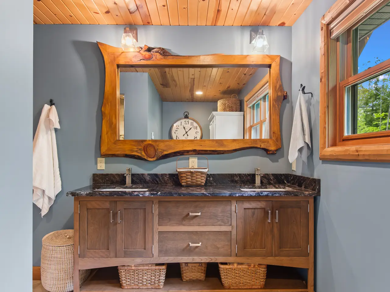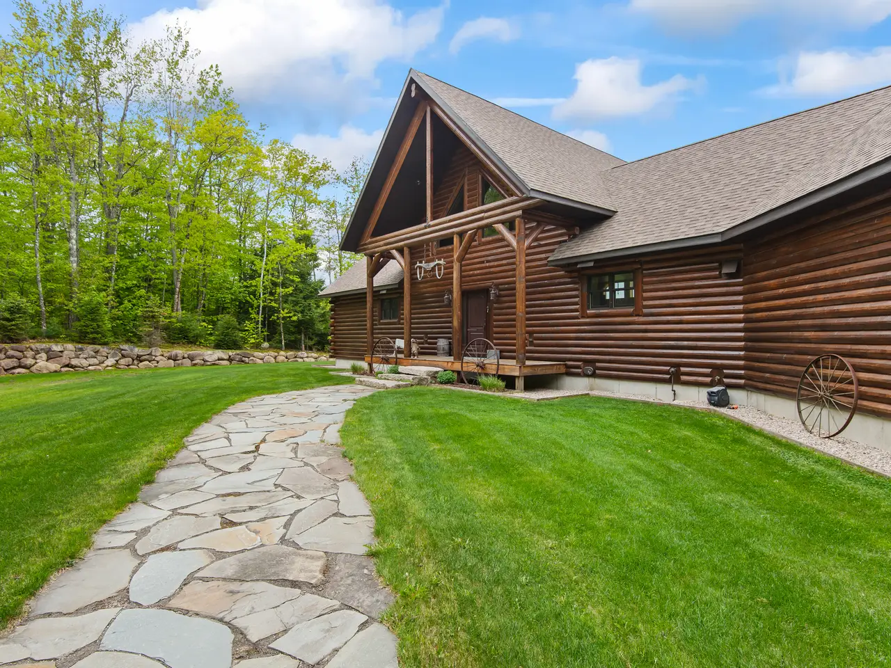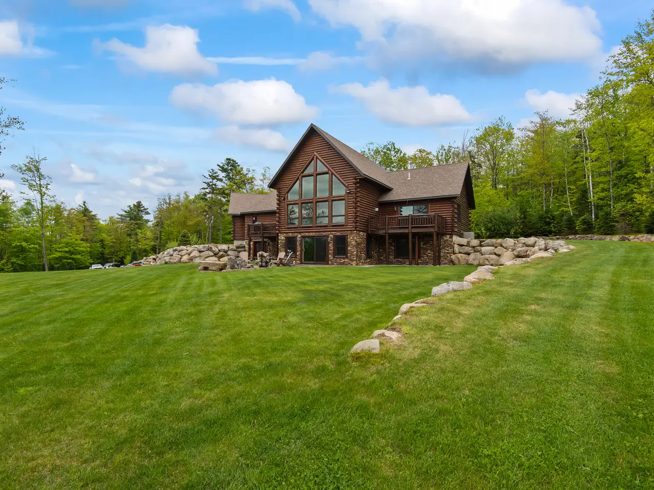 Escape to the perfect blend of rustic charm and modern luxury in this stunning 3-bedroom, 2.5-bath contemporary log home, set on 5.6 breathtaking acres in Madison, NH. Surrounded by expansive fields and majestic mountain views, this private retreat offers the best of both worlds, secluded tranquility yet just a short drive to bustling North Conway Village. Step inside and experience true craftsmanship, where custom woodwork graces every corner, creating a warm, rustic atmosphere. The magnificent, covered porch entrance sets the tone for an inviting and grand interior. At the heart of the home lies a gourmet chef’s kitchen, featuring a huge center island, perfect for entertaining, plus a spacious walk-in pantry and first-floor laundry room for effortless convenience. The grand primary suite on the first floor is a sanctuary in itself, boasting a custom-designed bathroom with an enormous tile shower, walk-in closet, and a private deck where you can soak in stunning views of Mt. Chocorua. The enormous living room is designed for both relaxation and entertaining, featuring a large stone hearth with a gas fireplace, perfect for warming up on cold winter nights. A wall of windows frames the surrounding mountains, allowing you to watch the snowfall transform the landscape into a breathtaking scene. This home has all the features you need and want for modern living with rustic charm; central a/c, radiant heat in most of the home, a standby generator, an oversized garage and toy storage.