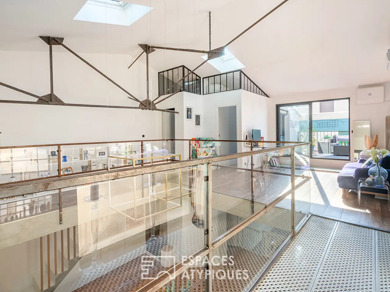 Located in the heart of Maisons-Alfort, just five minutes from the city center, this 145 m2 duplex loft (Carrez law) with a terrace is housed in a renovated former printing house.