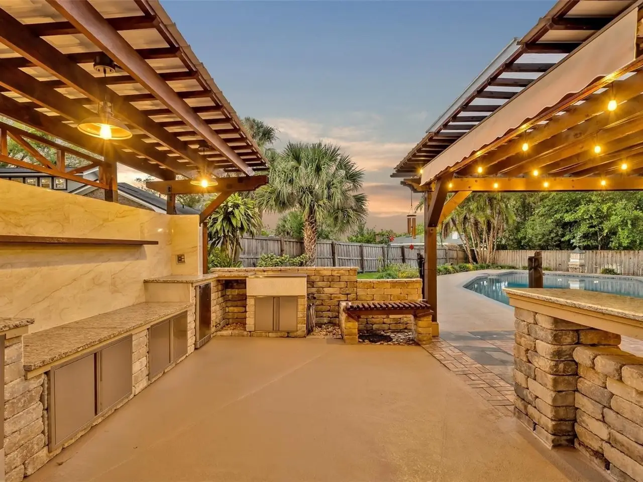 Under contract-accepting backup offers. Nestled on a quiet, tree-lined cul-de-sac and a short walk to A rated Dommerich Elementary school, this well-maintained 4 bedroom, 3.5 bath pool home in the desired neighborhood of Cove Colony offers 3,115 sq ft of well-designed living space on a spacious .41-acre lot. From the moment you arrive, you are greeted by a vaulted entrance and sparkling fountain that sets a tone of elegance and tranquility. Ideal for entertaining, the backyard features a summer kitchen with sink and refrigerator, a covered patio and lighted pergola - all overlooking the expansive resurfaced 20x60 pool. Inside, the kitchen boasts granite counters, stainless appliances and opens to a versatile bonus room perfect for a children's play area or family gathering space. A breakfast bar and dinette provide additional dining seating options. The main level also includes formal living and dining rooms, a family room with fireplace, and a private in-law suite complete with its own bedroom bathroom and office, perfect for a multi-generational living. Upstairs, the spacious primary suite includes a sitting area and a newly renovated (2025) bath with dual sinks, a soaking tub and large walk-in shower. Two additional bedrooms share a generous hall bath with dual sinks and a tub/shower combo. Additional features include a two-car garage, extensive professional landscaping highlighted by front and back landscape lighting, a custom-crafted wooden privacy fence and an enclosed concrete pad-perfect for storage or an extra play space. Conveniently located close to I-4, 436, downtown Winter Park, restaurants and parks. Tremendous upward potential with this property. Waiting for the next owner to put their personal touch. Welcome home!