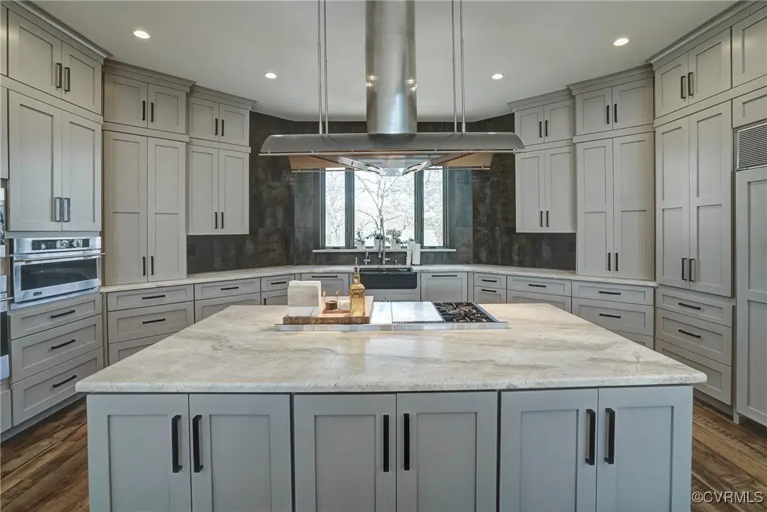 Entertainer's dream home has been extensively renovated with high end design and decorator finishes for your immediate enjoyment. The addition includes a 20 ft vaulted family room, custom kitchen and morning room for casual dining and features a floor to ceiling gas fireplace feature wall, random width reclaimed oak flooring, Umanoff lighting and walls of Pella windows and doors that flood the interiors with natural light and offer fantastic views of the nearly 5-acre site. The kitchen has a Wolf gas rangetop with griddle and grill, a steam convection oven, a convection wall oven, countertop steamer, Advantium oven, Sub-Zero refrigerator freezer and wine refrigerator. Custom cabinetry, quartzite countertops and and reclaimed wood on the island. The formal dining room has wonderful ambience from the fireplace shared with the family room. A private study with custom cabinetry and living room create additional private and quiet rooms for work and study. First floor primary suite has a huge walk-in closet and a gorgeous renovated bathroom with heated floors, steam sauna shower with dual heads and a rainwater head and dual granite vanities. A fully finished walk-out basement features a large entertainment room with gas fireplace, a walnut floating bar that seats 6, wall cabinet with copper sinks and a 2,500 bottle wine cellar. Upstairs is a second primary bedroom suite with walk-in closet and two bedrooms with a Jack and Jill bath, a home theatre with HD projector and 10 ft screen, an exercise room with a rubber floor and third floor bonus room. The outdoor living areas are fabulous with a covered kitchen and grill area, composite decking, a pool pavilion with fireplace, a 20 ft X 40 ft salt pool with tanning ledge and automatic cover for safety and a custom fire pit. Two-car attached garage. Bring your RV, boat and cars to the 40 ft X 36 ft detached garage with 2-15 ft garage doors. Whole house generator, Great location in Goochland's Centerville Village so convenient to Short Pump,West Creek and I-64 & Route 288.