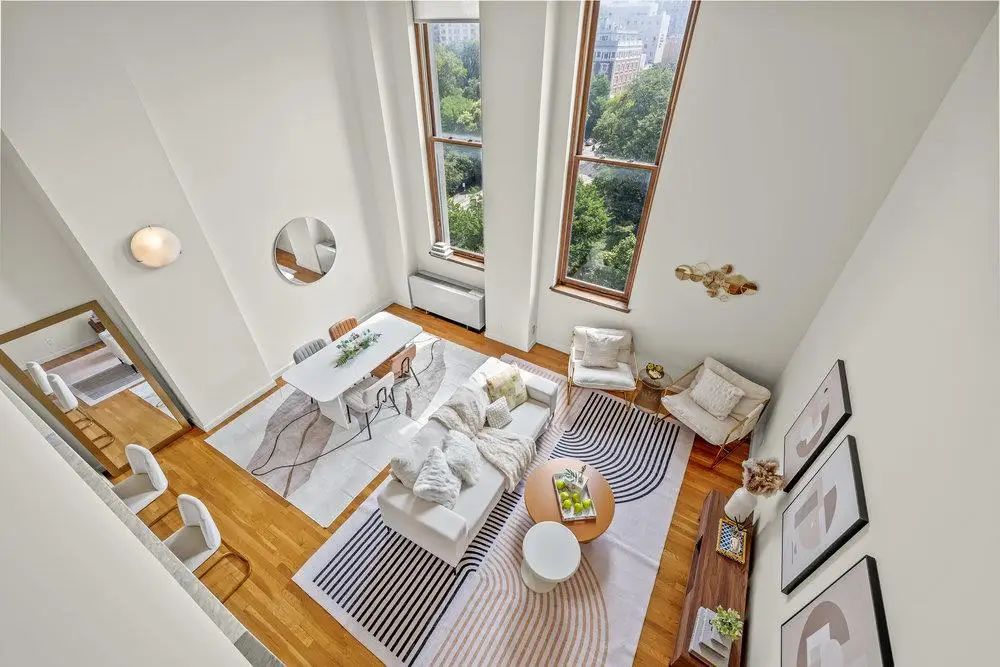 Welcome to this extraordinary triplex residence in the historic Rutherford Place Condominium, offering the ultimate in townhouse-style living with the convenience of full-service amenities. Spanning an impressive 2,048 square feet across three gracious floors, this home is a true urban sanctuary.This triplex provides exceptional flexibility and space. It offers three large bedrooms, with a versatile den that can easily be configured as a fourth bedroom, a media room, or a private home office. Two of the bedrooms boast luxurious en-suite bathrooms, while a third full bathroom is conveniently located just off the main floor bedroom.The main level invites you into a grand, open living room with soaring 16-foot ceilings and enormous windows that frame stunning, unobstructed southern views of historic Stuyvesant Park. This space seamlessly flows into a large, open, U-shaped kitchen, perfect for entertaining. The kitchen is a chef's dream, featuring Carrara marble counters, a Sub-Zero refrigerator and wine fridge, a Viking gas range, Poggenpohl cabinetry, and a Bosch dishwasher.Renowned for its distinctive layouts and timeless elegance, Rutherford Place was built in 1899 and is listed on the National Register of Historic Places. The impeccable finishes throughout residence #542 include: Custom-designed glass railings Beautiful hardwood floors Abundant closet space, including multiple walk-in closets In-unit washer and dryer Individual HVAC units in each roomThis exquisitely managed condominium offers an array of high-end amenities, including a 24-hour concierge, a full-time resident manager, and on-site valet and housekeeping services. Residents also enjoy a brand-new rooftop fitness room and a beautifully furnished, planted roof terrace.Located on East 17th Street, the building is perfectly positioned near Union Square's world-famous farmer's market, endless transportation options, premier shopping, and vibrant nightlife. For families, the home is also in close proximity to the esteemed United Nations International School. Pets are welcome.A home of this size and style is so rarely available on the market, making this a truly unique opportunity. Contact us today to schedule your private showing.