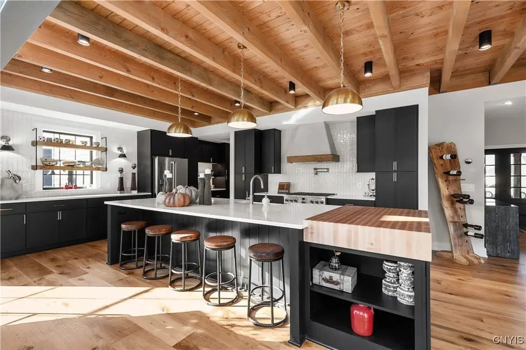 Stone Hammer Homes is offering custom-built homes in Mallards Landing featuring partially wooded homesites. The showcased model, Midnight, highlights a modern industrial design with premium features such as 9' timber-framed ceilings, sliding glass doors, a floating cable rail staircase, a linear gas fireplace with reclaimed timber mantel, and high-end finishes like shiplap trim, cedar beams, and reclaimed farm doors. Other highlights include a spacious kitchen island with a butcher block countertop, wide hardwood floors, luxury bathrooms, Marvin windows, California Closets and a walkout basement. Buyers can collaborate to create a unique 3,500-plus square foot floor plan. Located in Manlius within Fayetteville-Manlius Schools, Mallards Landing offers convenience and picturesque living.