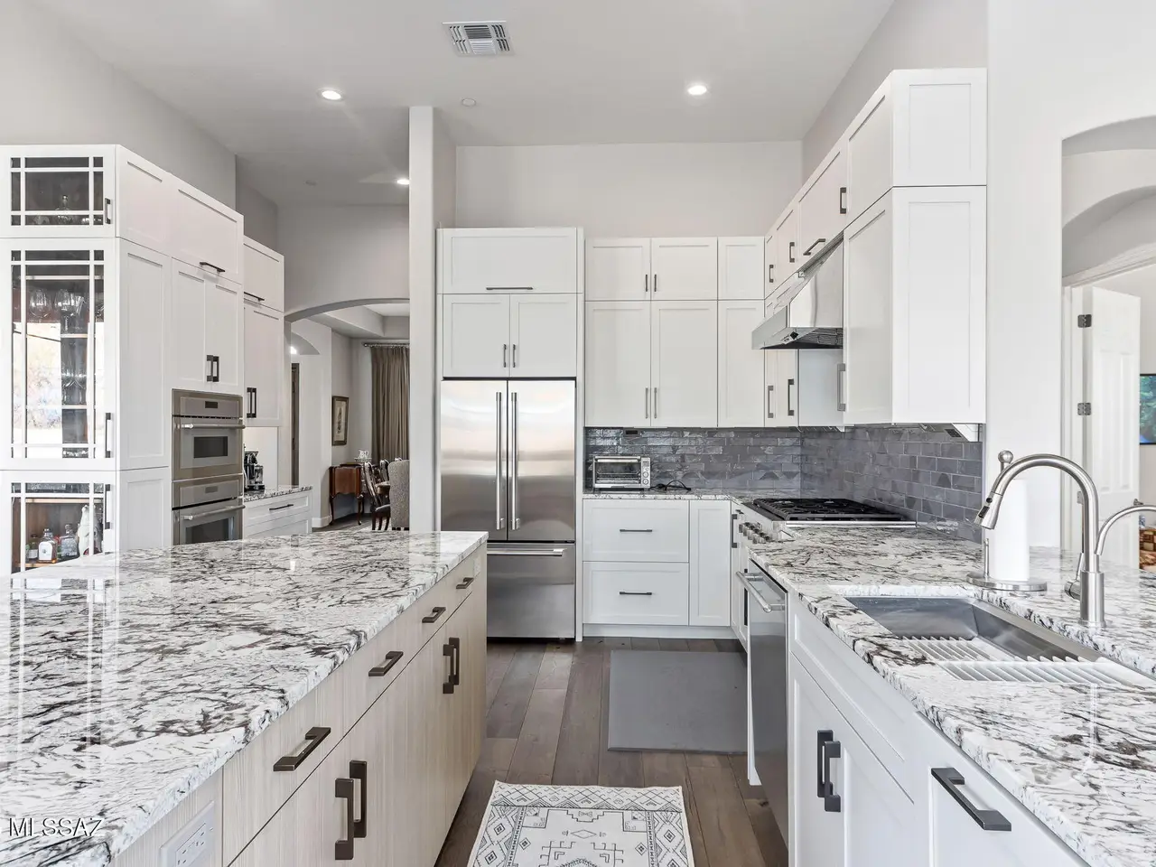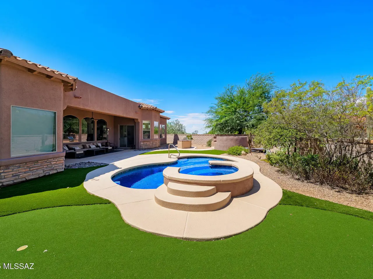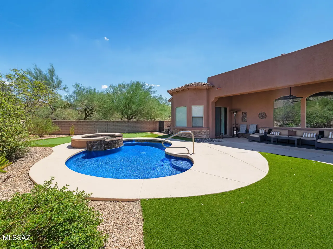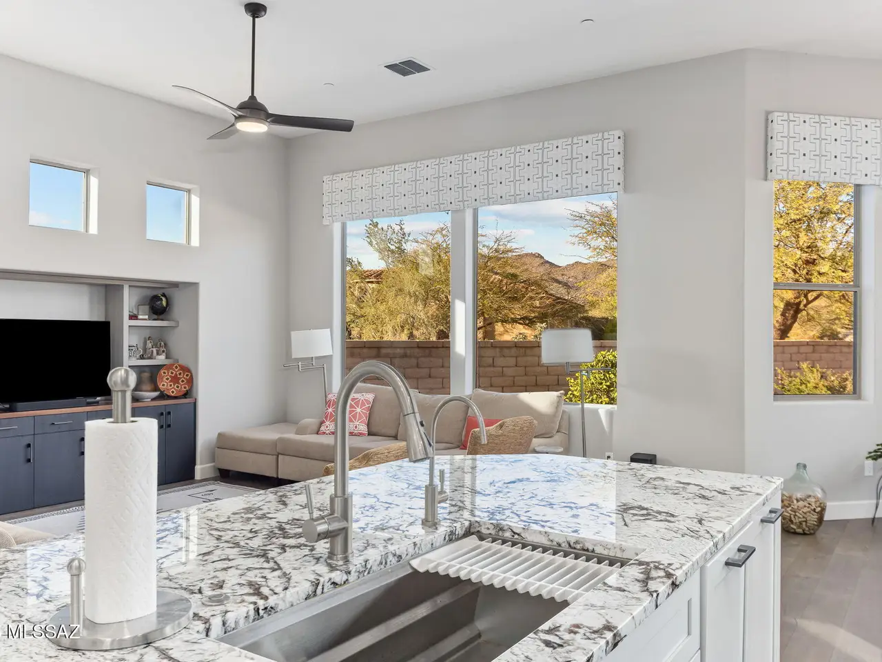 Assumable VA loan 2.25% Beautifully Remodeled Home with Stunning Mountain Views in Dos Lagos at Dove Mountain. Welcome to this gorgeous 3-bedroom, 4-bathroom home in the gated community of Dos Lagos at Dove Mountain. Thoughtfully remodeled with modern touches and timeless elegance, this home offers the perfect blend of style, comfort, and privacy. Step inside and immediately feel at home with new engineered wood flooring and a beautifully updated kitchen featuring sleek cabinetry and plenty of space to cook and entertain. The great room and living room have been redesigned with custom shelving, adding warmth and character to the space. A dedicated office space features new custom cabinets and shelving, creating a stylish and functional workspace. The primary suite is a true retreat complete with his and hers walk-in closets and a spa-like bathroom. Outside, your own private oasis awaits. Take in the breathtaking mountain views while relaxing in the pool and spa, the perfect spot for unwinding or entertaining guests. This home is all about comfort, beauty, and tranquility!