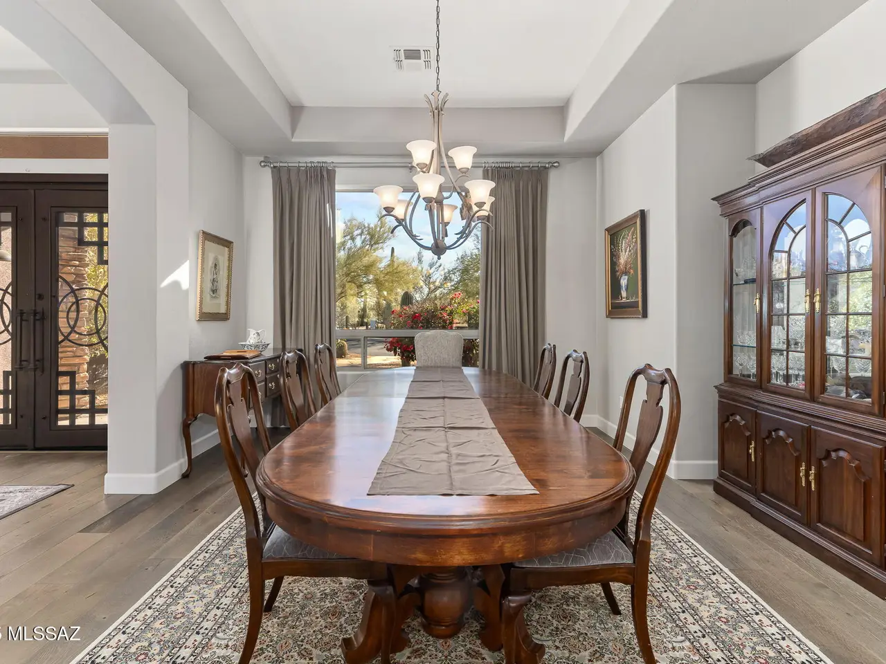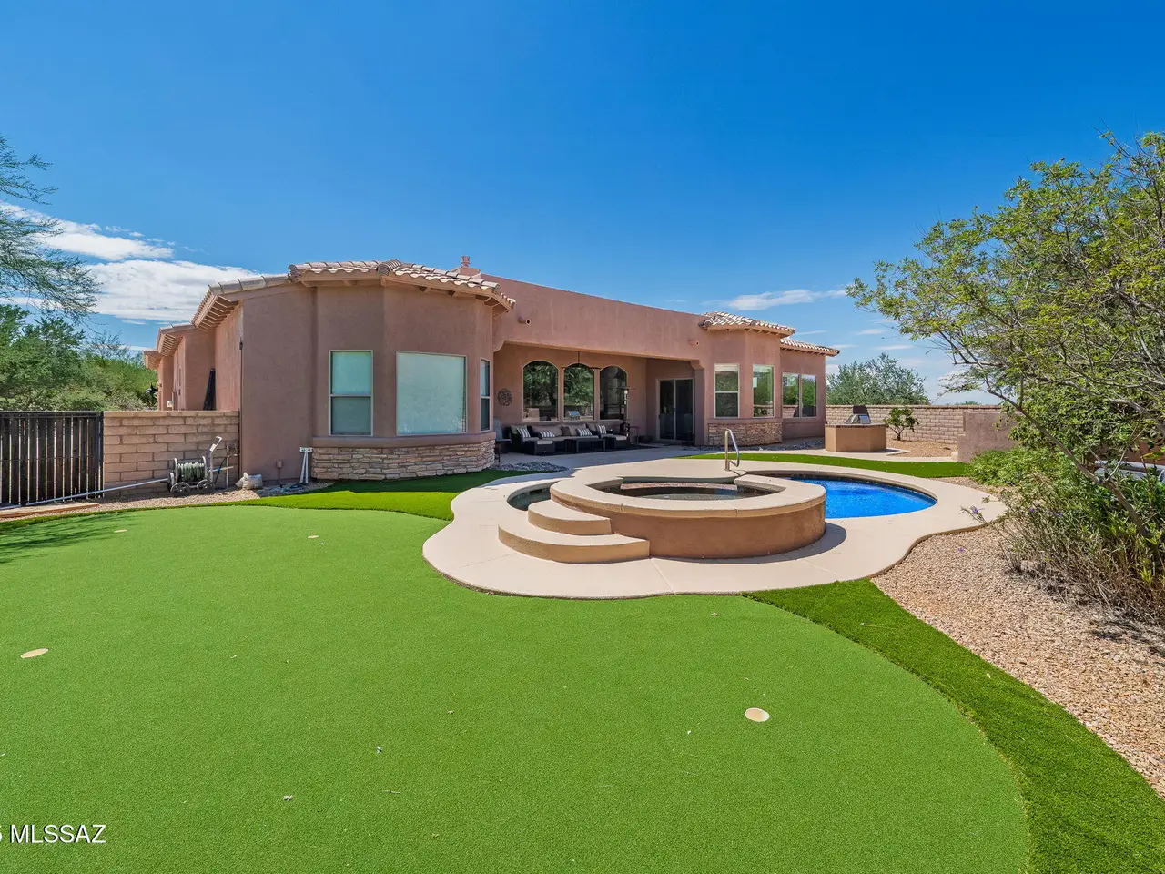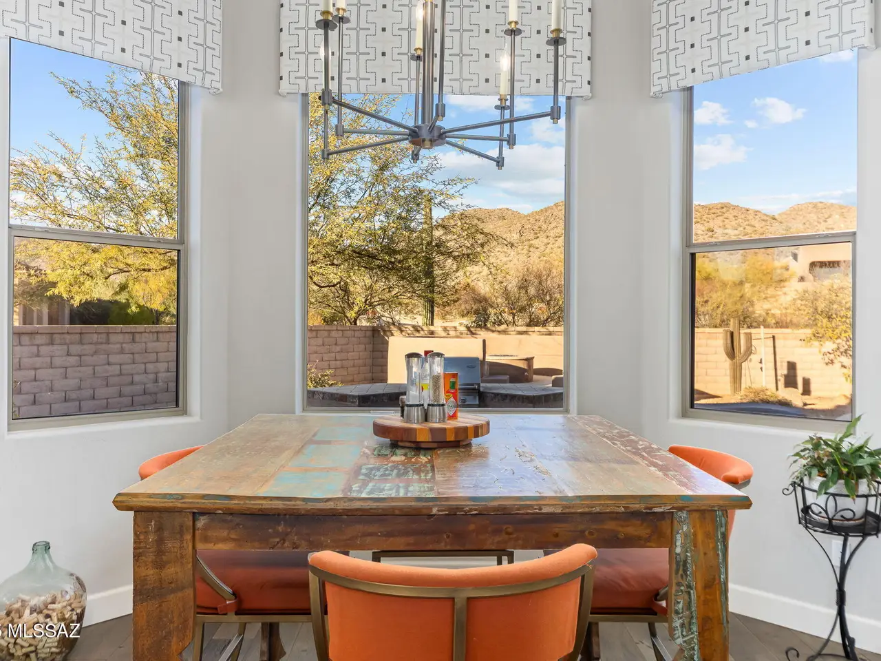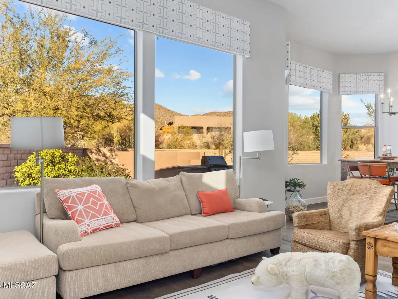 Assumable VA loan 2.25% Beautifully Remodeled Home with Stunning Mountain Views in Dos Lagos at Dove Mountain. Welcome to this gorgeous 3-bedroom, 4-bathroom home in the gated community of Dos Lagos at Dove Mountain. Thoughtfully remodeled with modern touches and timeless elegance, this home offers the perfect blend of style, comfort, and privacy. Step inside and immediately feel at home with new engineered wood flooring and a beautifully updated kitchen featuring sleek cabinetry and plenty of space to cook and entertain. The great room and living room have been redesigned with custom shelving, adding warmth and character to the space. A dedicated office space features new custom cabinets and shelving, creating a stylish and functional workspace. The primary suite is a true retreat complete with his and hers walk-in closets and a spa-like bathroom. Outside, your own private oasis awaits. Take in the breathtaking mountain views while relaxing in the pool and spa, the perfect spot for unwinding or entertaining guests. This home is all about comfort, beauty, and tranquility!