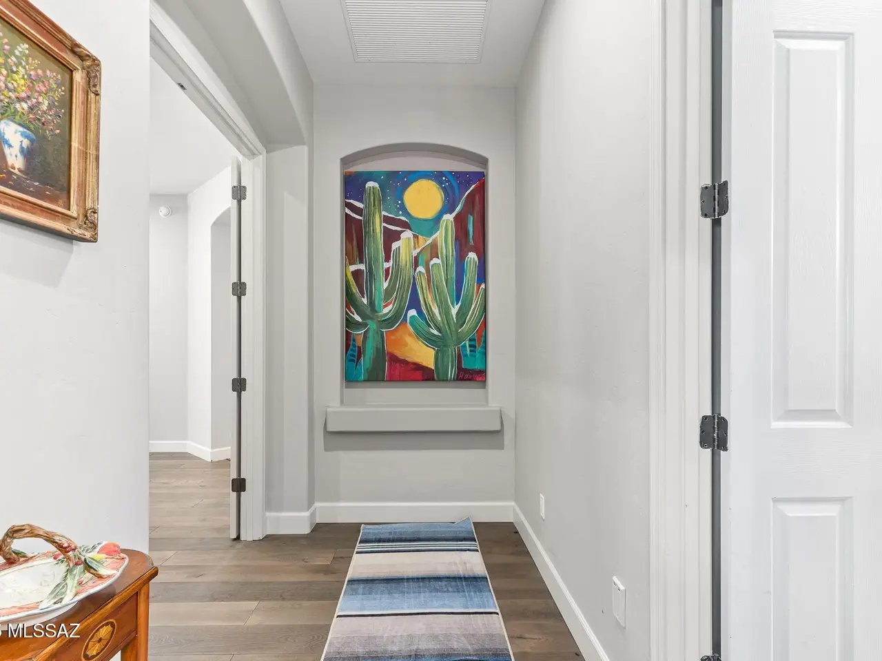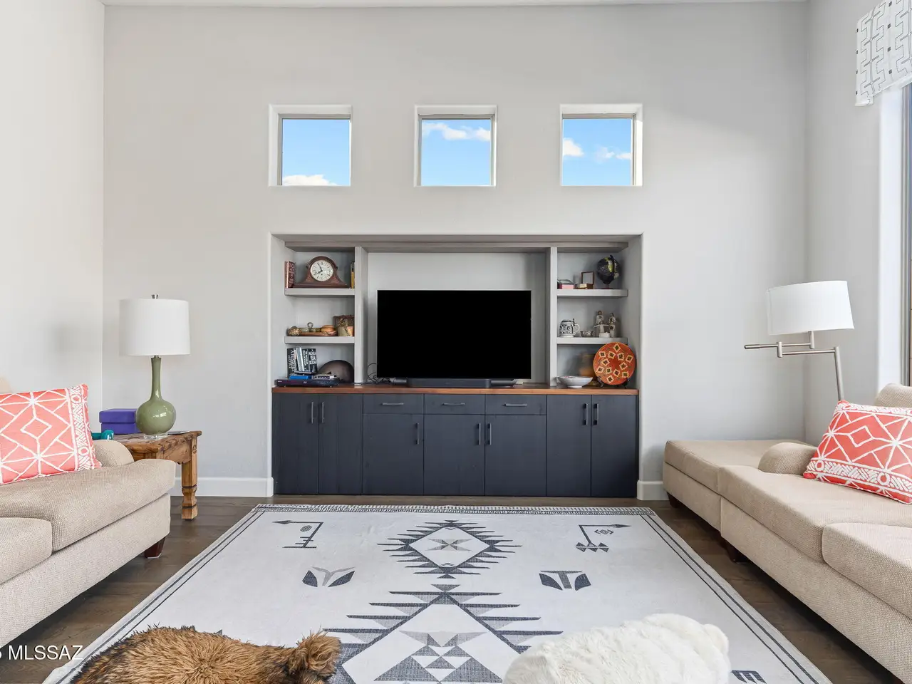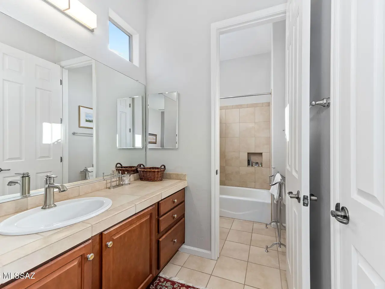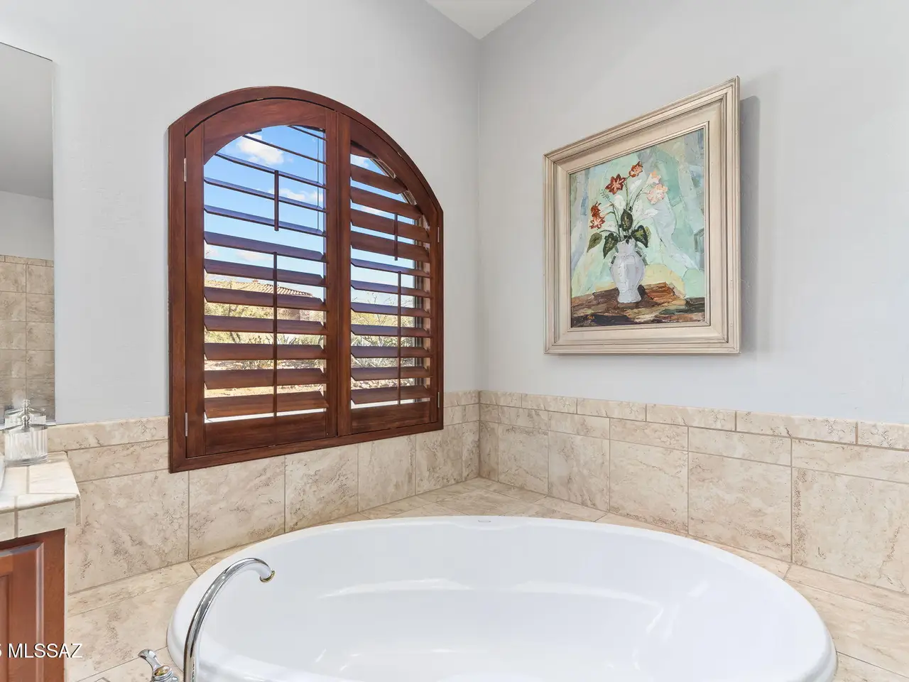 Assumable VA loan 2.25% Beautifully Remodeled Home with Stunning Mountain Views in Dos Lagos at Dove Mountain. Welcome to this gorgeous 3-bedroom, 4-bathroom home in the gated community of Dos Lagos at Dove Mountain. Thoughtfully remodeled with modern touches and timeless elegance, this home offers the perfect blend of style, comfort, and privacy. Step inside and immediately feel at home with new engineered wood flooring and a beautifully updated kitchen featuring sleek cabinetry and plenty of space to cook and entertain. The great room and living room have been redesigned with custom shelving, adding warmth and character to the space. A dedicated office space features new custom cabinets and shelving, creating a stylish and functional workspace. The primary suite is a true retreat complete with his and hers walk-in closets and a spa-like bathroom. Outside, your own private oasis awaits. Take in the breathtaking mountain views while relaxing in the pool and spa, the perfect spot for unwinding or entertaining guests. This home is all about comfort, beauty, and tranquility!