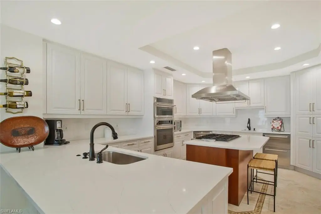 This stunning 3-bedroom + den, 3 (1) -bathroom beachfront home in Belize, located on Marco Island's southwest tip within Cape Marco, offers magnificent, unobstructed views of the Gulf of Mexico & Ten Thousand Islands and year-round sunsets. With a private elevator leading to a grand foyer, a luxurious open great room with expansive windows, and elegant details throughout, this residence is perfect for enjoying the water views from its spacious balconies on the 11th floor. No expense spared for the updated, gourmet kitchen with marble backsplash, quartz countertops, white cabinets, gas cooktop, refrigerator and freezer drawers, pull out drawers in cabinets, and quality stainless steel appliances. The den includes built-ins, beverage refrigerator, and custom pull-out drawers. The master suite features Gulf views, two walk-in closets, a luxurious soaking tub, and dual sinks, while the guest rooms offer privacy with a balcony overlooking the beach and Gulf. Residents can indulge in resort-style amenities such as a Gulf-front pool, spa, social room, fitness center, guest suites and theater. With two under-building parking spaces and easy elevator access to a private lobby, Belize in Cape Marco offers unparalleled Florida resort-style living in a tropical paradise!
