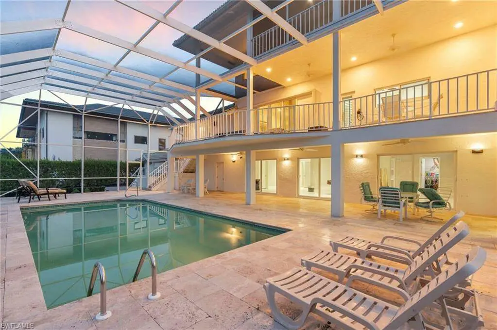 Located in the exclusive Marco Island Estates, this stunning four bedroom/4.5 bath two-story home situated less than 800 feet to open water, providing direct deep-water access to the Gulf of Mexico and the 10,000 Islands fishing paradise. Each of the four spacious bedrooms features an ensuite bathroom, while a private elevator ensures easy access to all floors. The home's heart is the newly remodeled kitchen, equipped with custom cabinets, a gas stove, and an inviting eat-in area that flows into the family room, where a cozy gas fireplace sets the perfect atmosphere. Step outside to your private backyard oasis, complete with a gas-heated pool and a breathtaking composite dock featuring a 12,000-pound lift, three-jet ski platform, waterway canopy, and a brand new seawall (2021). A pontoon boat and two Sea-Doo jet skis are included, making this the ultimate waterfront lifestyle. Other features include an oversized garage/workshop, a basement with ample storage and a bonus game room, hurricane-impact windows and doors, a hidden safe, drop-down TV in the master suite, Wi-Fi-enabled garage doors, a 1,000-gallon buried LP tank with Wi-Fi monitoring, and a Ring camera system. Turnkey and ready to move in, this property is an incredible investment, surrounded by magnificent homes on one of the best streets in the Estates.