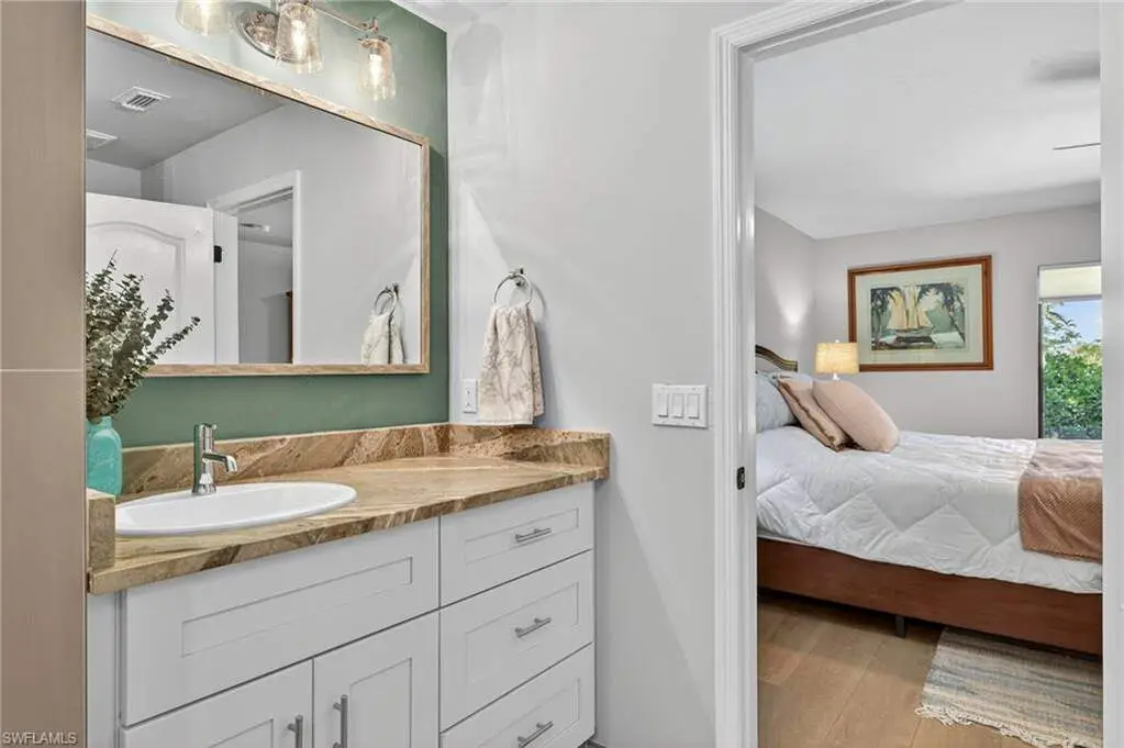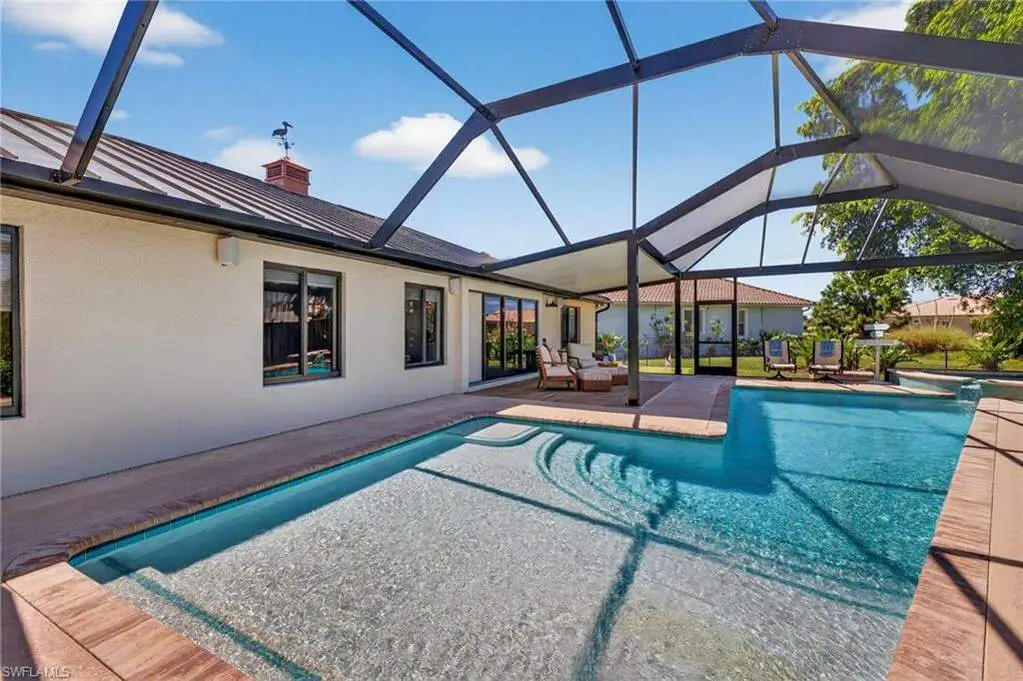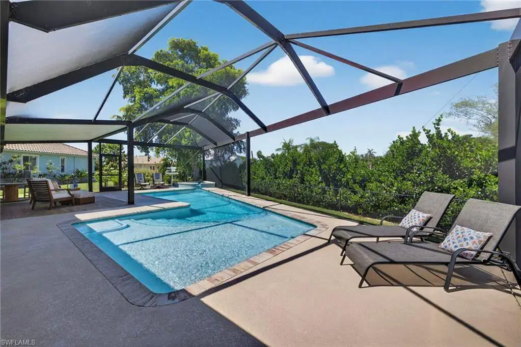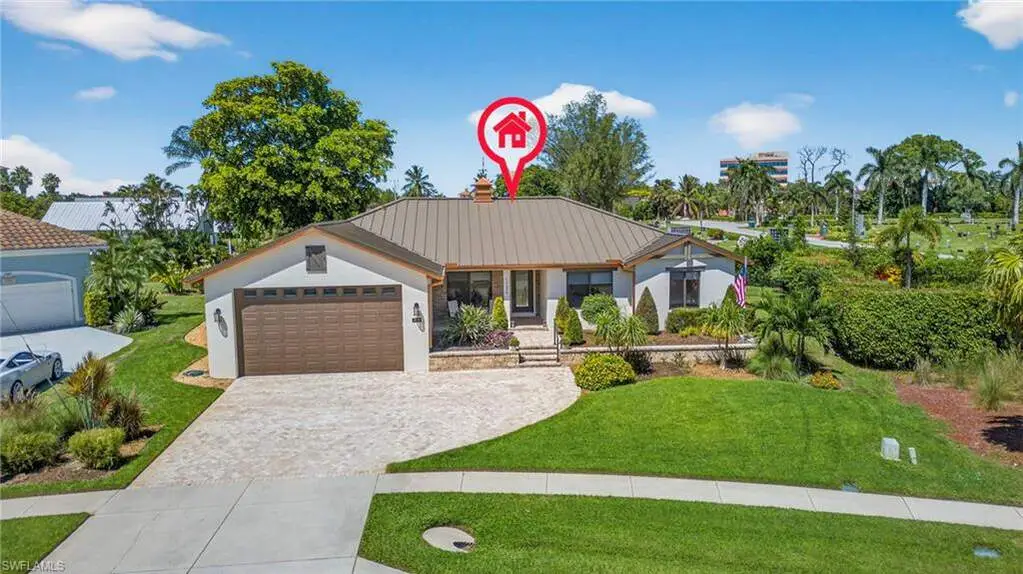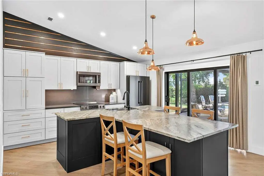 Welcome to 1030 Hartley Street in desirable Marco Island location. This 4 bedroom/3 bathroom single family house with a modern farmhouse aesthetic has been completely redesigned and renovated in 2023 ideal for today's living. Enter into a welcoming foyer to an open-concept living space featuring wide plank light oak flooring and vaulted ceilings. Spacious living room features a linear fireplace and contemporary accent wall. Wall of glass opens to fabulous outdoor living space seamlessly blending indoor/outdoor living. Large pool with sunshelf and spa, putting green plus a private grassy rear yard ideal for dog lovers and play. A true chef's eat-in kitchen features shaker cabinetry, slate finish stainless steel appliances, contemporary backsplash and oversized island ideal for daily dining and entertaining. Master suite oasis with spacious bedroom, spa-like master bathroom and a walk-in closet. 3 guest bedrooms, 2 guest bathrooms plus an additional bedroom currently used as a home office. Oversized 2-car garage could accommodate up to 4 vehicles with an added lift or RV. Desirable location mere minutes from beaches, shopping and dining. Totally renovated inside and out in 2023 including new facade, new garage door, new roof, new impact-resistant windows and doors, new HVAC system, new hot water heater, new plumbing and electric, new pool, spa and lanai, new landscaping, new irrigation, new paver driveway, as well as new interior flooring, new surround sound, new kitchen and new bathrooms this is a truly exceptional home with no expense spared. Turnkey.
