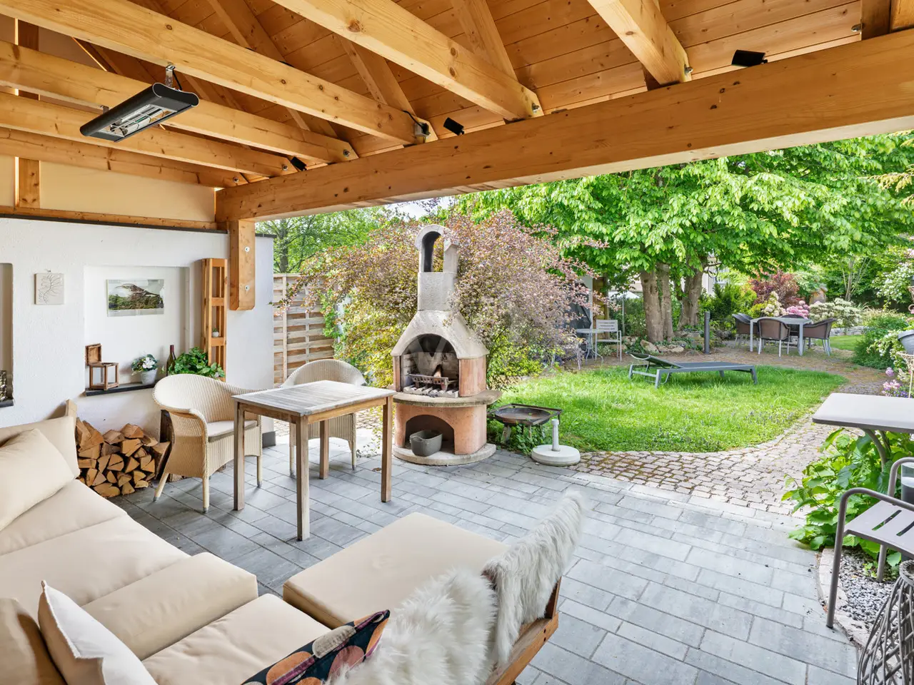 This well-kept detached house/multi-family house in a central yet quiet location in Markt Indersdorf combines generous living comfort with high-quality furnishings. Originally built in 1972, the house was extensively renovated in 1996 and is now in excellent condition. The former bungalow was extended at this time. With a living space of approx. 450 m² and a plot of approx. 920 m², it offers ideal conditions for families with high demands on space and quality. The property has a total of eight rooms, including seven bedrooms and three modern bathrooms. High-quality materials such as real wood floors, marble and triple-glazed windows underline the upscale living style. The combination of central heating, underfloor heating and a heat pump ensures a pleasant indoor climate - the latter heats the building's own indoor pool. A photovoltaic system completes the energy concept and contributes to sustainability. The private wellness area with indoor pool and sauna creates the best conditions for relaxation in your own home. The conservatory, which was added in 2012, expands the living space with a light-flooded relaxation area with a view of the lovingly designed and secluded garden. The spacious terrace invites you to spend relaxing hours outdoors; stylish garden furniture made of boat leather sets special accents in the outdoor area. Another highlight is the exclusive fitted kitchen worth around 40,000 euros. It not only impresses with its elegant design and well thought-out planning, but also with its first-class equipment with modern brand-name appliances. Two fireplaces - one inside and one outside - ensure a cozy atmosphere all year round. Practical details such as an integrated laundry chute make everyday life even easier. A single garage with a parking space in front offers space for vehicles. Thanks to the central location, shopping facilities, schools and public transport are within easy reach - another plus point for families and professionals. This house offers a complete package of living quality, features and location - ideal for anyone who wants to live generously, stylishly and comfortably. Custom-made built-in wardrobes and furniture can be taken over by arrangement. The property is ready to move into by arrangement.