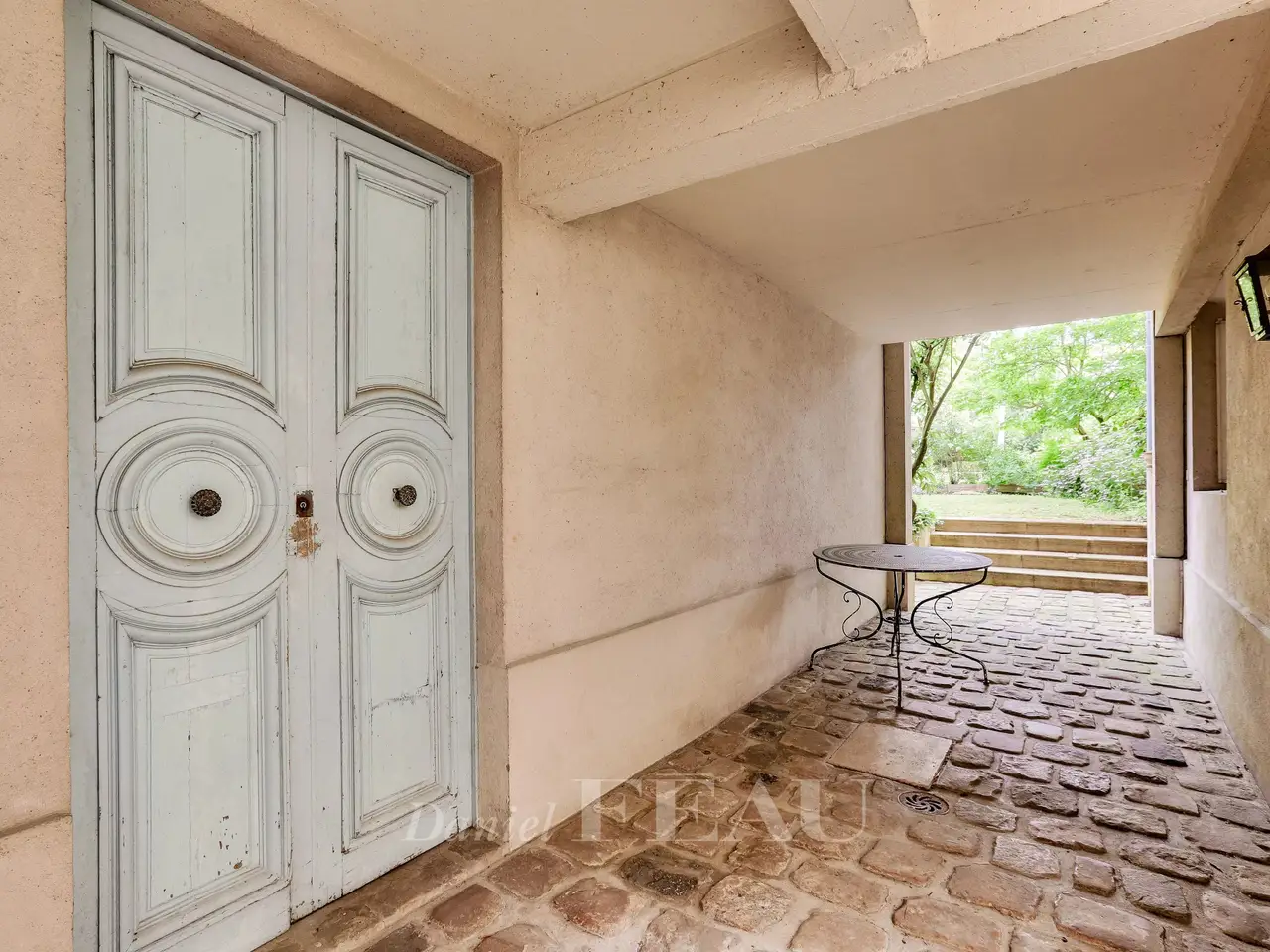 This near 350 sqm 18th century property oozing with character is located in the heart of picturesque Marnes-la-Coquette. Hidden from view in a leafy 616 plot, it has been extended twice to create a spacious ground floor kitchen opening onto a courtyard, and an adjacent dining room. Upstairs are a generous living/reception room overlooking the landscaped garden and featuring period panelling and a fireplace, and a master suite with a shower room and sitting room. The top floor comprises four spacious bedrooms and two shower rooms. Ample fitted storage space. The property also includes a self-contained apartment with a shower room. Work is required to exploit the full potential of this ideal family home.