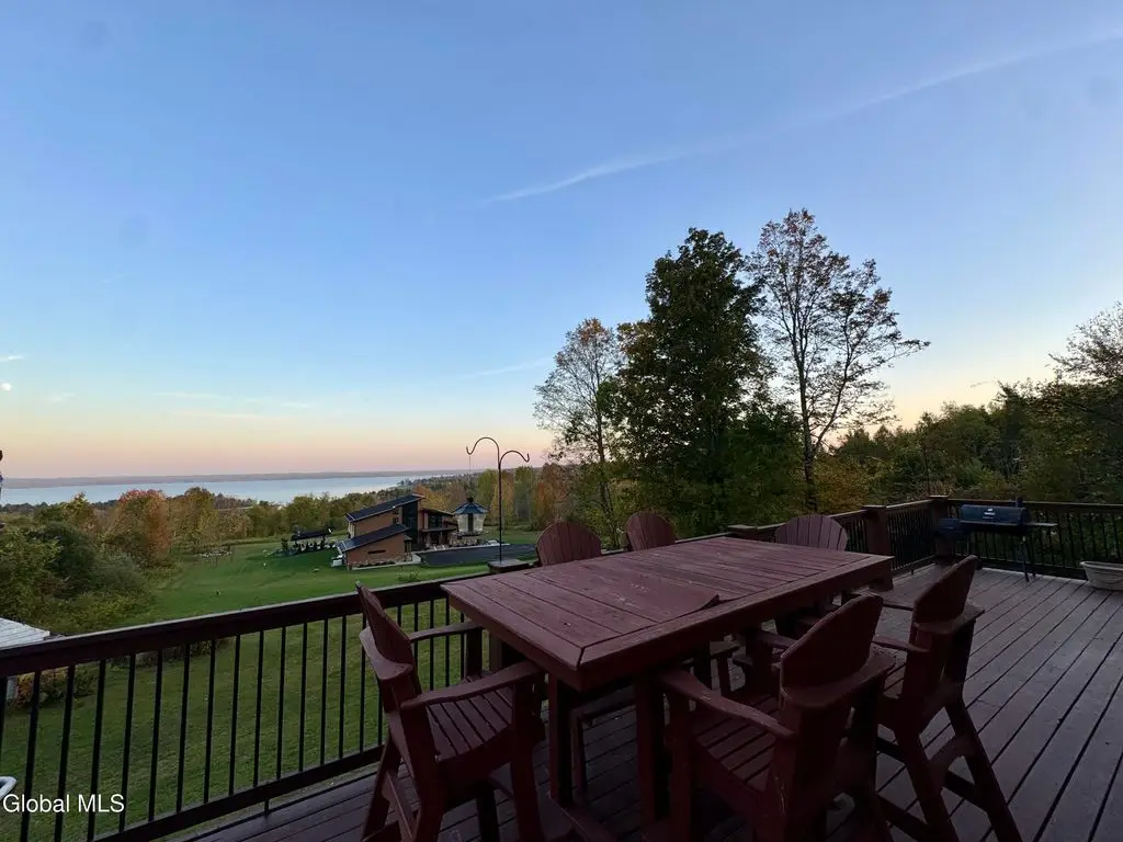 Stunning Lake & Mountain Views! Perched high on a ledge overlooking the Great Sacandaga Lake, this custom Chalet-style home sits on over 10 acres with a 10' beach permit a short drive away for lake access. Tucked away on a private dead-end road in the Mayfield School District, this 4-bedroom, 3-bath home offers the perfect blend of seclusion and convenience.Inside, the soaring vaulted ceilings and wall of windows in the Great Room showcase breathtaking lake and mountain views. The gourmet kitchen features custom hand-crafted cabinetry, granite countertops, and a spacious breakfast bar - a perfect gathering place for family and friends. A full walkout lower level provides additional living space potential, ready for your finishing touches. Step outside to the expansive wraparound deck, the ideal place to entertain or simply relax surrounded by nature. Unwind on the covered patio in the newer hot tub - perfect for soaking in the peaceful setting after a long day. A true Adirondack retreat with endless possibilities!