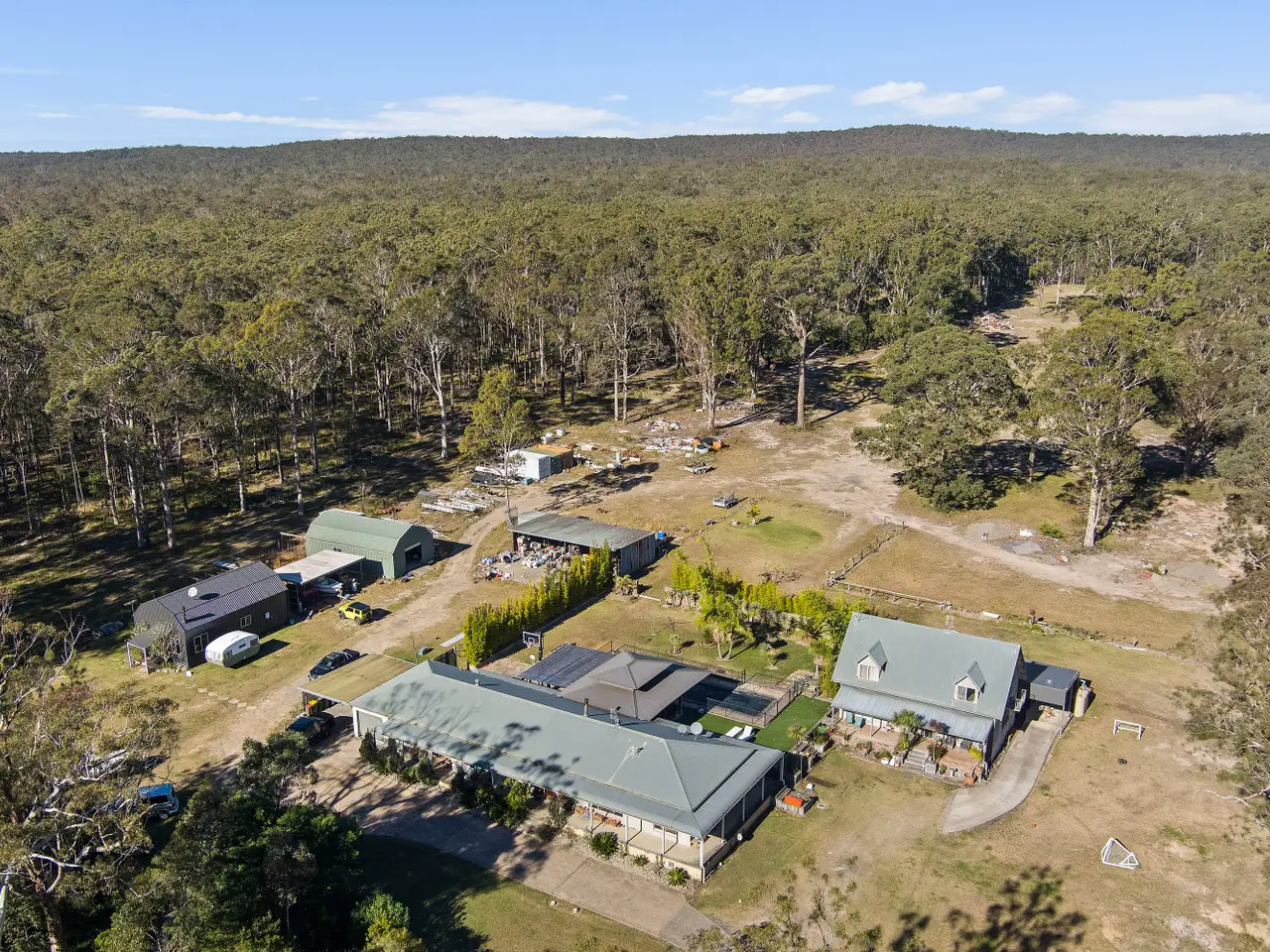 Commanding a classic country silhouette with its wide wraparound verandah and timeless charm, the remarkable estate of 'Snowood' offers an enviable lifestyle across over 45 hectares (113 acres). The five-bedroom main residence features a privately positioned master with walk-in robe and ensuite, along with a newly renovated three-way bathroom. Soaring vaulted ceilings, timber floors and a warm timber bench kitchen enhance the home's country appeal, flowing through to a rustic-style alfresco area that overlooks a serene swimming pool, perfect for entertaining. Additional accommodation includes a fully self-contained home with kitchen, bathroom, covered patio and an attic retreat or second bedroom, as well as a separate two-bedroom cottage with a lofty open-plan living area with fireplace. Each would be ideal for multi-generational living or short-term stays. Practical inclusions, such as a boat shed, large storage shed, and concrete driveways, complete the offering. Just 15 minutes from Nowra CBD and the surf at Culburra Beach, this property pairs rural seclusion with exceptional coastal and town convenience. • Expansive 45-hectare (113-acre) lifestyle estate with ultimate privacy • Five-bedroom homestead with wraparound verandah • Master suite with walk-in and ensuite, plus updated three-way bathroom • Vaulted ceilings, timber floors, and a timber benchtop kitchen • Large rustic alfresco area overlooking a swimming pool • Self-contained cottage with attic loft and rear patio • Separate two-bedroom dwelling with spacious living and fireplace • Ideal for guest stays, extended family or multi-gen living • Boat shed, large storage shed, concrete driveway, and ample parking • Only 15 minutes to Nowra CBD and Culburra Beach • Ultimate privacy with no through traffic