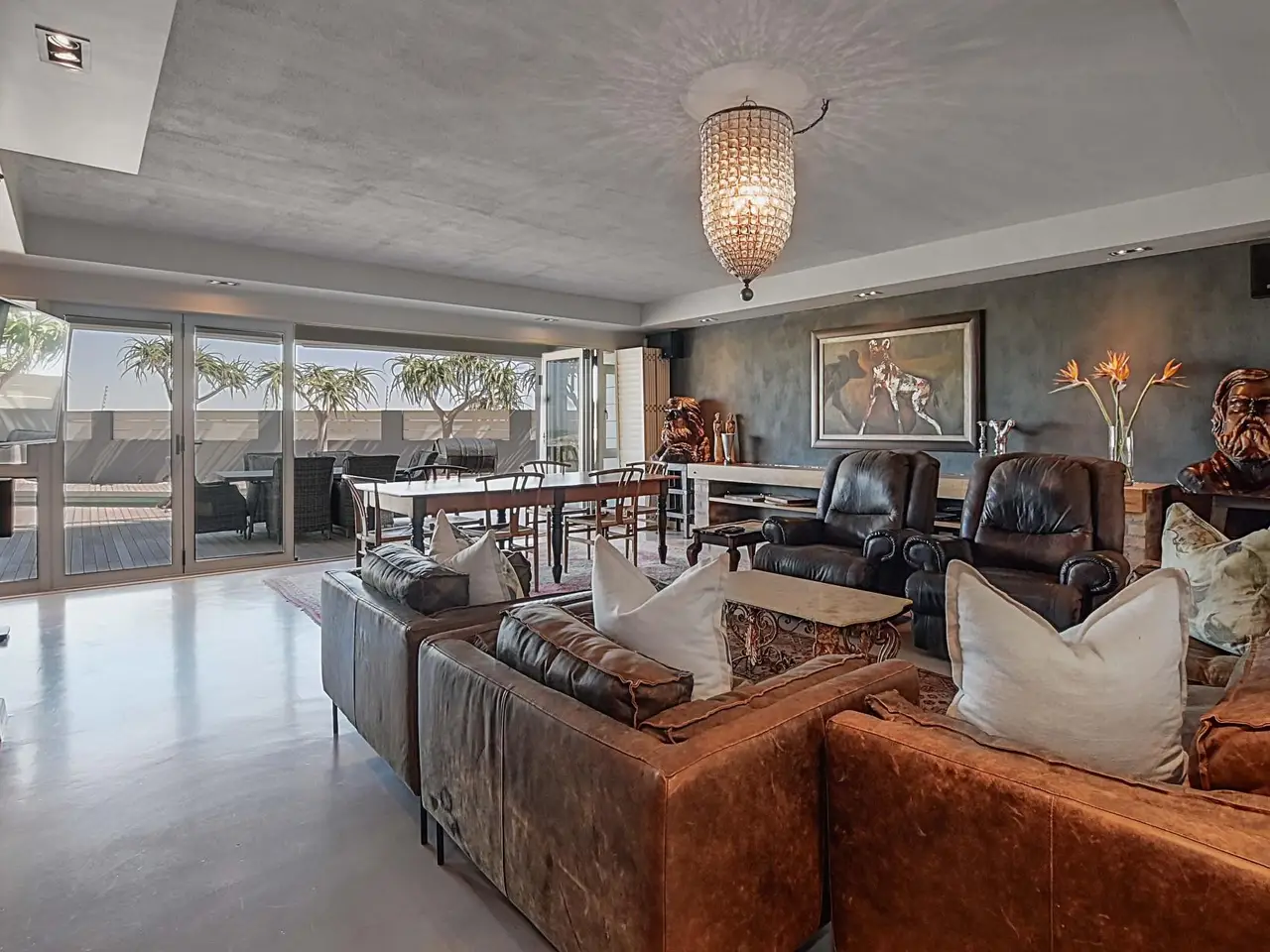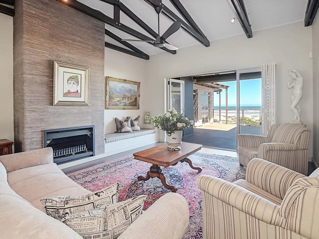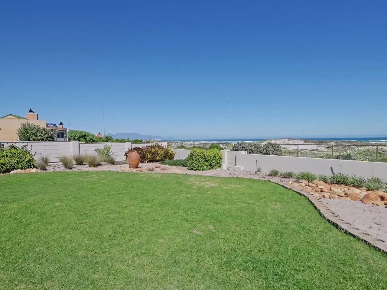A Coastal Masterpiece in Melkbos Positioned directly on the beachfront, this double-storey villa captures uninterrupted views of the Atlantic Ocean with Table Mountain as its backdrop. Nestled in an exclusive cul-de-sac, it offers both privacy and prestige in one of Melkbosstrand's most sought-after locations. Sophisticated Living Floor-to-ceiling glass defines the architecture, seamlessly drawing the ocean and mountain into the home from every angle. Natural light floods the open-plan interiors, while expansive lounges and a formal dining area flow effortlessly into an indoor braai. Whether entertaining or relaxing, every moment is framed by sweeping views. Private Accommodation Six en-suite bedrooms provide comfort and seclusion. On the ground floor, two generous suites open directly to the garden, ideal for guests or multi-generational living. Upstairs, the master suite captivates with panoramic views and a must-see walk-in closet, while the remaining bedrooms share a stylish lounge and large balcony overlooking the ocean. Outdoor Elegance Stacking glass doors dissolve the boundary between indoors and out, opening onto a landscaped garden, sparkling pool, and an expansive Balau deck set directly against the beach. Here, uninterrupted sunsets and the rhythm of the waves define a lifestyle of year-round coastal living. Key Features Six en-suite bedrooms Pool with Balau deck directly against the beach Double garage plus secure additional parking Indoor braai Gourmet kitchen with walk-in pantry, scullery, and utility areas Well-point water system & three-phase power Exclusive beachfront position in a private cul-de-sac This residence is more than a home - it is one of Melkbosstrand's most exceptional beachfront properties, a true signature of prestige and a legacy to be treasured for generations.