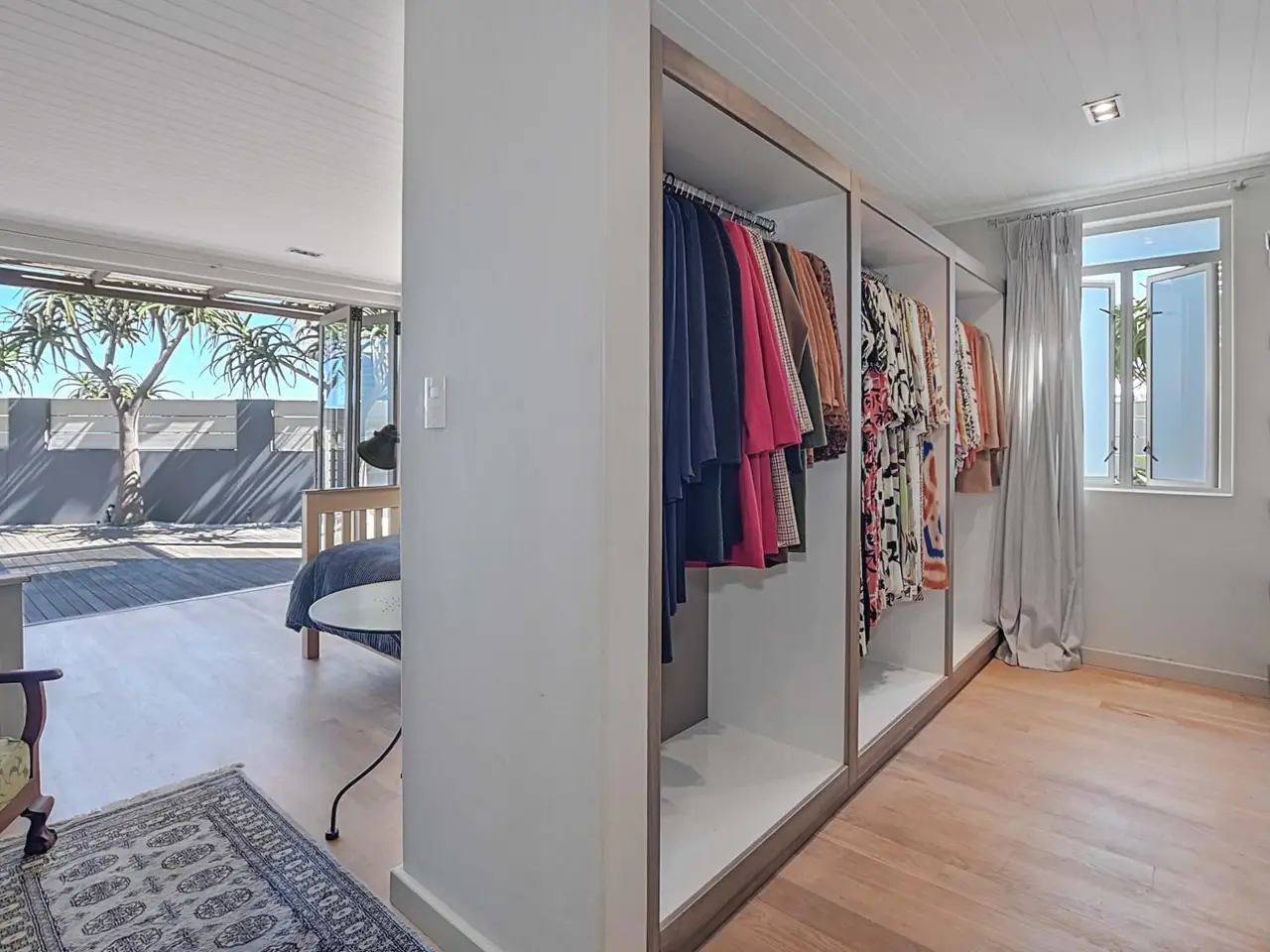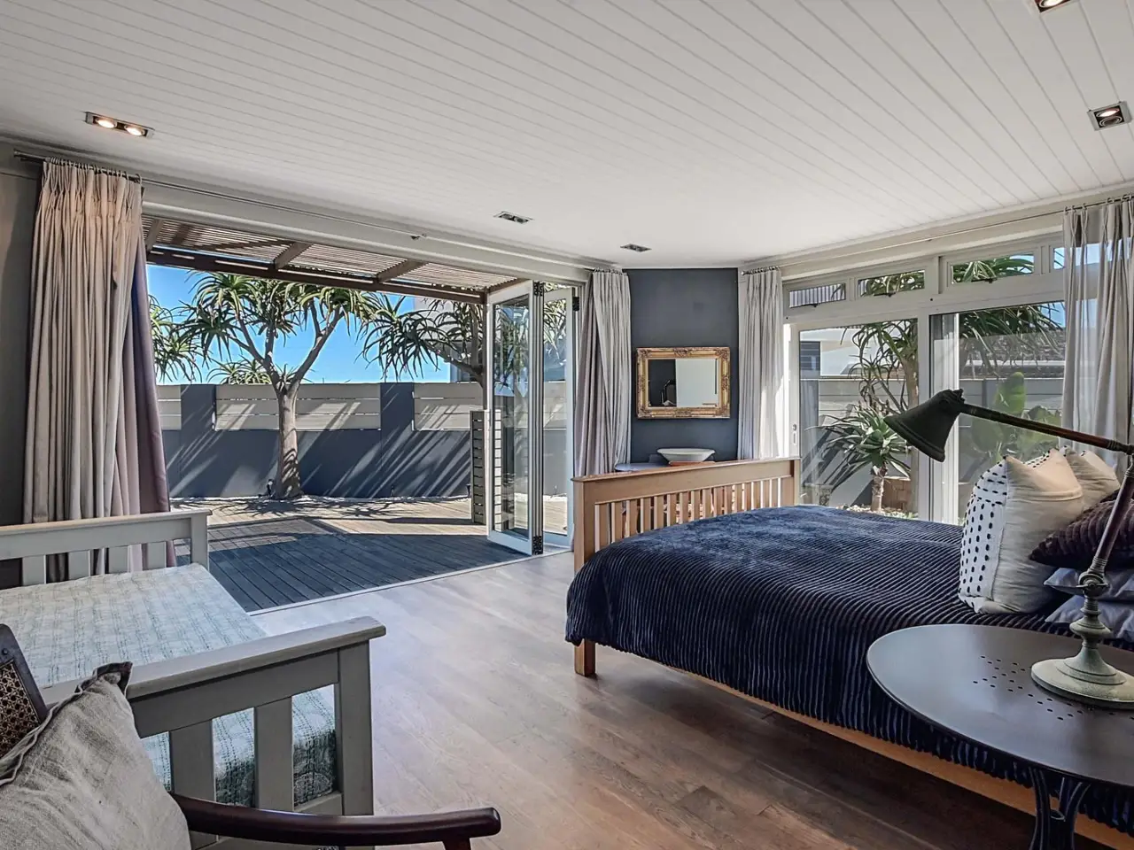 Expansive Balau deck directly against the beach