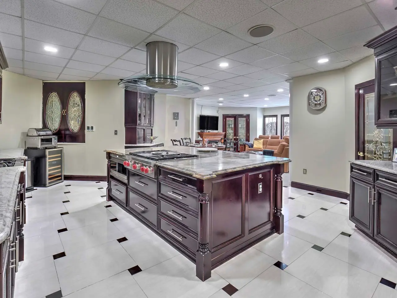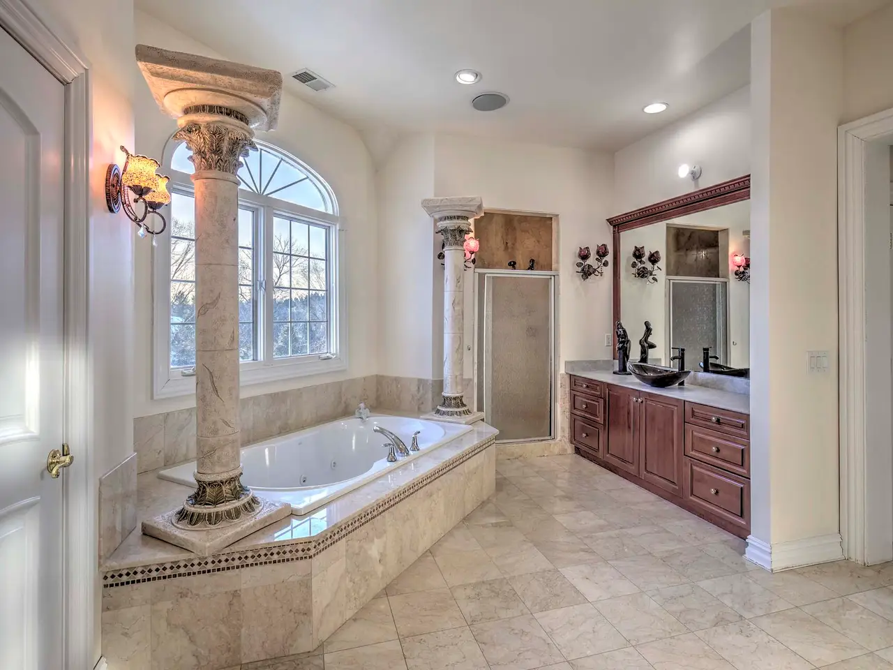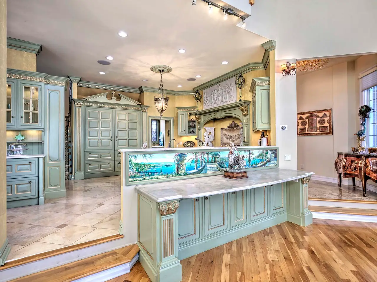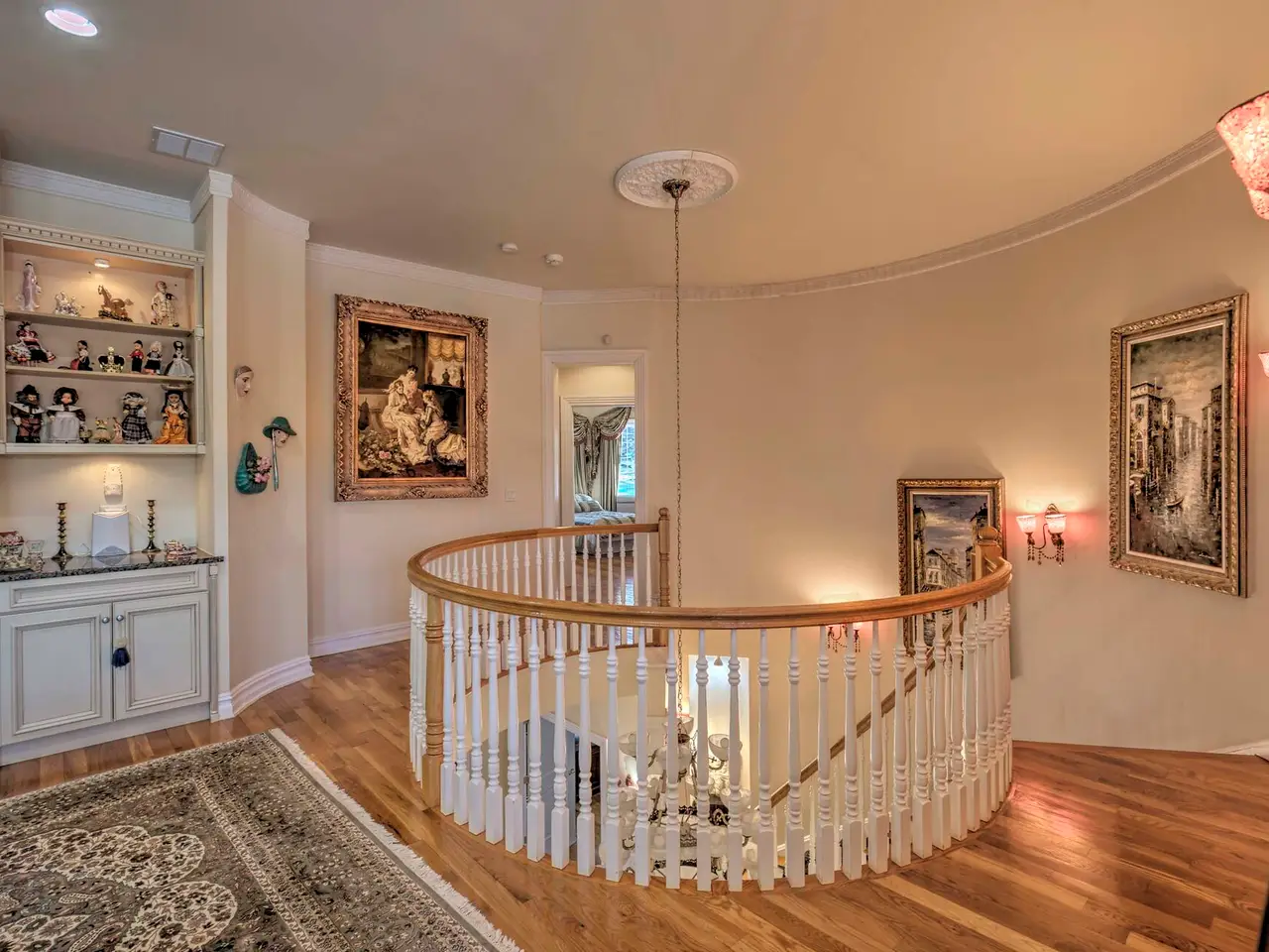 A grandly-designed architectural masterpiece offered by the original owners is surrounded by nearly 17 acres of natural beauty in Mendham Borough. This magical estate home offers a sophisticated 23-room floor plan filled with custom design elements such as artisanal millwork, hand painted murals, four gas fireplaces edged by distinctive mantles, flooring of honed marble and hardwood, stately columns, towering ceilings and an elevator serving all three levels. Stone-accented gates unfold to a long, tree-lined drive revealing this impressive mansion. The graceful layout provides seven bedrooms, two kitchens designed by Clive Christian, seven full baths, two powder rooms, an impeccably finished daylight lower level and an attached four-car garage with EV charging port. European design influences are seen in the stone and stucco exterior, porte-cochere side entry, turreted façade and slate roof of this epic 2005-built estate. Towering window walls and glass doors capture views of colorful gardens, stone patios, a lily pond with waterfall, vine-wrapped shade pergola, open lawns and a paver block front parking court centered by a bubbling water fountain. Situated on a private cul de sac, the scenic location provides ultimate tranquility. Introducing the home is a dramatic two-story foyer which adjoins several main gathering areas. A columned living room, fireside dining room, two-story great room and bright, airy conservatory are ideal for entertaining. In the Clive Christian kitchen, custom cabinetry, upper-end appliances, a center island, windowed dining area and adjacent butler's pantry are notable features. Upstairs, a sun-splashed loft area is perfect for relaxing and taking in the countryside vistas. A magnificent primary suite is arranged with a generous bedroom set under an elevated tray ceiling, a sitting room with a fireplace, dressing room and enormous spa-like bath containing a columned soaking tub, two oversized vanities and a separate shower. Additional bedrooms and baths on this level easily accommodate guests and family members. Graciously appointed rooms on the walkout lower level include an extra-large Clive Christian center island kitchen characterized by the designer's signature detailing, a banquet-sized dining room, entertaining area with a media space, ornately carved wood bar area and billiards space. Glass doors open to a stone patio overlooking bucolic property views. Located in Morris County's charming Mendham Borough, this custom estate is convenient to local shops, restaurants, highly-rated public and private schools, highways and Midtown Direct train service in neighboring Morristown.