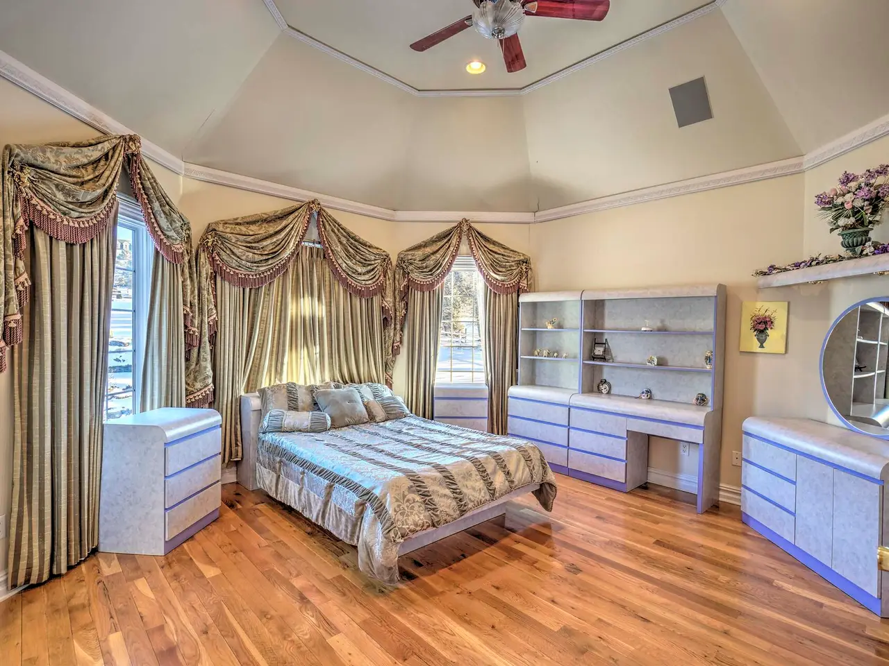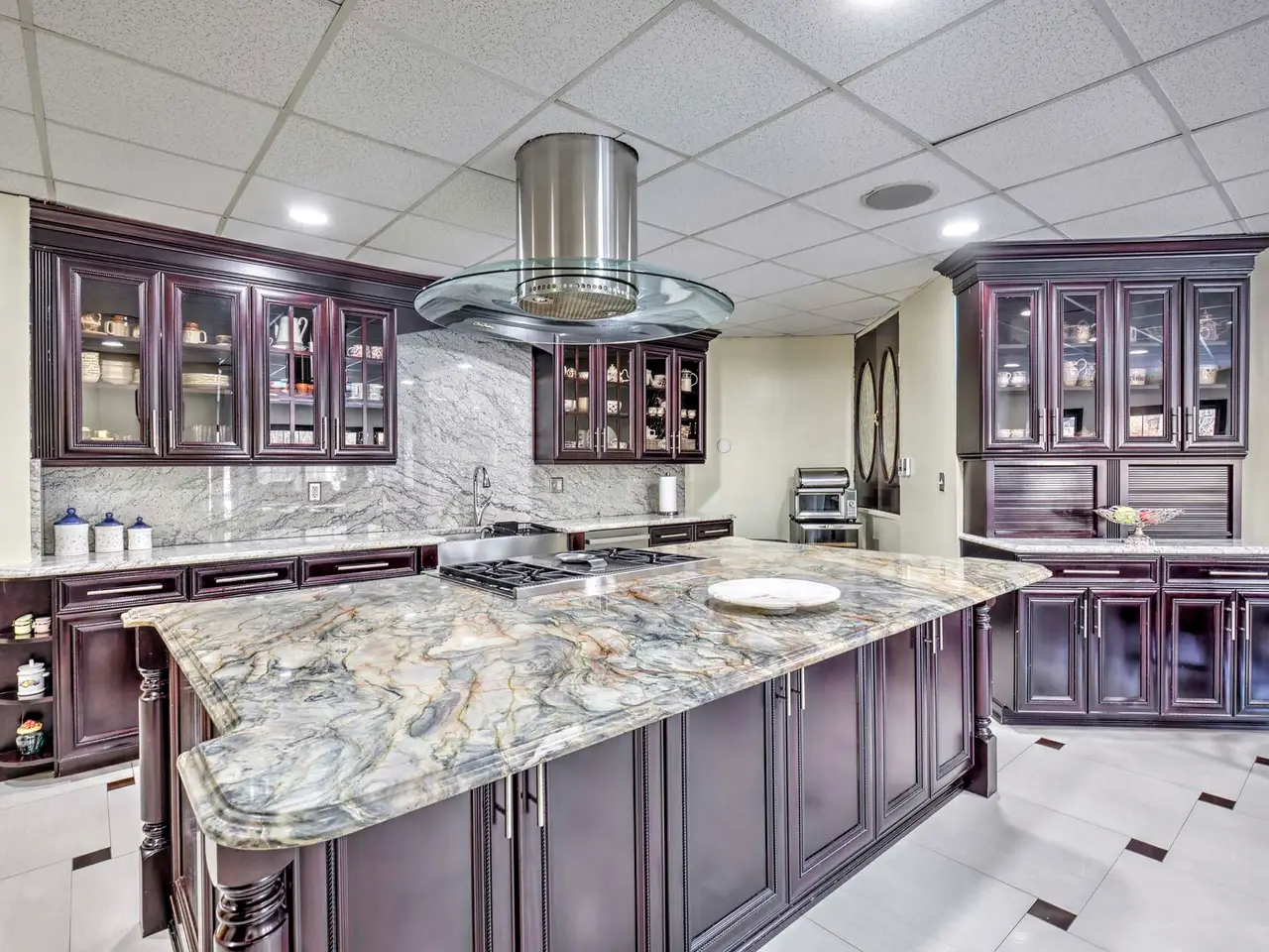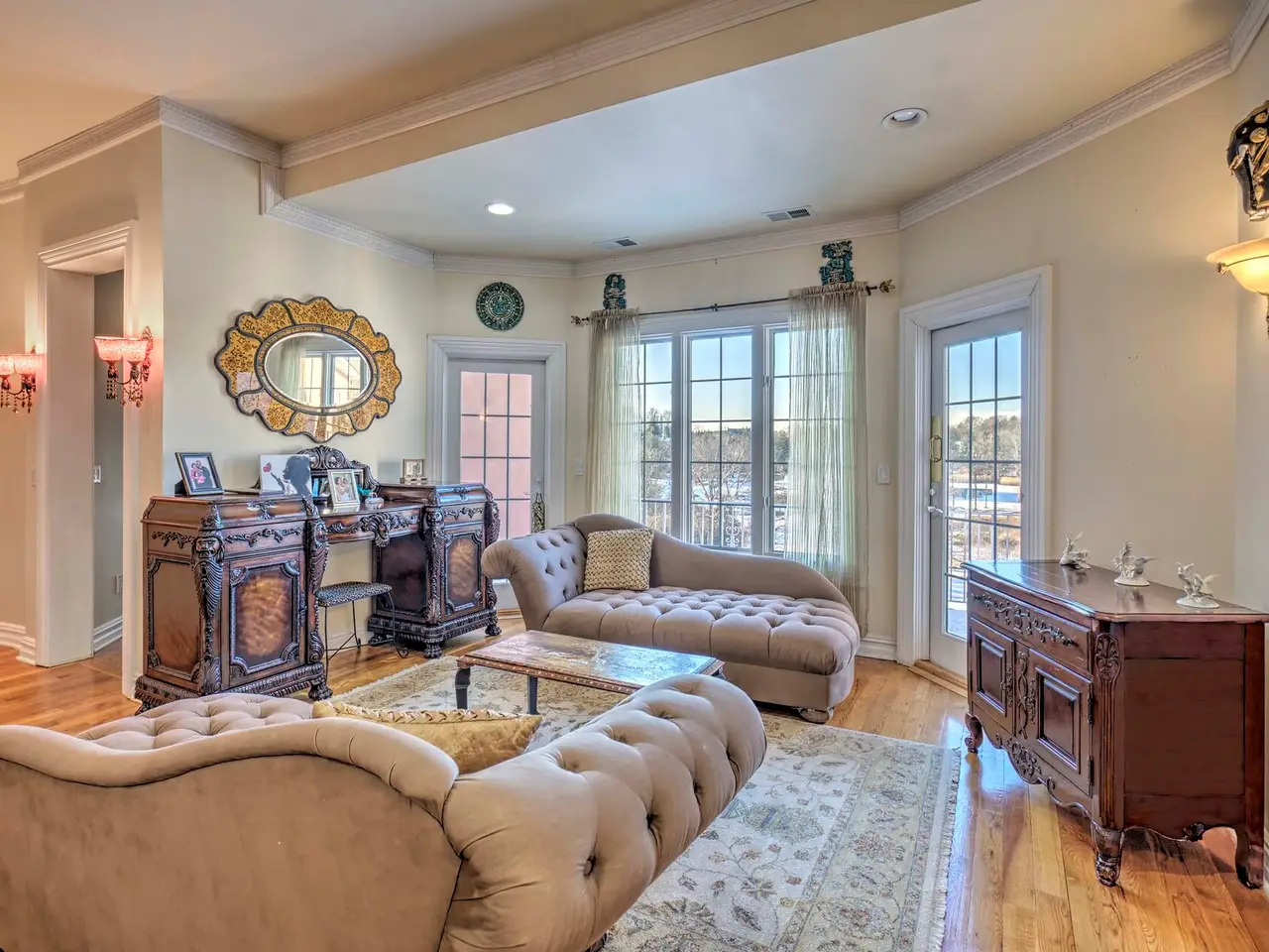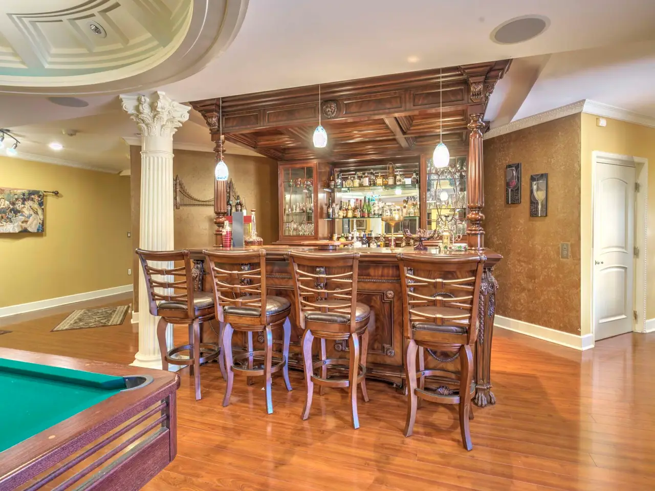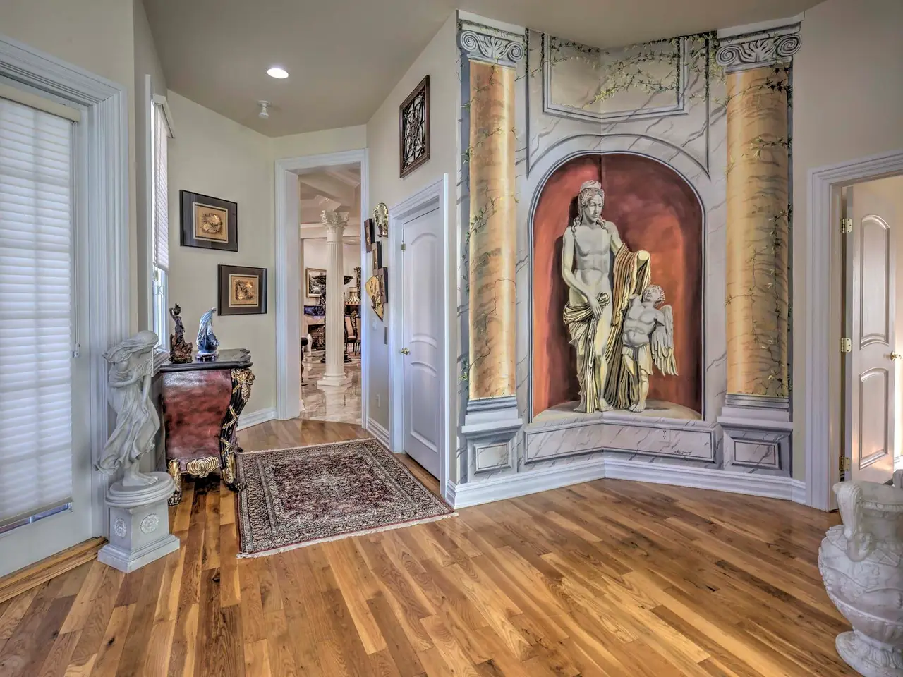 A grandly-designed architectural masterpiece offered by the original owners is surrounded by nearly 17 acres of natural beauty in Mendham Borough. This magical estate home offers a sophisticated 23-room floor plan filled with custom design elements such as artisanal millwork, hand painted murals, four gas fireplaces edged by distinctive mantles, flooring of honed marble and hardwood, stately columns, towering ceilings and an elevator serving all three levels. Stone-accented gates unfold to a long, tree-lined drive revealing this impressive mansion. The graceful layout provides seven bedrooms, two kitchens designed by Clive Christian, seven full baths, two powder rooms, an impeccably finished daylight lower level and an attached four-car garage with EV charging port. European design influences are seen in the stone and stucco exterior, porte-cochere side entry, turreted façade and slate roof of this epic 2005-built estate. Towering window walls and glass doors capture views of colorful gardens, stone patios, a lily pond with waterfall, vine-wrapped shade pergola, open lawns and a paver block front parking court centered by a bubbling water fountain. Situated on a private cul de sac, the scenic location provides ultimate tranquility. Introducing the home is a dramatic two-story foyer which adjoins several main gathering areas. A columned living room, fireside dining room, two-story great room and bright, airy conservatory are ideal for entertaining. In the Clive Christian kitchen, custom cabinetry, upper-end appliances, a center island, windowed dining area and adjacent butler's pantry are notable features. Upstairs, a sun-splashed loft area is perfect for relaxing and taking in the countryside vistas. A magnificent primary suite is arranged with a generous bedroom set under an elevated tray ceiling, a sitting room with a fireplace, dressing room and enormous spa-like bath containing a columned soaking tub, two oversized vanities and a separate shower. Additional bedrooms and baths on this level easily accommodate guests and family members. Graciously appointed rooms on the walkout lower level include an extra-large Clive Christian center island kitchen characterized by the designer's signature detailing, a banquet-sized dining room, entertaining area with a media space, ornately carved wood bar area and billiards space. Glass doors open to a stone patio overlooking bucolic property views. Located in Morris County's charming Mendham Borough, this custom estate is convenient to local shops, restaurants, highly-rated public and private schools, highways and Midtown Direct train service in neighboring Morristown.