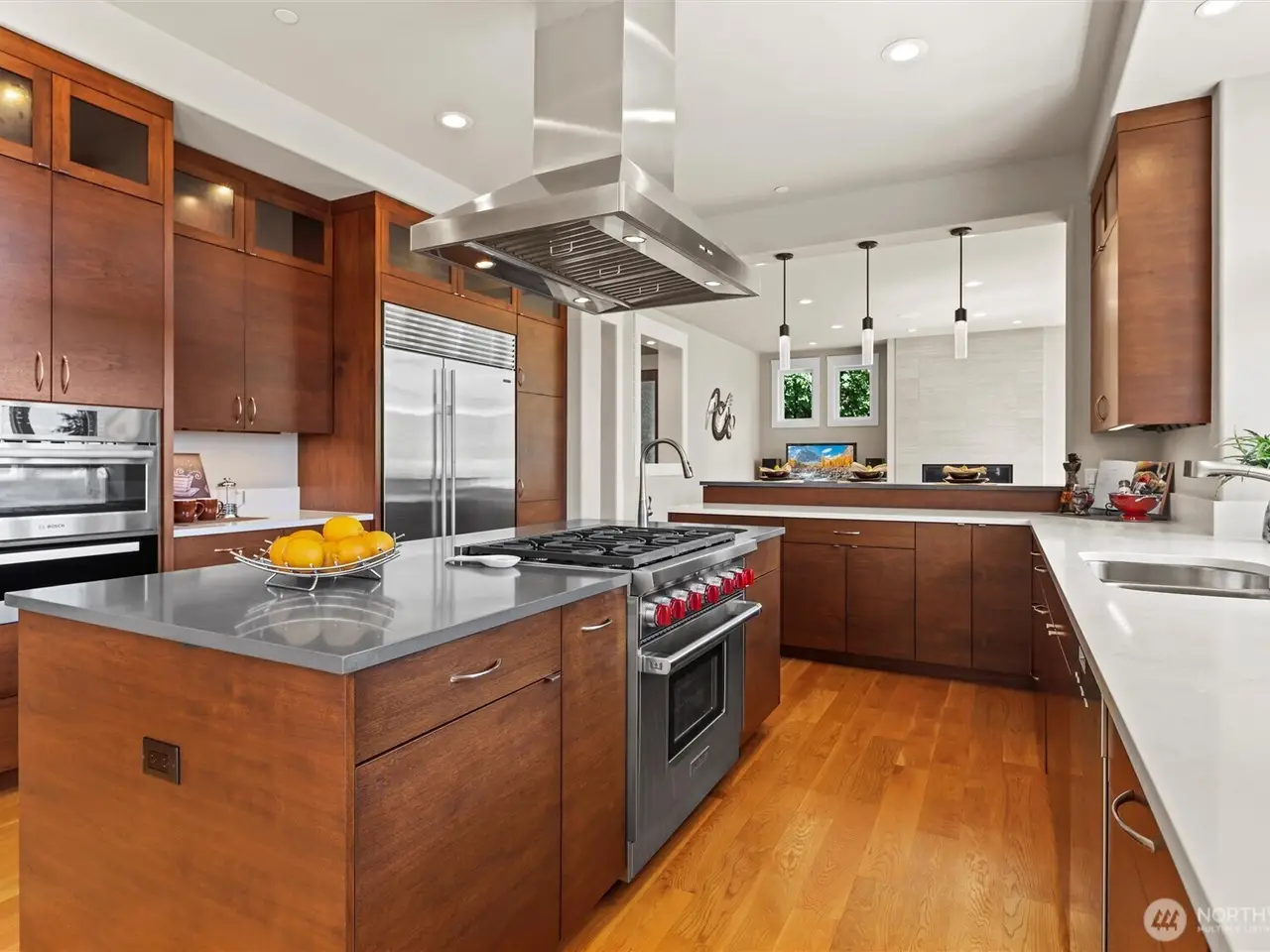 • Chef's island kitchen with high-end appliances