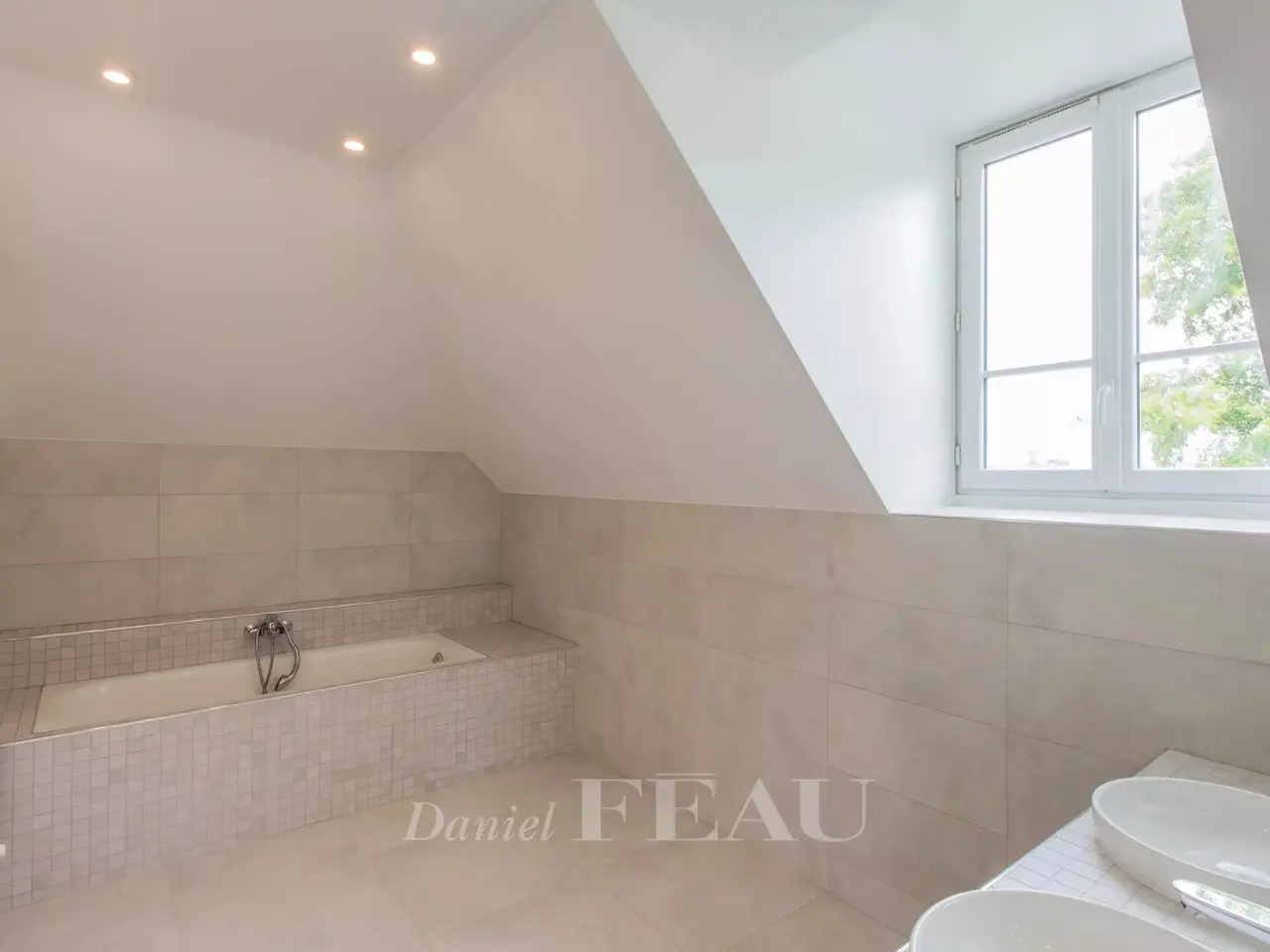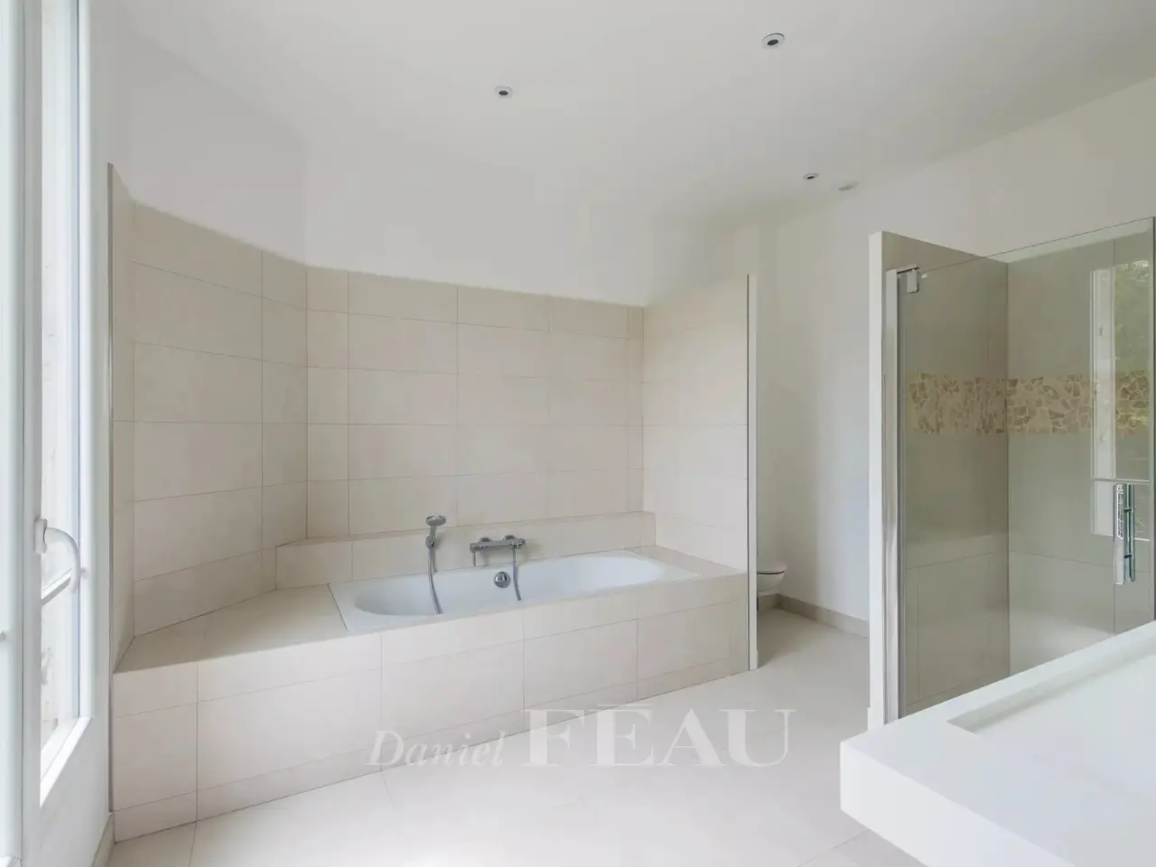 This elegant millstone-built property in a leafy environment near the station offers 366 sqm of floor space and about 260 sqm of living space. Set in a 969 sqm plot, it includes a double living/reception room with a conservatory opening onto the garden, a fitted kitchen, and a study. Upstairs are two bedrooms with bathrooms and dressing rooms. The top floor comprises a bedroom with a shower room, two further bedrooms and a bathroom. Three further bedrooms, a shower room, a storage room, a utility room and a boiler room are on the entresol. With a two-car garage and two outdoor parking spaces.