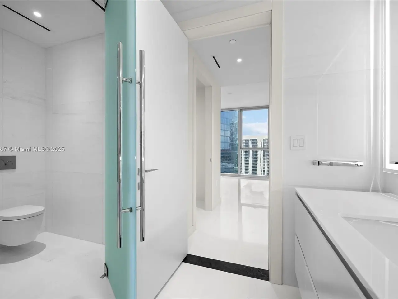 Welcome to an exquisite sanctuary on the 24th floor of the prestigious Aston Martin Residences. This one-of-a-kind 2-bedroom, 2.5-bathroom residence with a den embodies sophistication and elegance, featuring pristine white Thassos marble floors and a gourmet kitchen with custom Bulthaup cabinetry and premium Gaggenau appliances. Revel in breathtaking panoramic views of the city and bay, seamlessly blending indoor-outdoor living. Residents enjoy over 40,000 sq. ft. of unparalleled amenities, including a luxurious spa, cutting-edge gym, infinity pool, and private lounges. Nestled in the heart of Miami, you're steps away from the finest dining, shopping, and nightlife. Discover the pinnacle of luxury in this architectural masterpiece, offering a lifestyle tailored to the discerning.