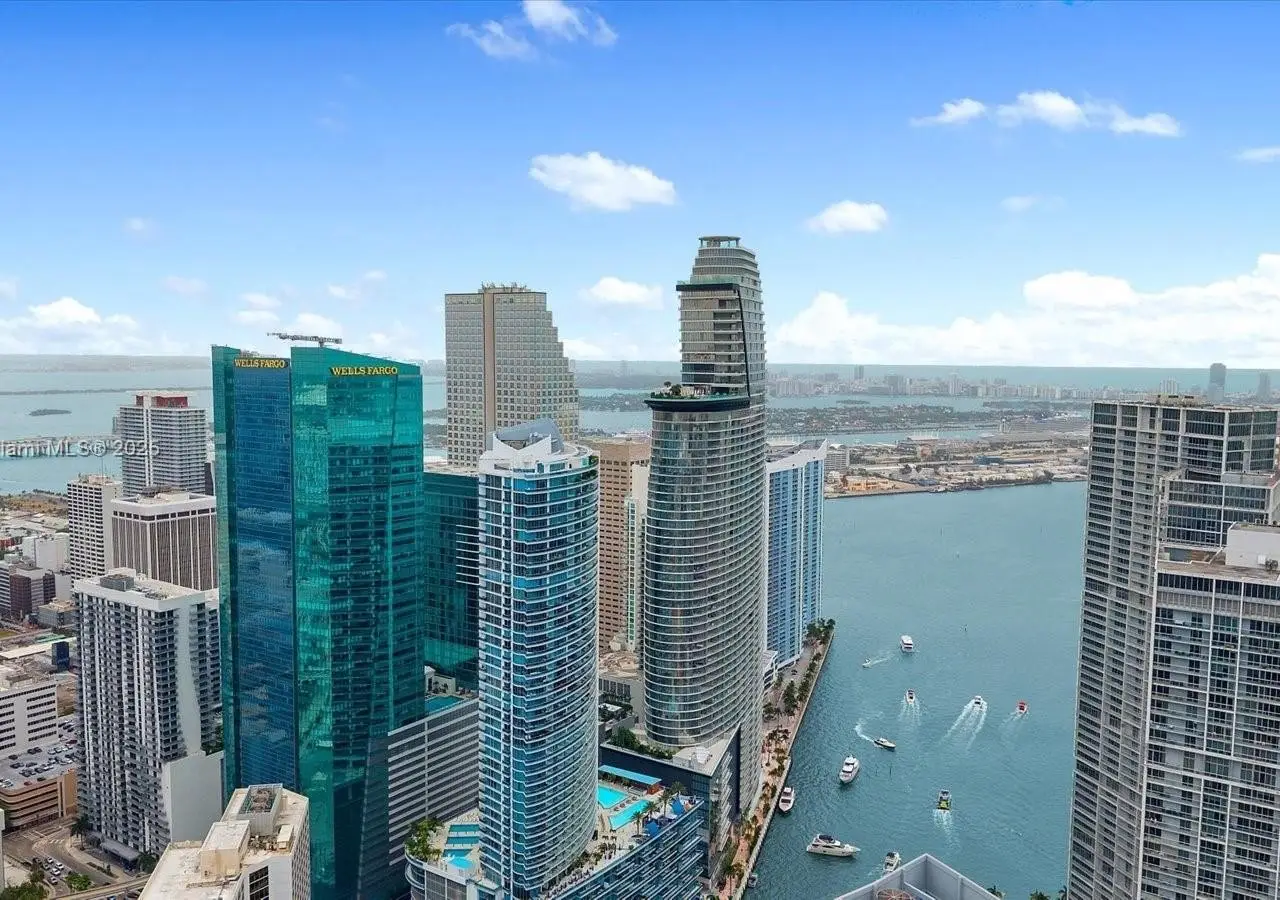 Aston Martin Residences Miami is a luxury residential tower located at 300 Biscayne Boulevard Way. Developed by G and G Business Developments, this 65-story skyscraper features 391 high-end condominiums with designs inspired by the iconic Aston Martin brand. Residences offer expansive layouts, floor-to-ceiling windows, and top-tier finishes. Amenities include a private marina, a state-of-the-art 2 floor wellness center, a sky deck with a pool, and more. The buildings sleek, modern design and prime waterfront location make it a prestigious address in Miami's vibrant downtown area.