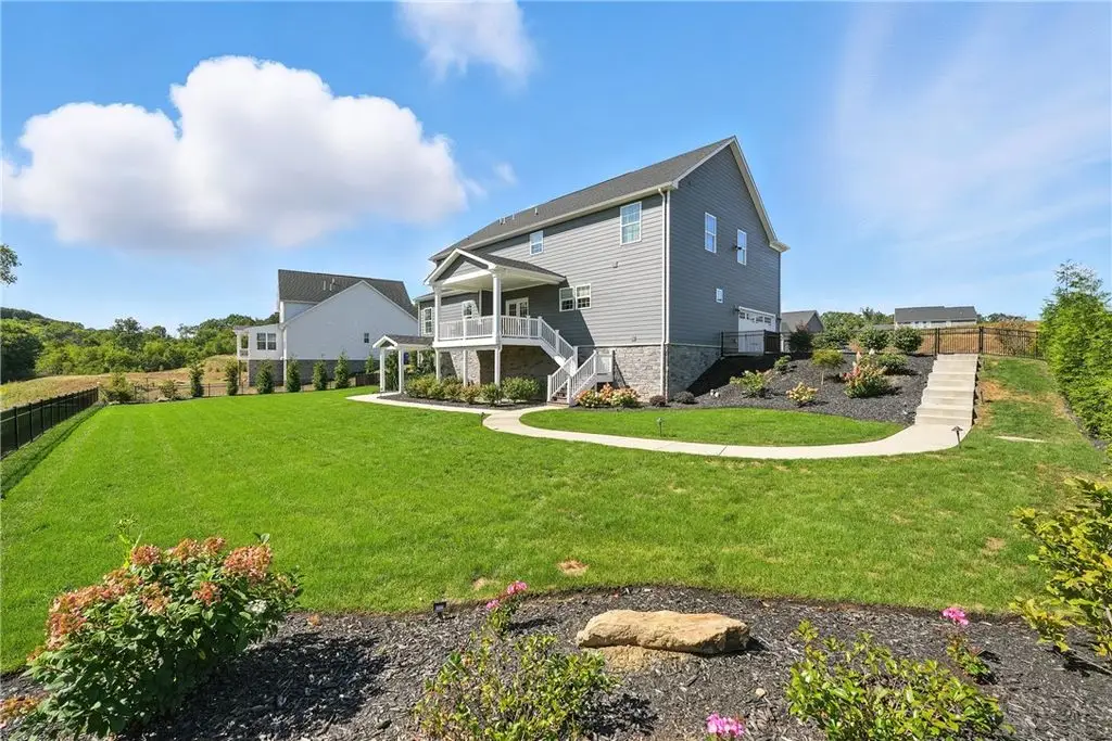 Better than new, this exquisite home sits on OVER ONE FENCED IN ACRE in the Mars Area School District! This home has so many upgrades and will wow you from the moment you step into the two story foyer! You'll love the covered front porch and the professionally landscaped yard which includes an IRRIGATION SYSTEM! Look at how green the huge private yard is! The large, fully upgraded kitchen is the heart of the home and has a huge island with seating and WALK IN PANTRY! Kitchen leads to your covered back porch overlooking your exceptional yard. You'll also find a spacious great room w fireplace, dining room, living room, and powder room on the main. Upstairs find 4 spacious bedrooms, laundry, and 2 full baths. Additional bath possible! The master is a dream w a sitting area, 2 walk in closets, and stunning en suite. You'll love that you have a loft/possible 5th bed on the 2nd level! Finished walk out game room w full bathroom! Located near all of the new shops, low taxes! Cement driveway!