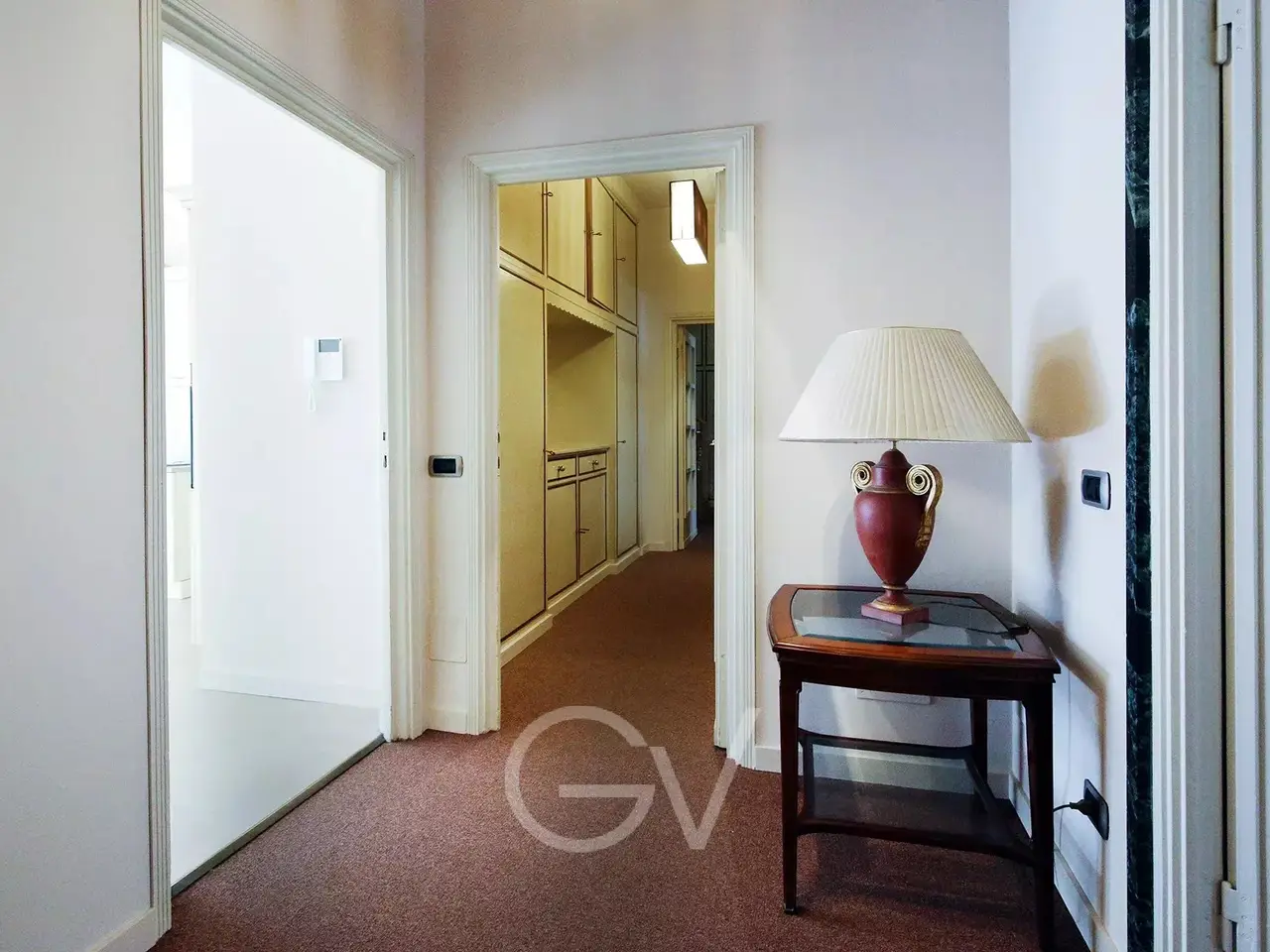 gv1364 - Via Visconti di Modrone - Timeless elegance in the heart of Milan. An elegant 166sqm dwelling in great state of maintenance develops itself on the second floor of a period 1960’s / 1970’s building with a pleasant condominium garden. The apartment, characterized by a double overlook and an harmonious distribution of the spaces, opens onto a large anteroom with a vestière for the coats, from which take shape a central hallway equipped with comfortable built-in wardrobes that disengages all the spaces. The double living room, bright and charming, is embellished with parquet floors and represents the heart of the dwelling. On the other side, the service area is composed of a spacious habitable kitchen with a balcony overlooking the internal courtyard with a service entrance, a small laundry room, an ironing room/wardrobe and a bathroom complete with shower. The well separated night area welcomes two large bedrooms, one of which with a balcony and a windowed bathroom with tub. The apartment, completely whitewashed, has double glazings, a newly overhauled air conditioning system in four rooms and can be sold partially furnished with design furnitures and fine period furnishing of the late nineteenth century with a separate negotiation. To complete a large cellar. The building has all day concierge service, double lifts to the floor and centralized heating. The location is particularly convenient thanks to the presence of four car silos and two supermarkets. The neighbourhood is exclusive and perfectly linked: a few steps from San Babila Square, from the gardens of Porta Venezia and the subway MM1. The recent opening of the new subway MM4 – San Babila stop – allows a rapid link to Linate Airport. The ATM surface lines 94, 85 and 61 pass right under the house, ensuring widespread mobility throughout the city. Class: Ape F – 191,45. € 1.600.000 - € 8.000,00 annual condo expenses. The choice of this property contributes to support the mission of Theodora onlus. Photos, texts, floor plans, etc., are purely for illustrative purposes and do not constitute documents with contractual value and presupposition. Giorgio Viganò Real Estate - 027636151 - www.giorgiovigano.com
