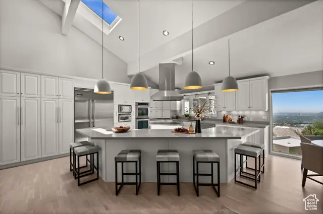 Perched against the Wasatch Mountains and tucked beneath iconic Mount Olympus, this residence offers a unique blend of mountain calm and expansive city views. Upgraded, modernized, and meticulously maintained by its current owners, this 5 bedroom, 5 bathroom home invites you to experience comfortable living with well-designed details throughout. Outside, the home is elegantly understated. Inside, vaulted ceilings, expanses of natural light, and a striking grand room and staircase provide a sense of openness and flow, creating the perfect place to entertain or enjoy a quiet night in. One of the home's standout features is a 27-foot frameless glass wall that captures uninterrupted vistas of downtown, Salt Lake City and the valley below. Other features include a spacious 4-car attached garage, four fireplaces, a private yard, plenty of storage space, and many energy-efficient upgrades throughout. Living here is like being held in the arms of the Wasatch-bathed in breathtaking scenery, while keeping every city convenience just minutes away. Located mere moments from freeway access, the new Salt Lake International Airport, downtown Salt Lake City, Park City, and 6 world-class ski resorts, this is mountain living without compromise. Discover a life that's at once grounded in nature and elevated in every sense.
