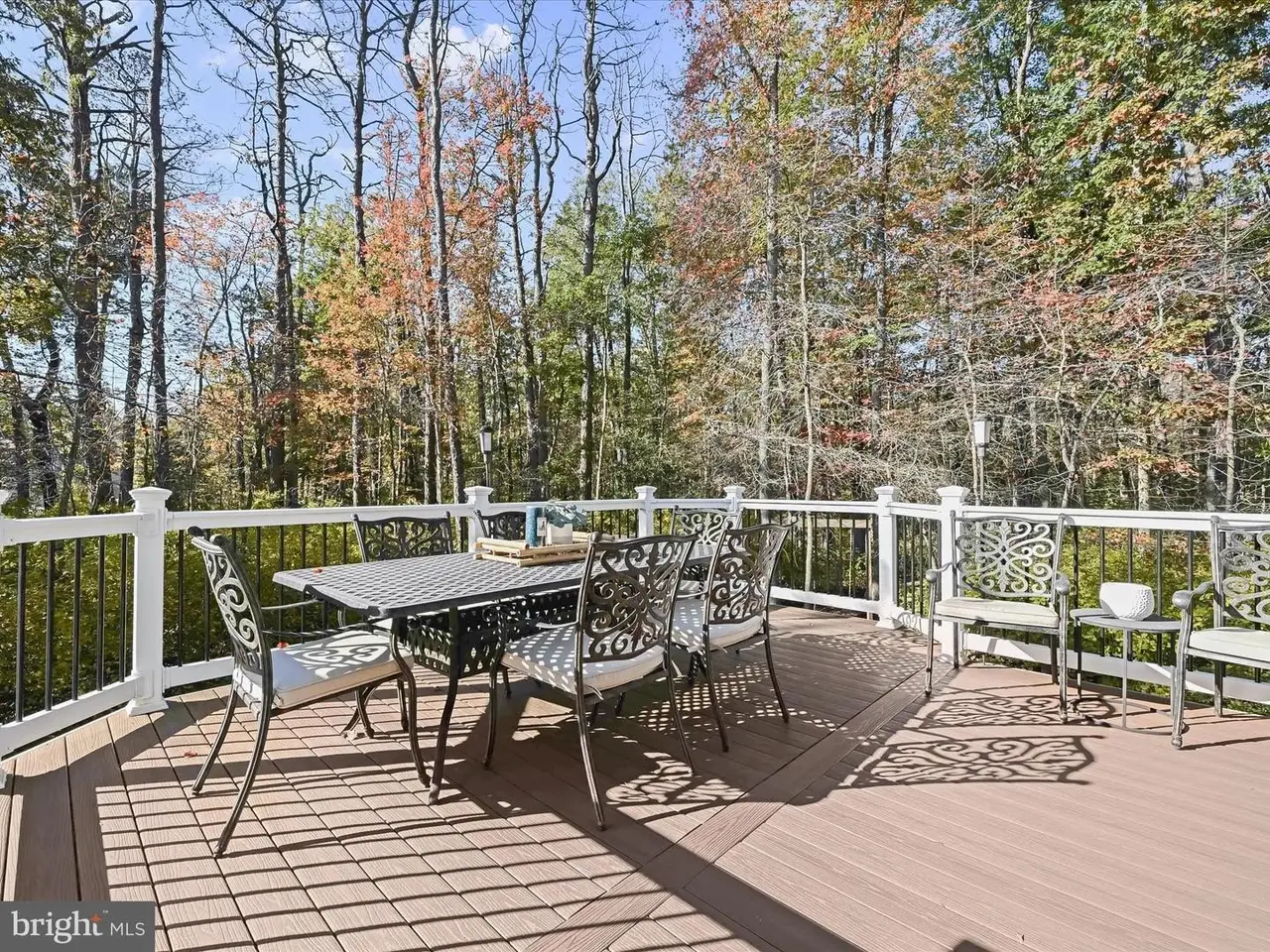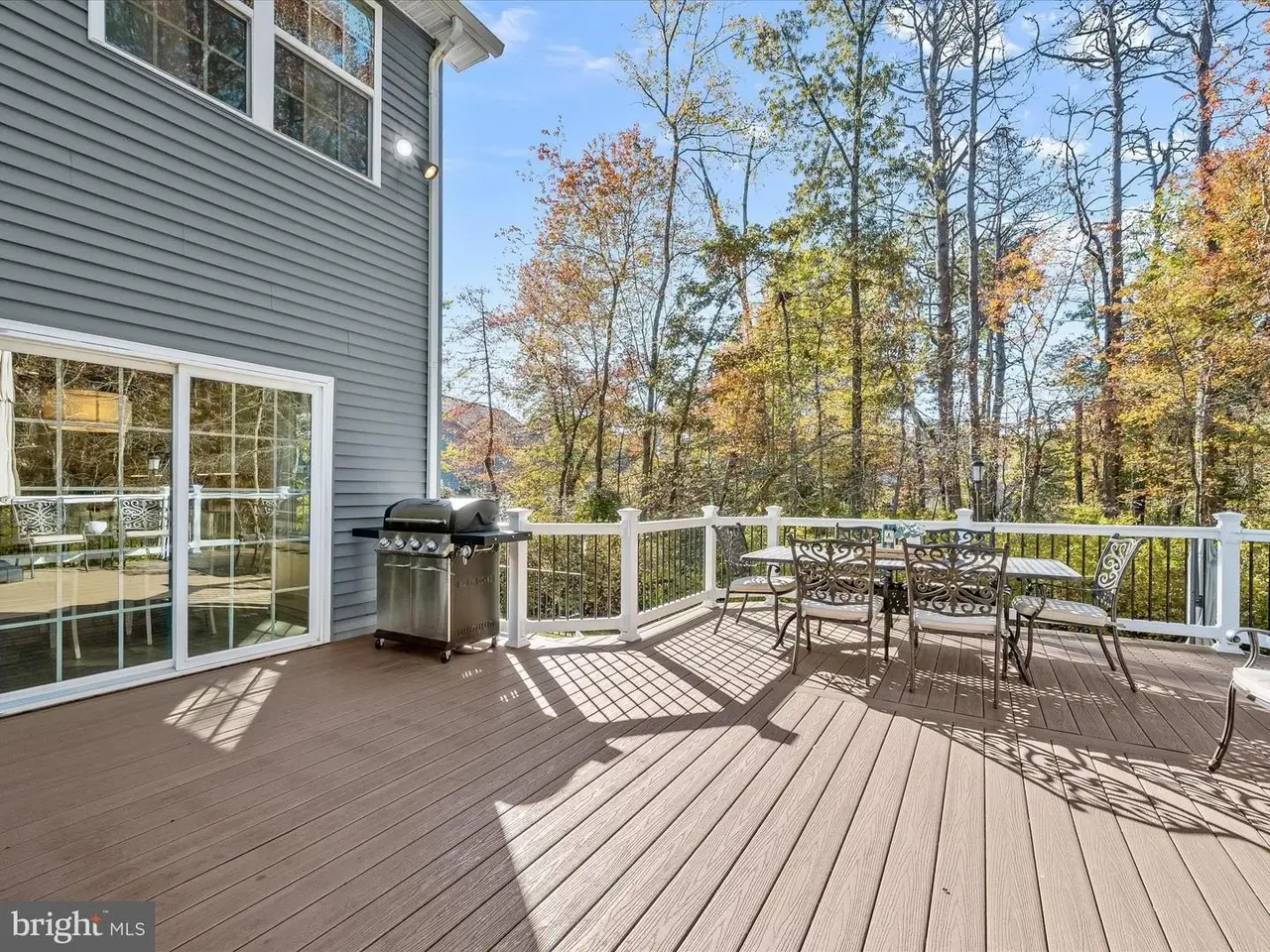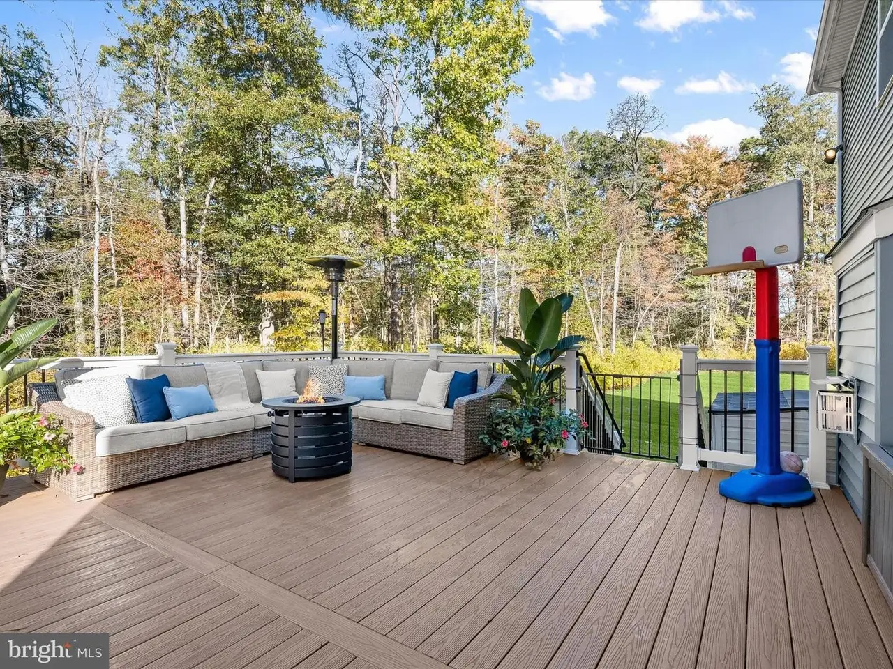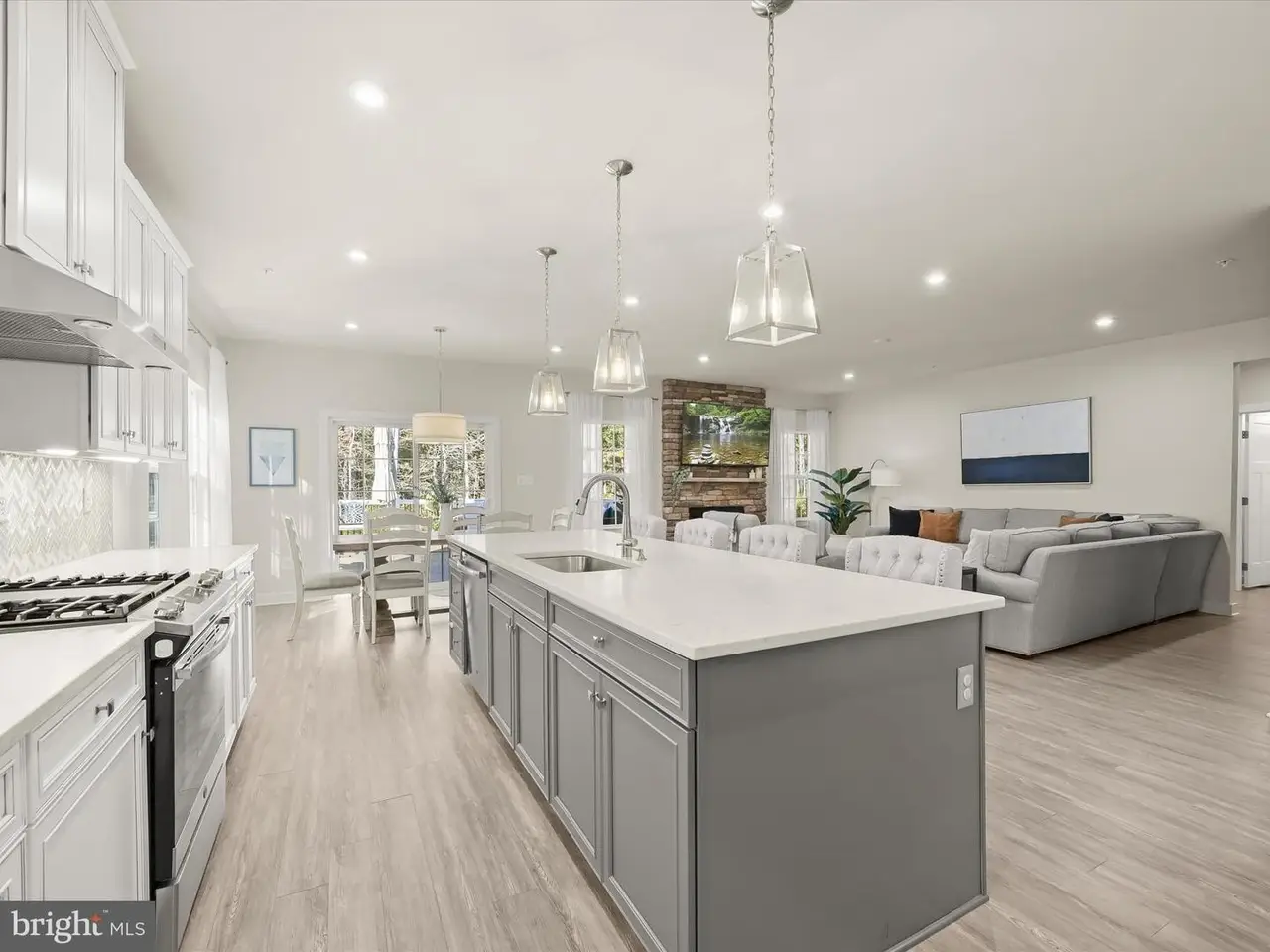 Introducing this exceptional six bedroom, four-and-a-half-bathroom home offering three finished levels of thoughtfully designed living space. Perfectly tucked away on a quiet cul-de-sac in the sought-after Solomons Choice neighborhood, the home backs to lush woods for a peaceful and private setting. A covered front porch extends a warm welcome as you arrive. Step inside the foyer to find a serene neutral color palette, tall ceilings, recessed lighting, and beautiful floors that create an inviting atmosphere. Off the foyer, French doors open to a bright front office that is ideal for working from home or a private study. The open-concept main living areas provide a seamless flow for modern everyday life. The well-appointed kitchen impresses with quartz countertops, a stylish herringbone tile backsplash, 42-inch soft-close cabinets with under-cabinet lighting, a large center island with seating, and a walk-in pantry. Stainless steel appliances include a five-burner gas range and a second wall oven, perfect for entertaining. Sliding glass doors in the dining area lead to a spacious rear deck overlooking the woods, while a floor-to-ceiling stacked stone gas fireplace anchors the living room with warmth and style. A versatile den adds a flexible space for a second office, playroom, or potential guest room. A half bathroom and mudroom area with access to the three-car garage finish the main level. Upstairs, a peaceful primary suite showcases a tray ceiling with crown molding, wooded views, and two walk-in closets. The ensuite bathroom feels like a retreat with a frameless walk-in shower featuring dual shower heads, a dual-sink vanity, and a separate water closet. Down the hall, a second bedroom suite has its own private bathroom. Completing the upper level are three additional bedrooms, a third shared bathroom, and a convenient laundry room. Downstairs, the fully finished lower level expands the living space with a large family room and walk-out stairs to the backyard. A sixth bedroom and fourth full bathroom with a walk-in shower offer privacy for guests, while a spacious utility room provides extra storage or the perfect setup for a home gym or hobby space. Outside, enjoy the tranquil wooded backdrop from the expansive deck that is an ideal spot for entertaining, relaxing, or simply soaking in the serenity of nature.
