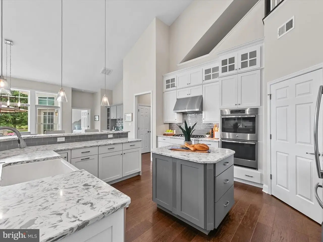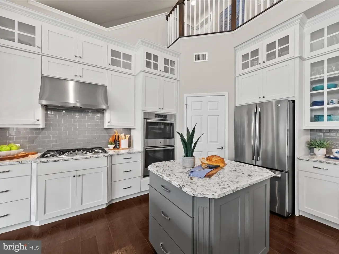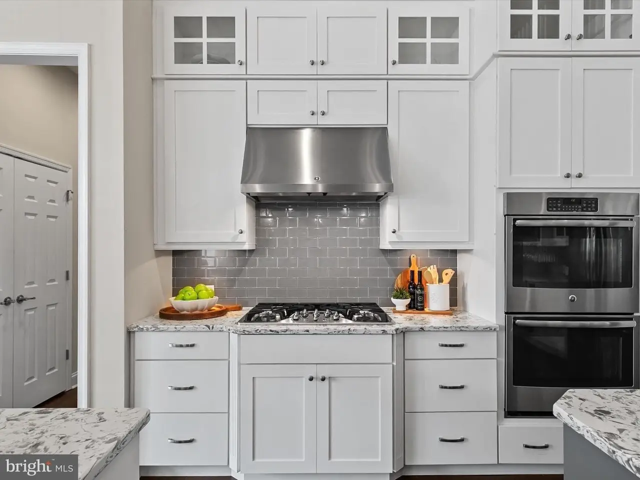 • Gourmet kitchen with Quartz countertops and custom cabinetry