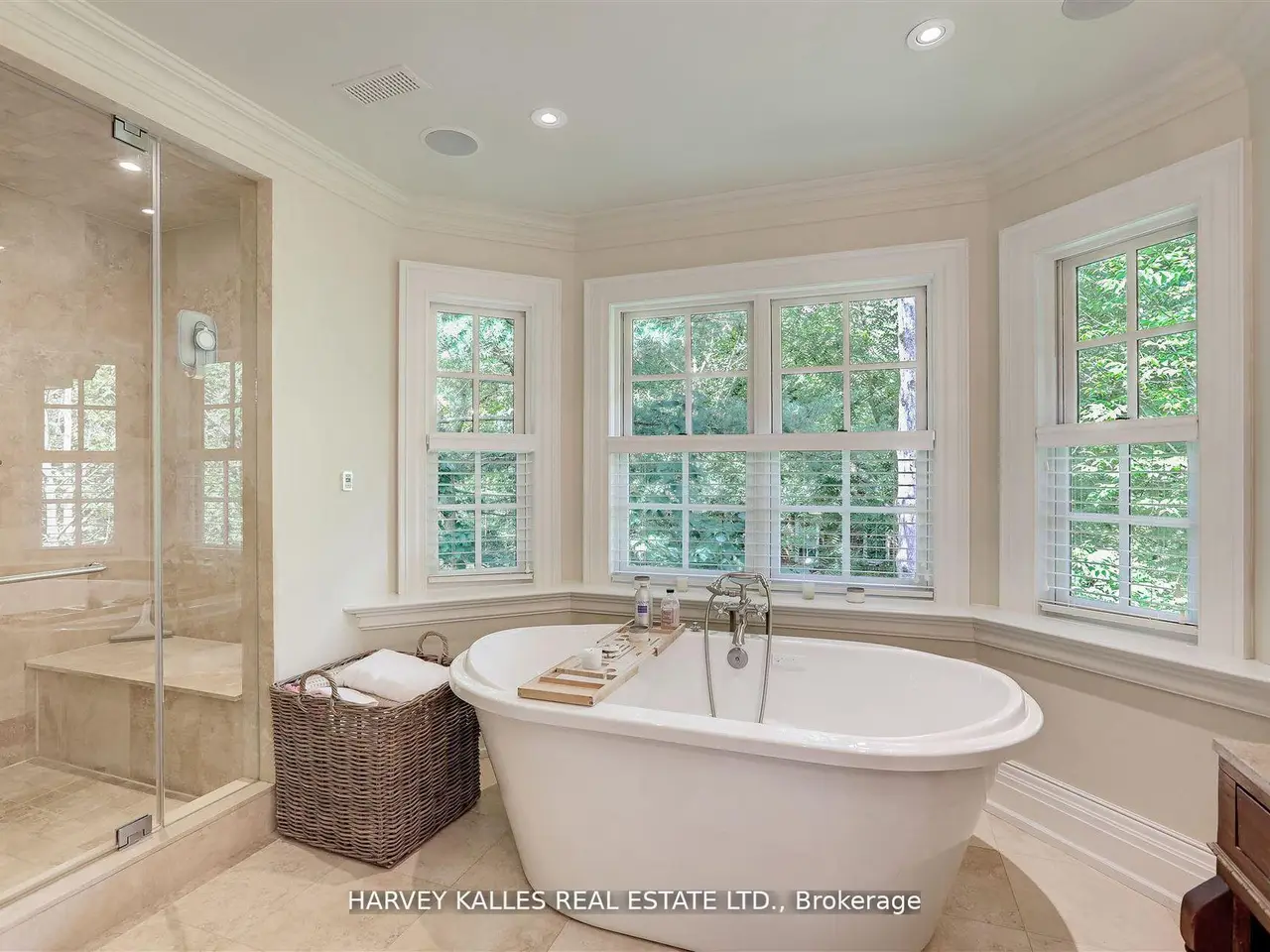 Magnificent Custom-Built Estate in Coveted Lorne Park. Experience luxury living at its finest in this masterfully crafted custom home, nestled in the heart of prestigious Lorne Park. Boasting over 6,500 sq ft of exquisitely finished living space, this exceptional residence showcases impeccable workmanship, top-tier materials, and a design that blends elegance with everyday comfort. From the heated driveway, walkways, and garage to the warm touch of heated tile flooring throughout the interior, every detail has been thoughtfully designed. This grand home features 5 spacious bedrooms, each with its own ensuite or semi-ensuite bath, including a lavish primary retreat complete with a walk-in closet and a private dressing room. The gourmet chef's kitchen is a showstopper, offering a large center island, custom cabinetry, walk-in pantry, and an expansive eat-in area - perfect for hosting and family gatherings. The living room stuns with soaring vaulted ceilings and custom finishes, while multiple walkouts and patios invite you to enjoy the beautifully landscaped grounds year-round. The lower level is an entertainer's dream, featuring a great room, games area, private home theatre, full gym with heated floors, a sauna, and a walkout to a hot tub surrounded by lush greenery and serene greenspace. This home is a rare offering that combines style, comfort, and convenience - all in the heart of Mississauga's most desirable neighbourhood.