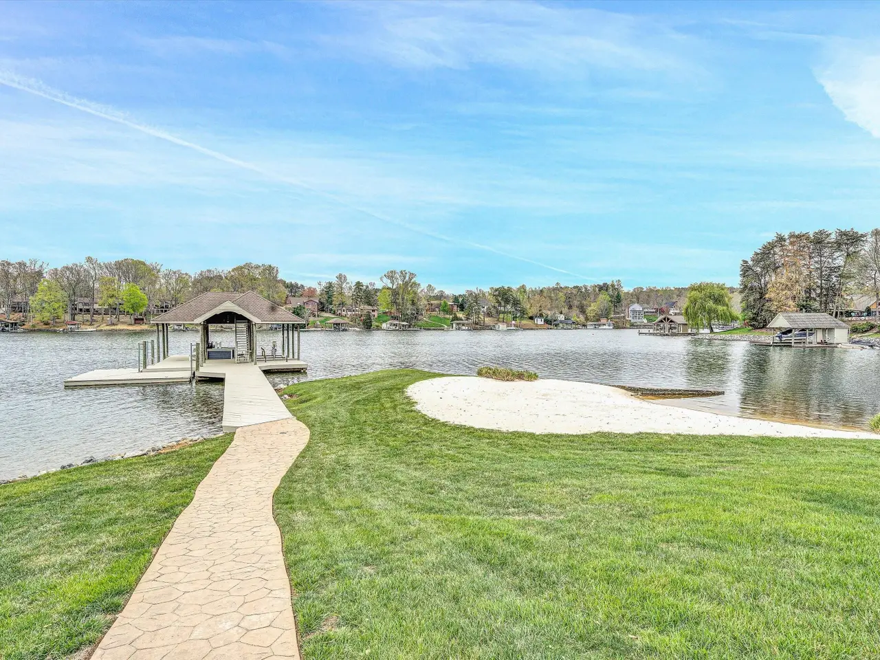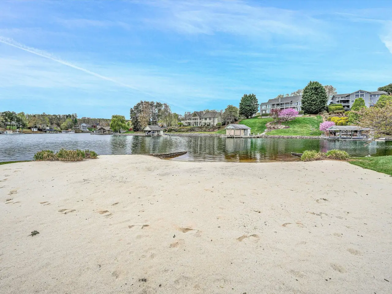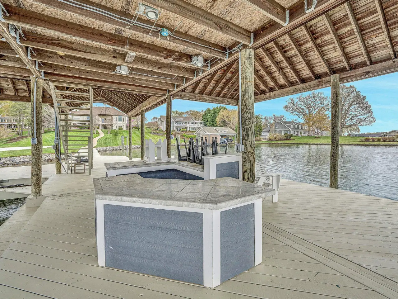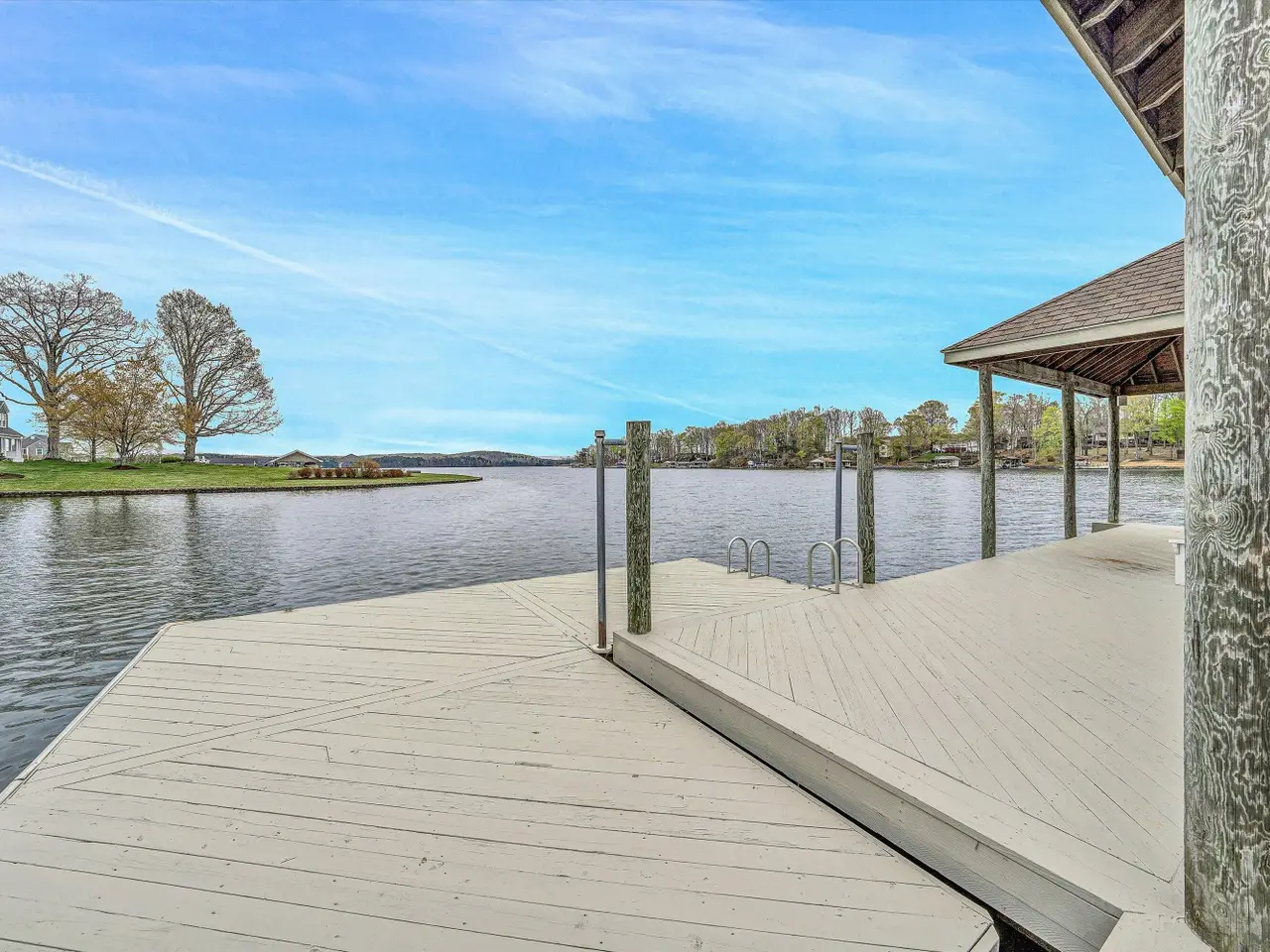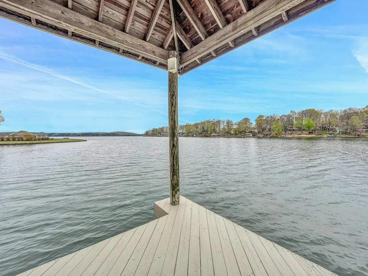 Stunning Lakefront Contemporary located on a Beautiful Southern Point, Large Oversized Boat dock with boat slip and jet ski lift, bar and Sandy beach, Enter this home into a wide open Great room, lots of glass and towering tray ceilings, Social Area with Stone Fireplace, Large Open Kitchen with Cherry Cabinets and Granite Countertops, Gas Cooktop, Open Dining Room with Tray Ceilings, Entry Level Primary Suite with dual sided gas fireplace, Spacious ensuite bath with whirlpool tub and tiled shower. Sundeck and Covered Porch, spiraling staircase with iron railing to lower level Family room with Bar, wine cooler, refrigerator and dishwasher and microwave Theater Rm with Cherry Cabinet, Game Rm with Pool Table, Community pool ,Koi Pond, New irrigation pump 2025