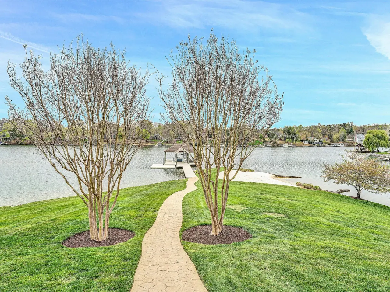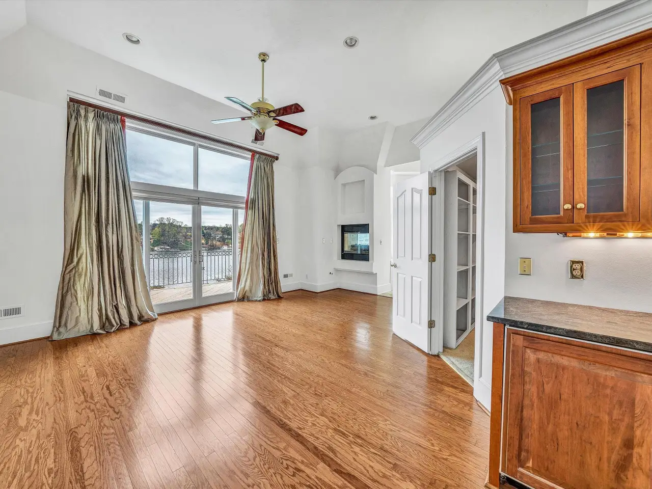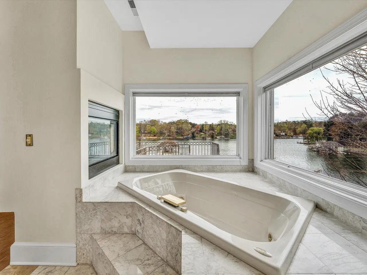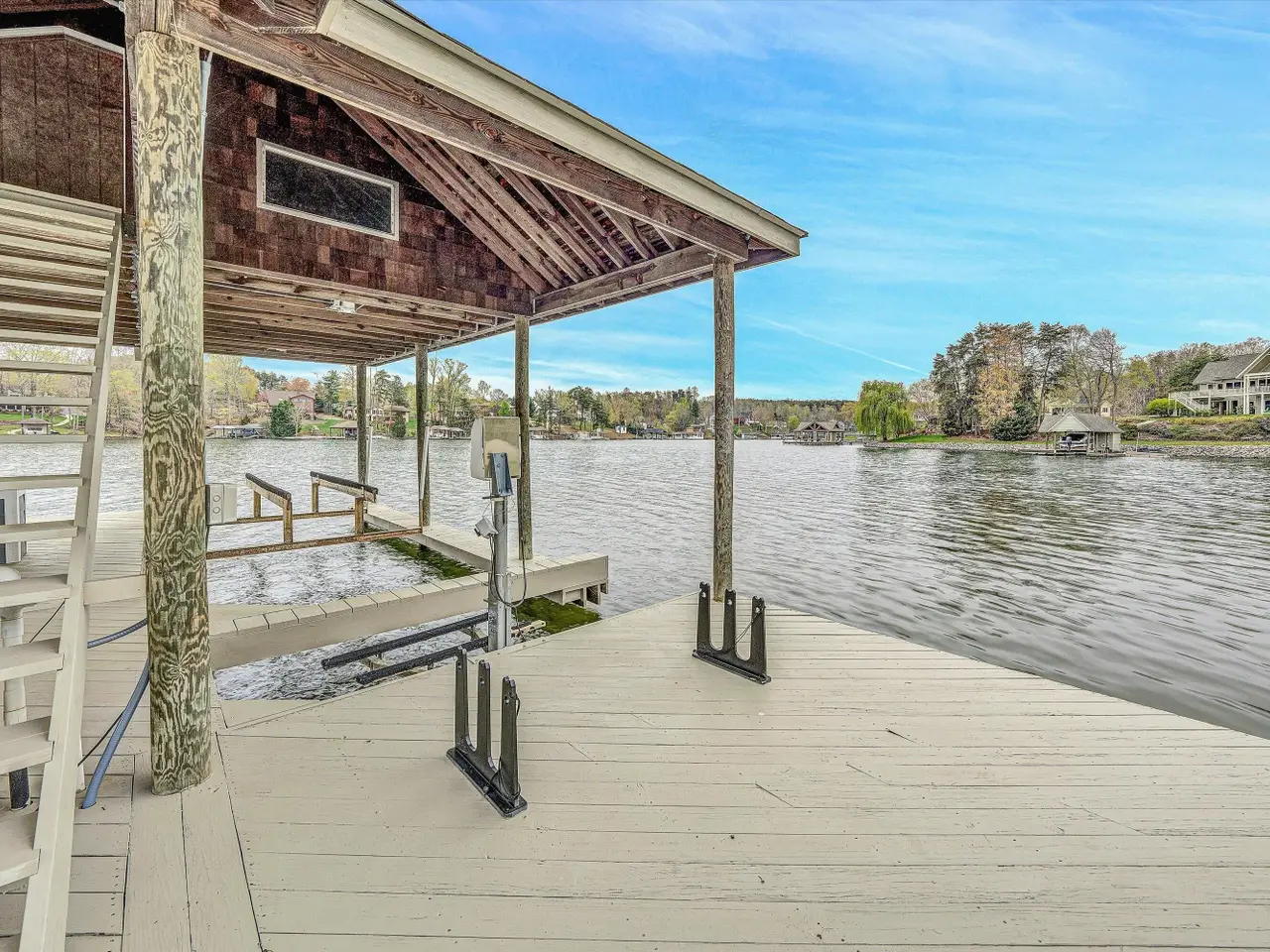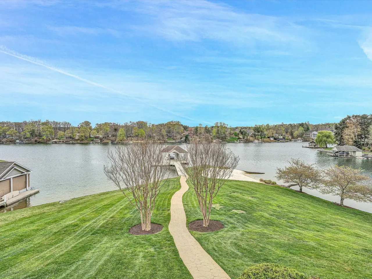 Stunning Lakefront Contemporary located on a Beautiful Southern Point, Large Oversized Boat dock with boat slip and jet ski lift, bar and Sandy beach, Enter this home into a wide open Great room, lots of glass and towering tray ceilings, Social Area with Stone Fireplace, Large Open Kitchen with Cherry Cabinets and Granite Countertops, Gas Cooktop, Open Dining Room with Tray Ceilings, Entry Level Primary Suite with dual sided gas fireplace, Spacious ensuite bath with whirlpool tub and tiled shower. Sundeck and Covered Porch, spiraling staircase with iron railing to lower level Family room with Bar, wine cooler, refrigerator and dishwasher and microwave Theater Rm with Cherry Cabinet, Game Rm with Pool Table, Community pool ,Koi Pond, New irrigation pump 2025