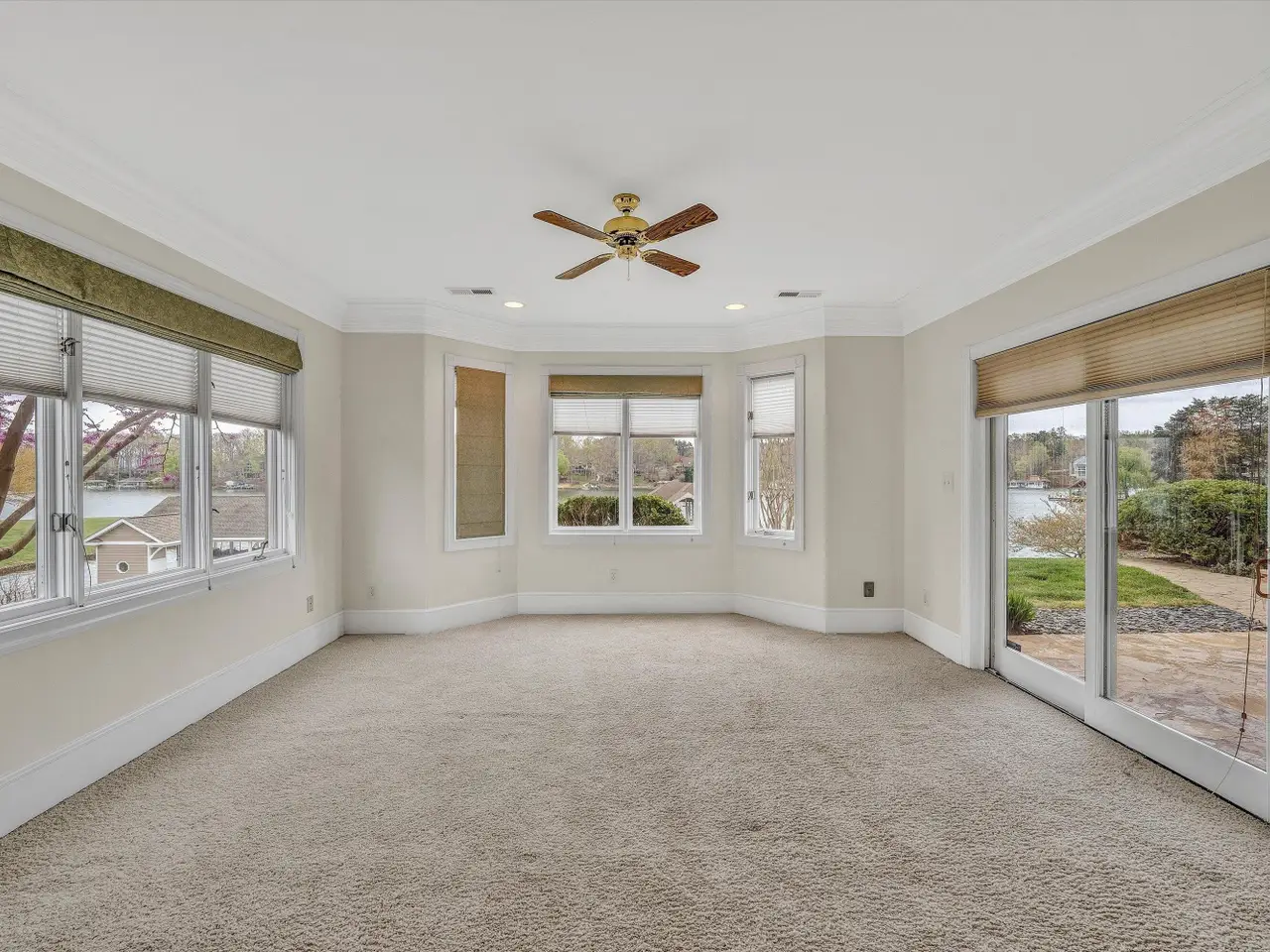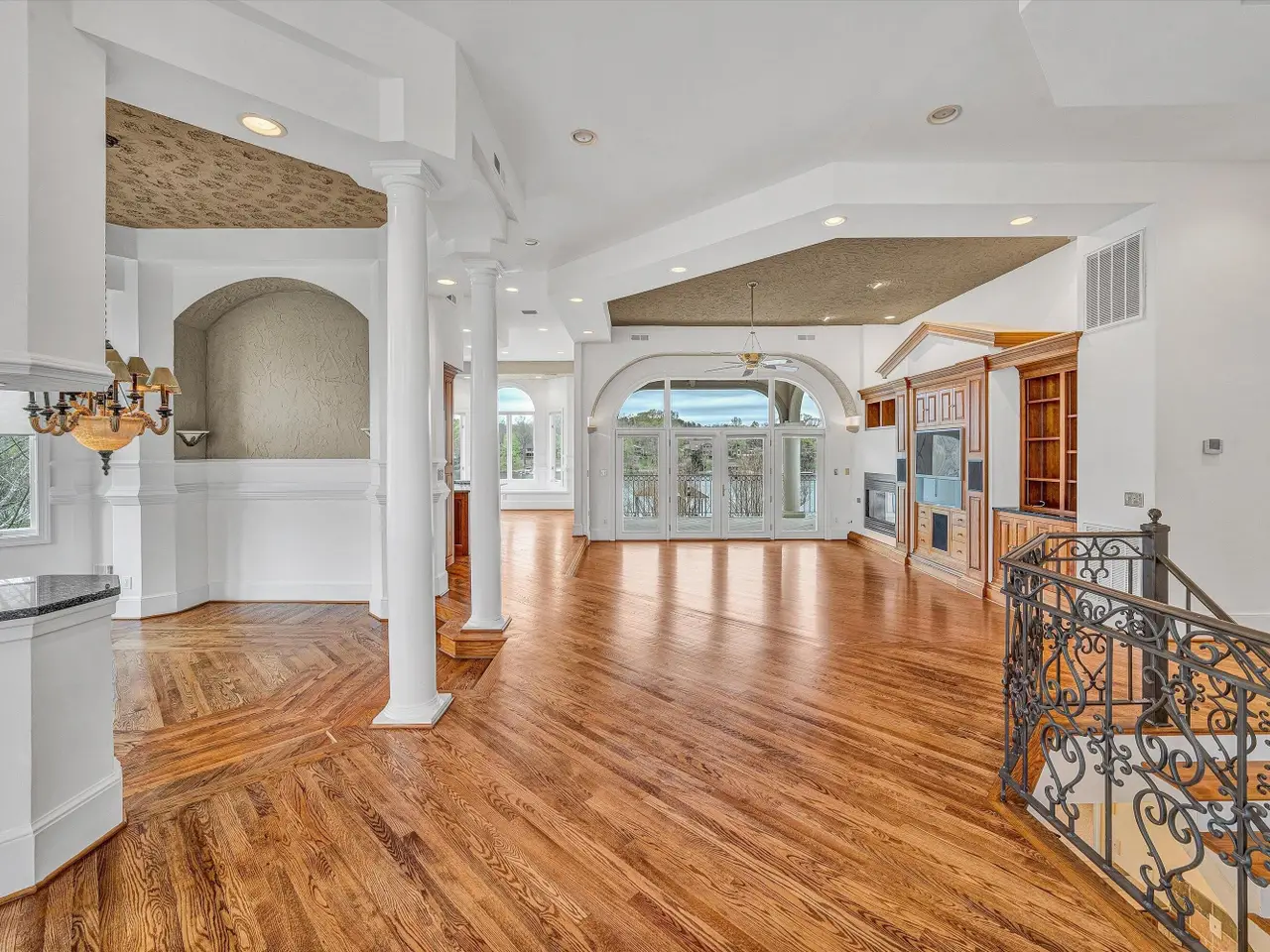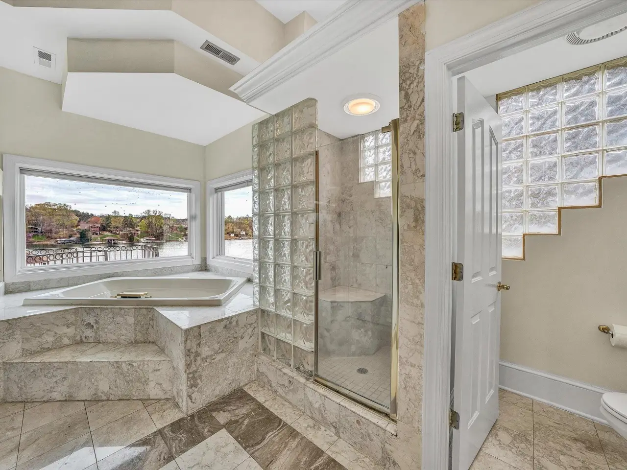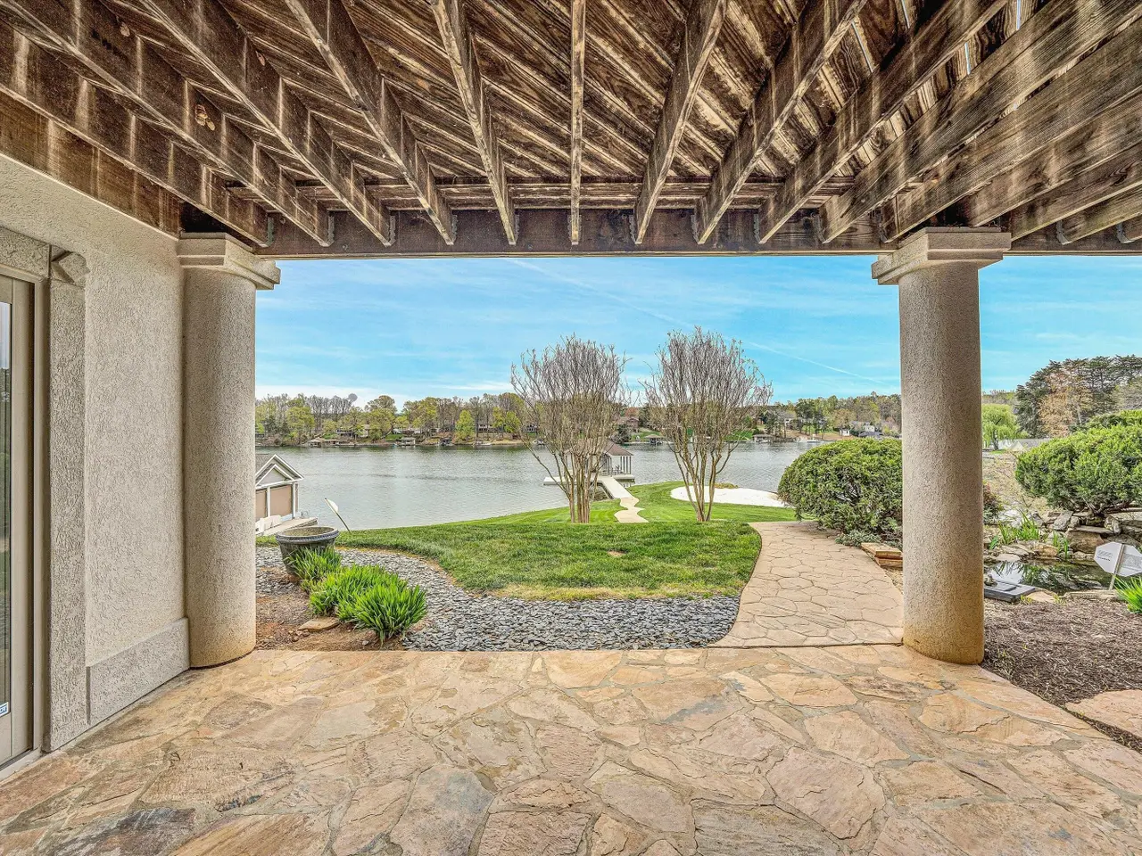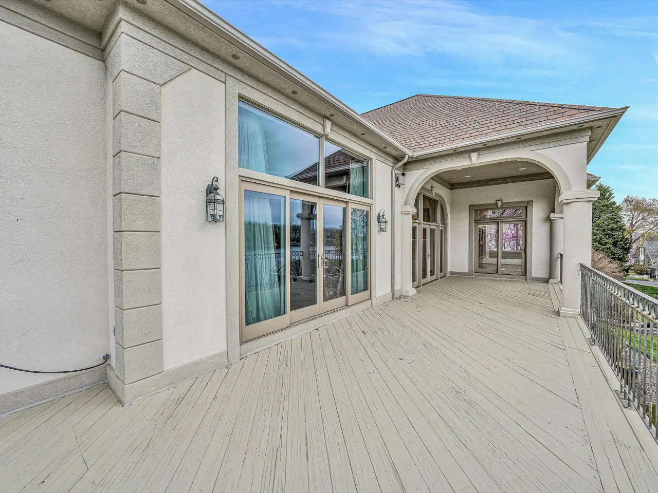Stunning Lakefront Contemporary located on a Beautiful Southern Point, Large Oversized Boat dock with boat slip and jet ski lift, bar and Sandy beach, Enter this home into a wide open Great room, lots of glass and towering tray ceilings, Social Area with Stone Fireplace, Large Open Kitchen with Cherry Cabinets and Granite Countertops, Gas Cooktop, Open Dining Room with Tray Ceilings, Entry Level Primary Suite with dual sided gas fireplace, Spacious ensuite bath with whirlpool tub and tiled shower. Sundeck and Covered Porch, spiraling staircase with iron railing to lower level Family room with Bar, wine cooler, refrigerator and dishwasher and microwave Theater Rm with Cherry Cabinet, Game Rm with Pool Table, Community pool ,Koi Pond, New irrigation pump 2025