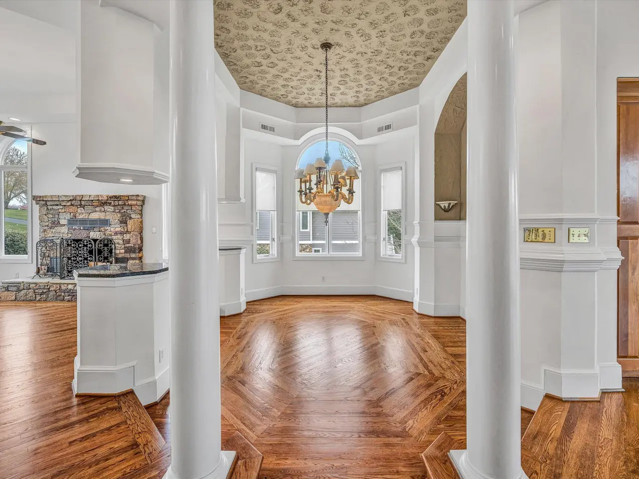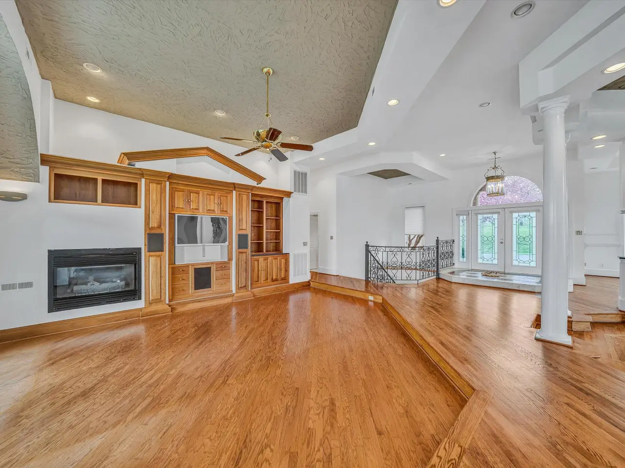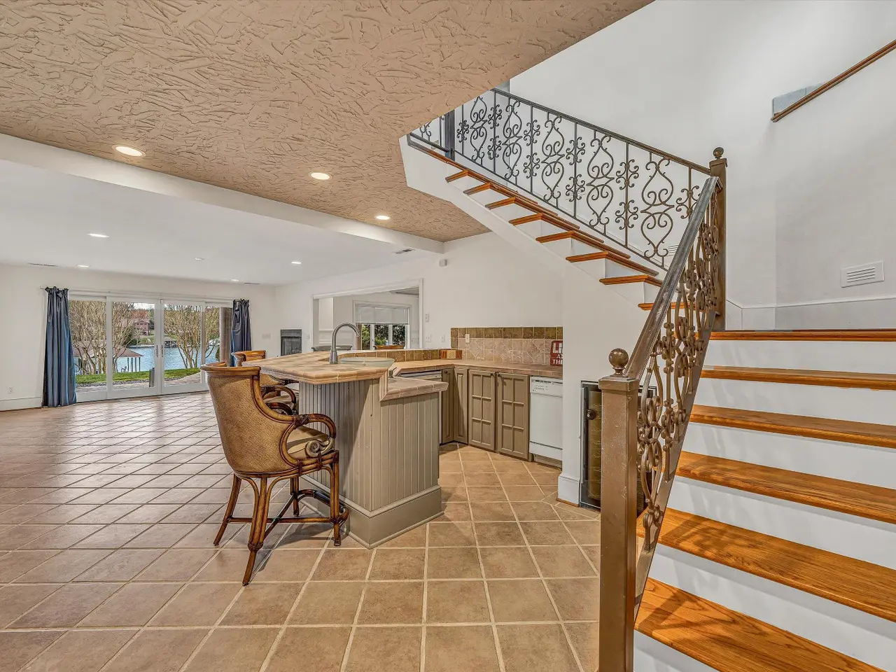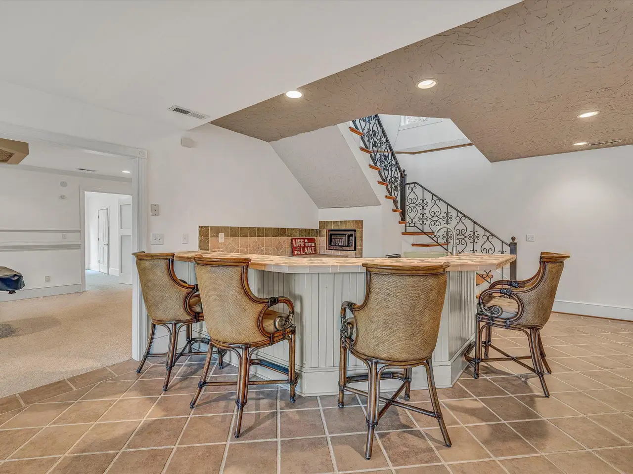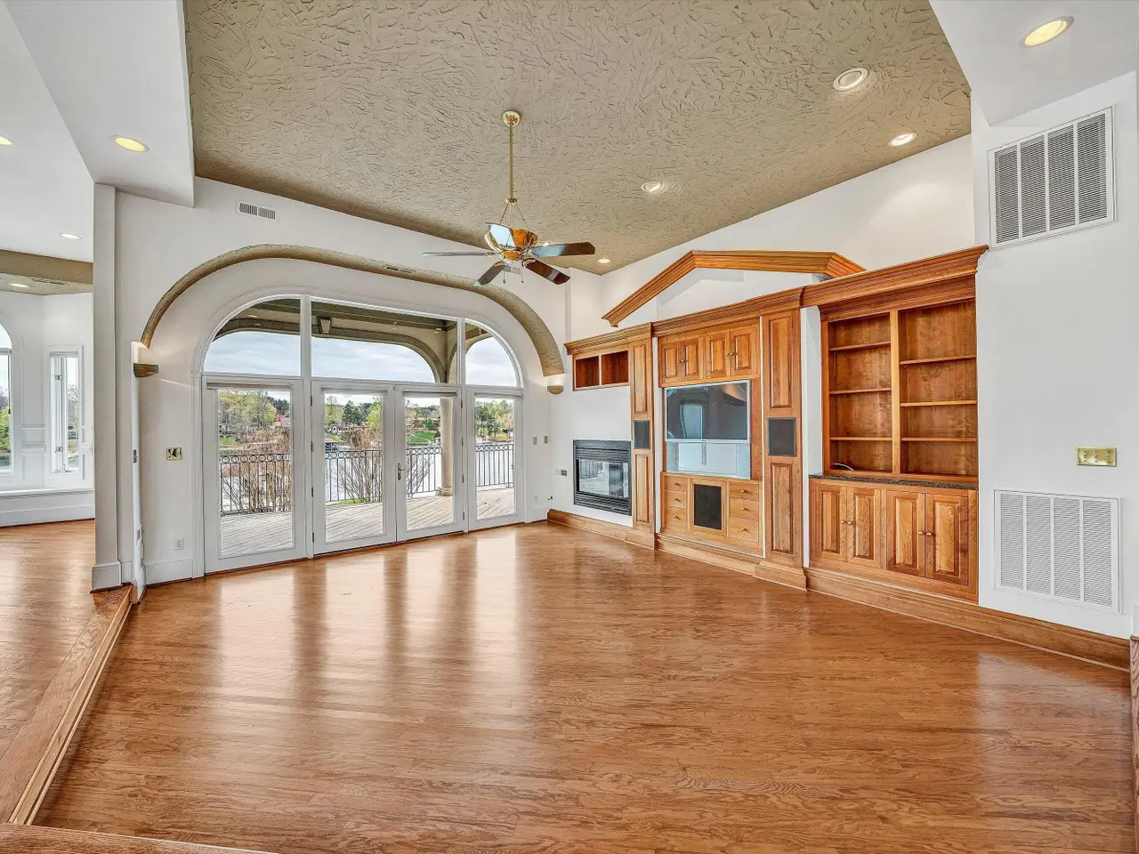 Stunning Lakefront Contemporary located on a Beautiful Southern Point, Large Oversized Boat dock with boat slip and jet ski lift, bar and Sandy beach, Enter this home into a wide open Great room, lots of glass and towering tray ceilings, Social Area with Stone Fireplace, Large Open Kitchen with Cherry Cabinets and Granite Countertops, Gas Cooktop, Open Dining Room with Tray Ceilings, Entry Level Primary Suite with dual sided gas fireplace, Spacious ensuite bath with whirlpool tub and tiled shower. Sundeck and Covered Porch, spiraling staircase with iron railing to lower level Family room with Bar, wine cooler, refrigerator and dishwasher and microwave Theater Rm with Cherry Cabinet, Game Rm with Pool Table, Community pool ,Koi Pond, New irrigation pump 2025