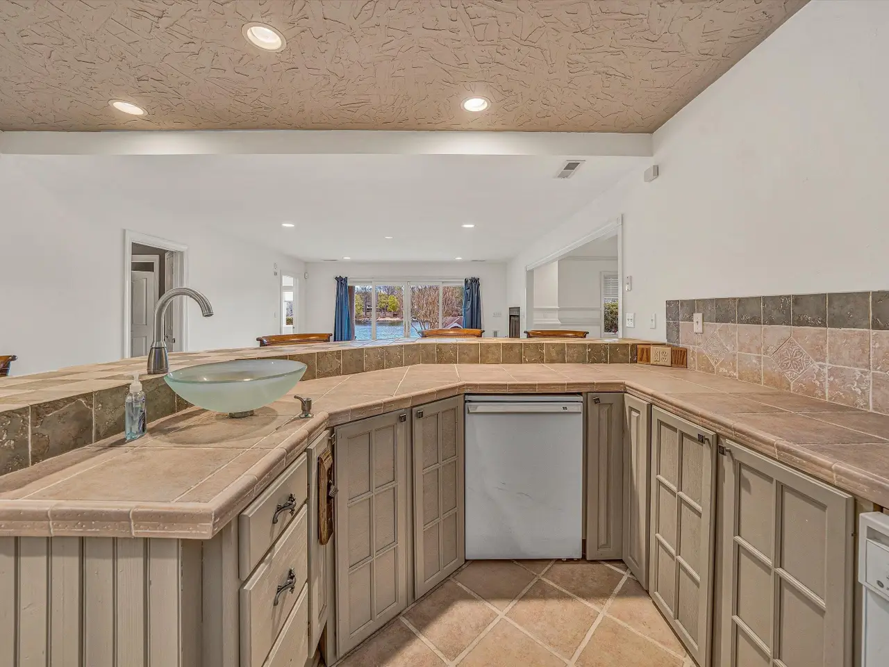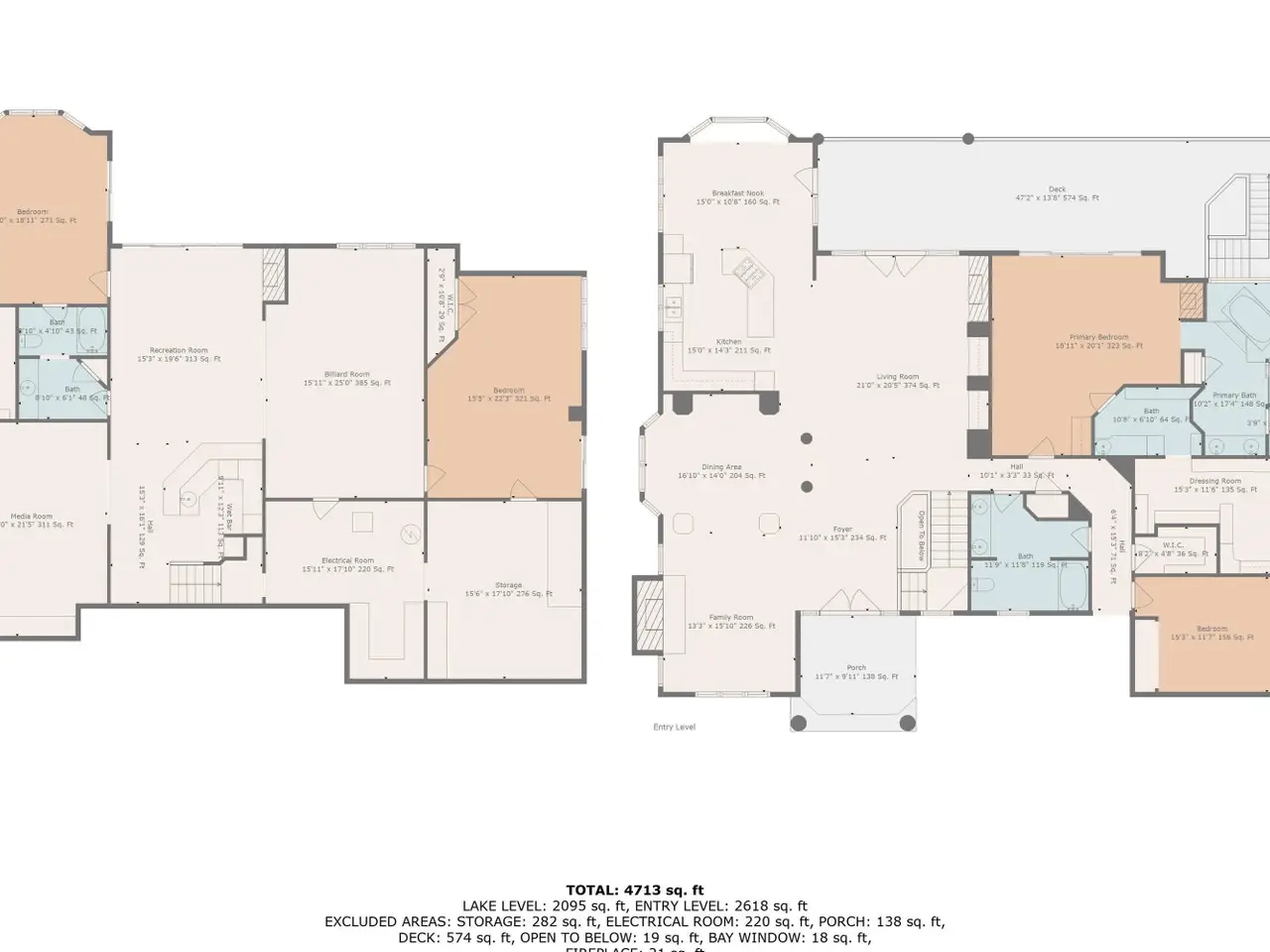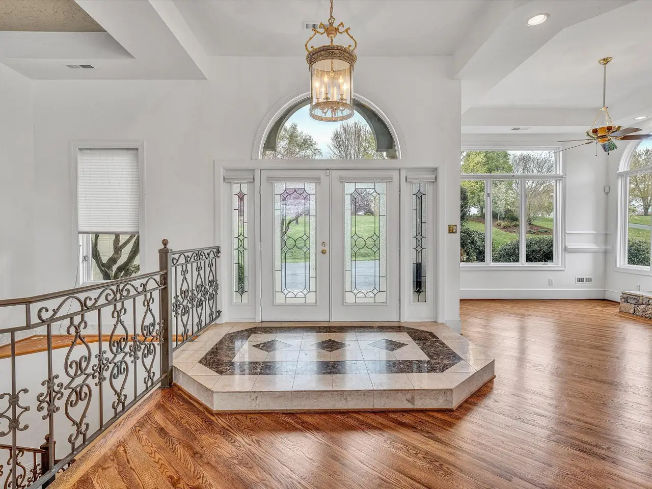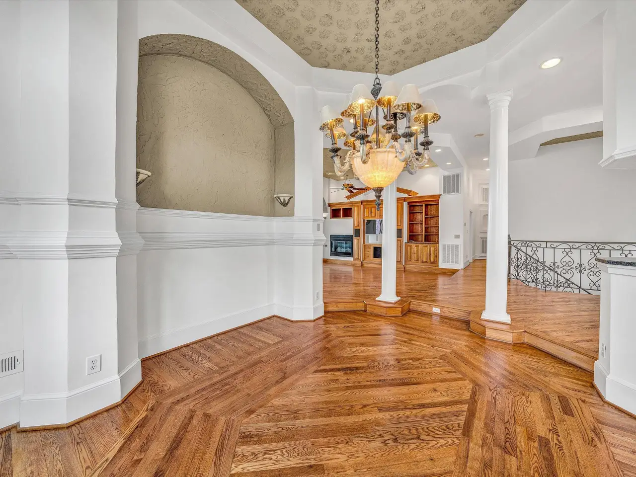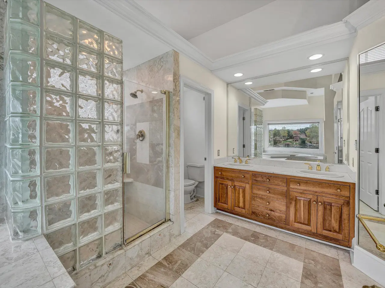 Stunning Lakefront Contemporary located on a Beautiful Southern Point, Large Oversized Boat dock with boat slip and jet ski lift, bar and Sandy beach, Enter this home into a wide open Great room, lots of glass and towering tray ceilings, Social Area with Stone Fireplace, Large Open Kitchen with Cherry Cabinets and Granite Countertops, Gas Cooktop, Open Dining Room with Tray Ceilings, Entry Level Primary Suite with dual sided gas fireplace, Spacious ensuite bath with whirlpool tub and tiled shower. Sundeck and Covered Porch, spiraling staircase with iron railing to lower level Family room with Bar, wine cooler, refrigerator and dishwasher and microwave Theater Rm with Cherry Cabinet, Game Rm with Pool Table, Community pool ,Koi Pond, New irrigation pump 2025