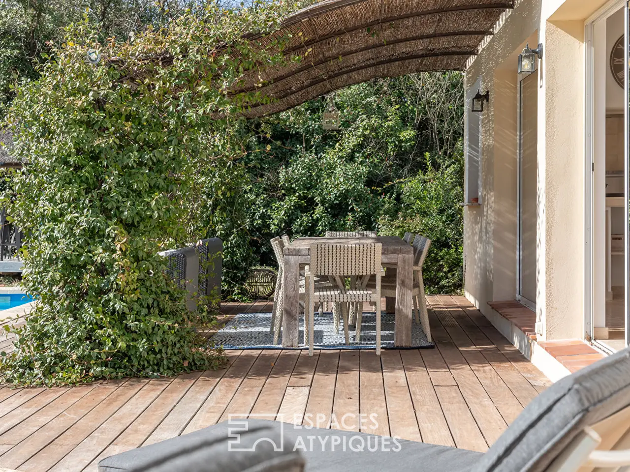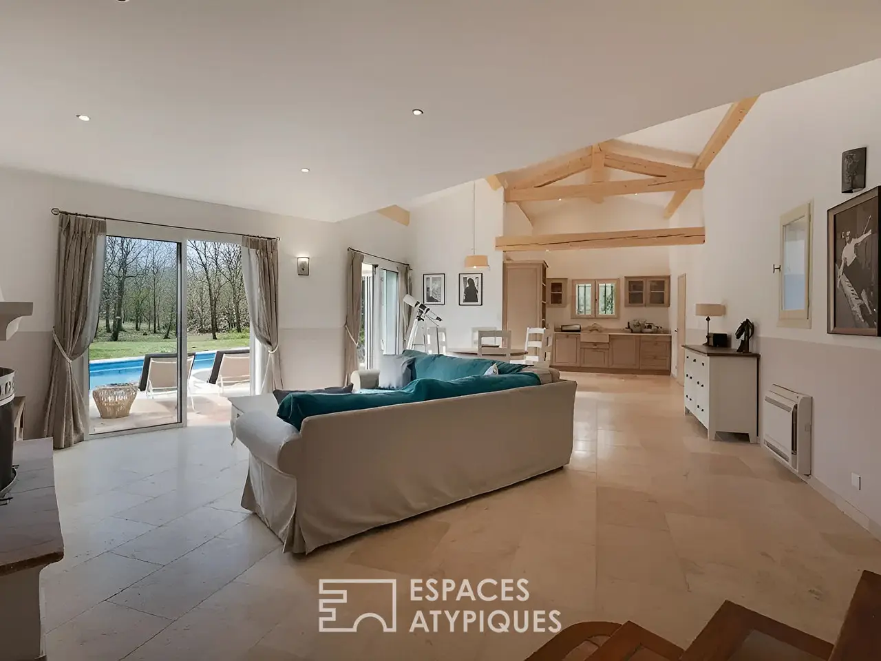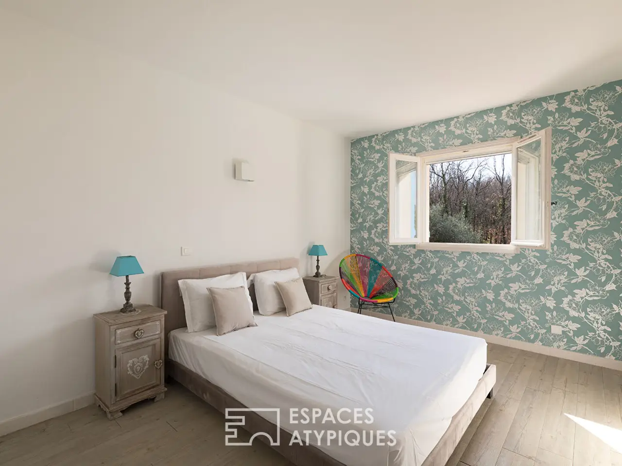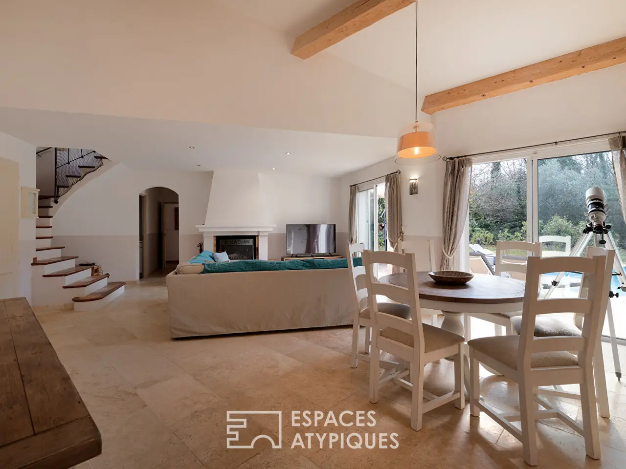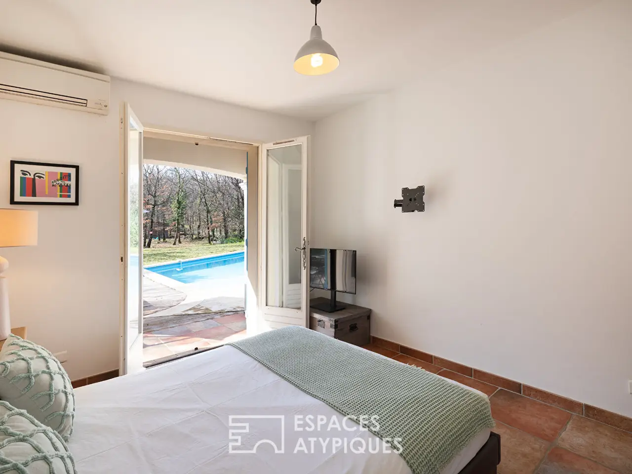 Charming property in the heart of a forest estate Ideally located between Mons and Callian, in the heart of a vast forest estate, this elegant Provencal property offers approximately 200 sqm of living space on a wooded plot of over 5,000 sqm. The traditional architecture combined with high-quality services creates a warm and friendly atmosphere, in perfect harmony with its natural environment. From the entrance, the omnipresent light and the ceiling height of over 4 meters highlight the living spaces. The vast living room, decorated with a fireplace, opens onto the dining room in a fluid and harmonious sequence. Large bay windows extend the space to the outside, offering a clear view of the oak forest. The fitted and equipped kitchen, with a central island, has recently been renovated. Its direct access to a terrace shaded by a pergola covered with jasmine invites you to enjoy meals outdoors, by the pool. The sleeping area consists of two spacious bedrooms on one level, including a master suite with bathroom and shower. Upstairs, two additional bedrooms have a shower room and a dressing room. An independent apartment, approximately 44sqm offering a bedroom, a shower room and a living room currently housing a billiard table, completes the ensemble, offering an ideal alternative for receiving family and friends in complete privacy. The exterior, a veritable green setting, reveals a free-form masonry swimming pool, perfectly integrated into the landscape. The garden, alternating wooded areas and sunny terraces, creates a soothing setting where nature blends harmoniously with the architecture. A stone garage, a carpot and several parking spaces complete the services of this property. A perfect combination of Provencal charm and contemporary services, this unique property seduces with its preserved setting and its authentic atmosphere, offering a real invitation to the gentle Provencal way of life. ENERGY CLASS: C (148 kWh/m2/year) / CLIMATE CLASS: A (4 kg CO2/m2/year) Estimated average amount of annual energy expenditure for standard use, established from 2021 energy prices between 1770 euros and 2460 euros. REF. 9246 Additional information * 7 rooms * 5 bedrooms * 1 bathroom * 2 shower rooms * 2 floors in the building * Outdoor space : 5234 SQM * Parking : 4 parking spaces Energy Performance Certificate Primary energy consumption c : 148 kWh/m2.an High performance housing