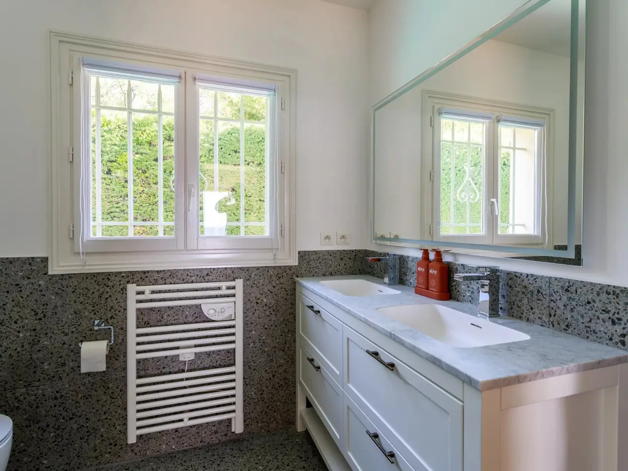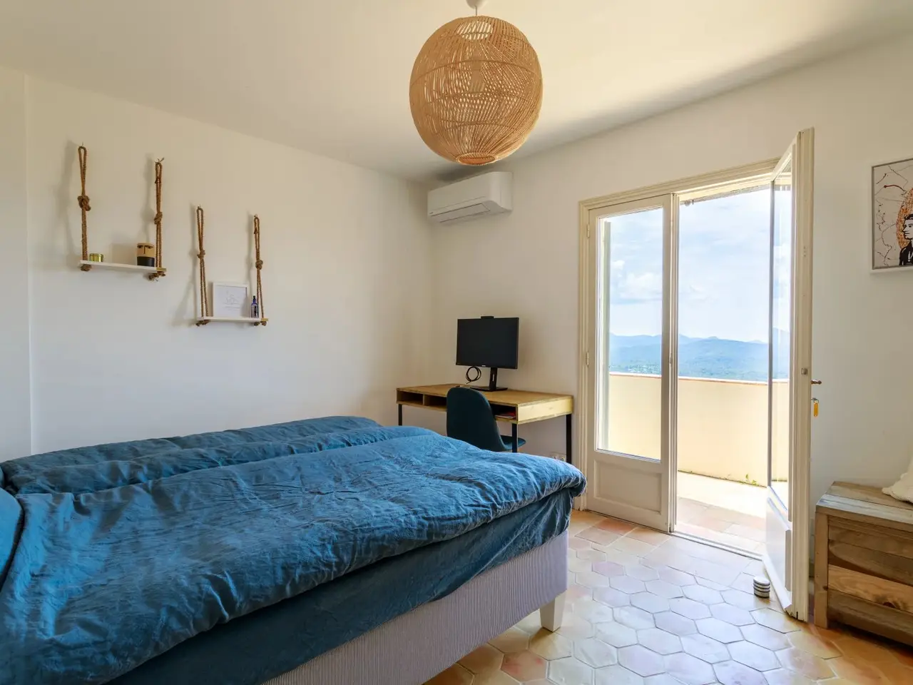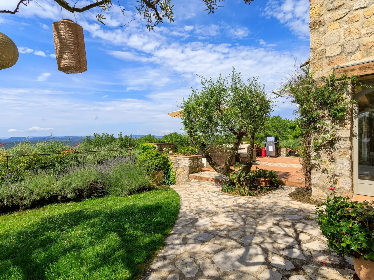 Just minutes from the village, this peaceful villa sits on a spacious 14,000 m² plot, offering an authentic Provencal experience. The recently renovated 235 m² main house features high-end finishes and includes 4 bedrooms, most with stunning valley views. A 75 m² guest house with 2 additional bedrooms provides extra space for family and friends, perfect for relaxing and entertaining.The beautifully landscaped garden is adorned with olive trees, jasmine, and rhododendrons and includes a pétanque court. The child-safe pool is heated by solar panels, extending the swimming season. A large south-facing terrace offers panoramic views, a dining area, and a barbecue, ideal for outdoor meals.The villa is equipped with high-speed internet, office space, a TV room, and air conditioning in all bedrooms for year-round comfort.